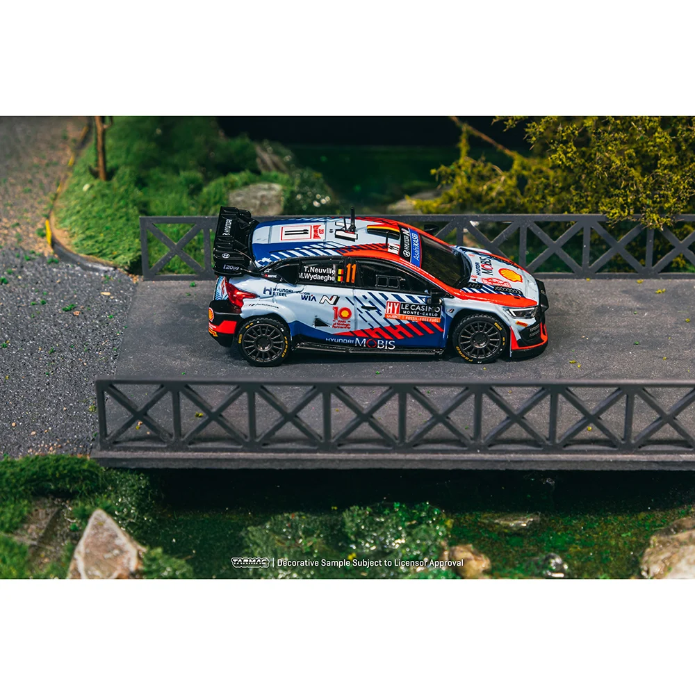Kolekcjonerski model metalowy z elementami plastikowymi samochodu rajdowego HYUNDAI i20 N Rally1 Hybrid #11,w którym załoga Neuville/Wydaeghe zwyciężyła w Rajdzie Monte Carlo w roku 2024.Model na podstawce posiada akrylową gablotkę ekspozycyjną.