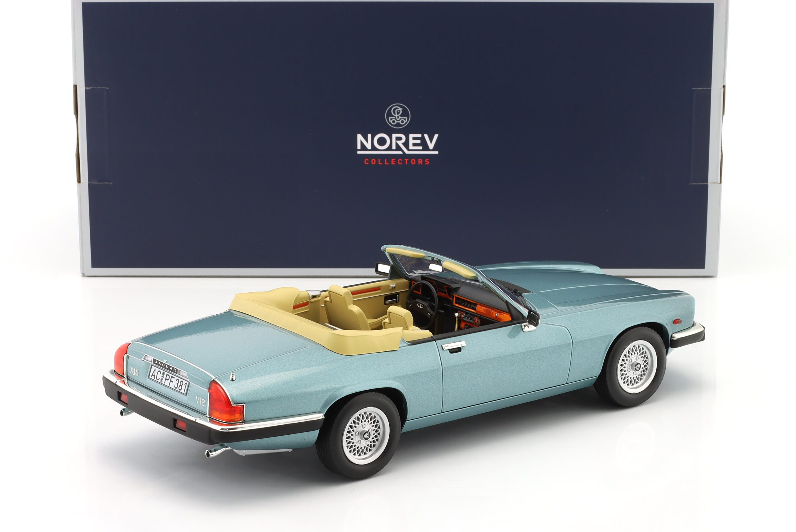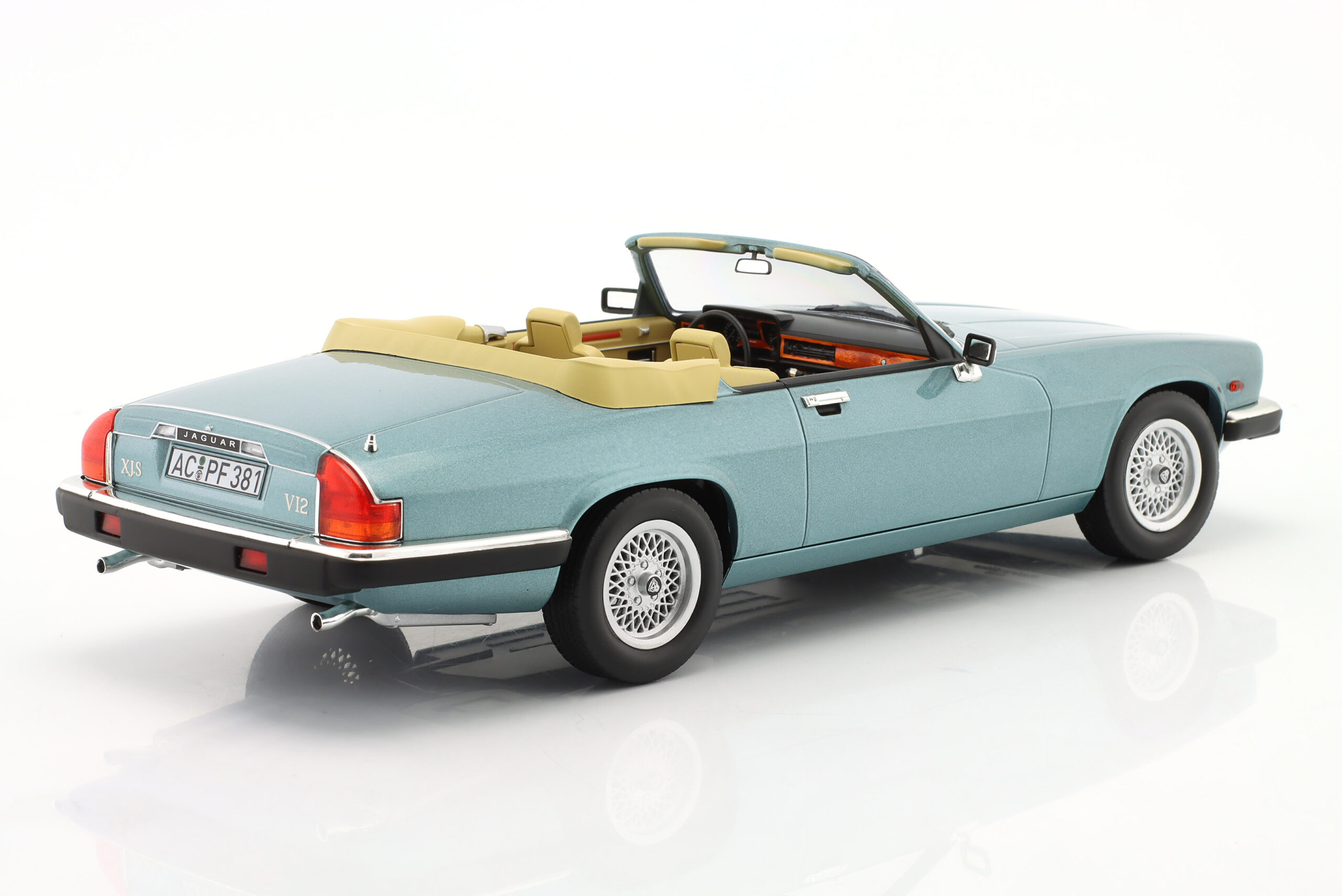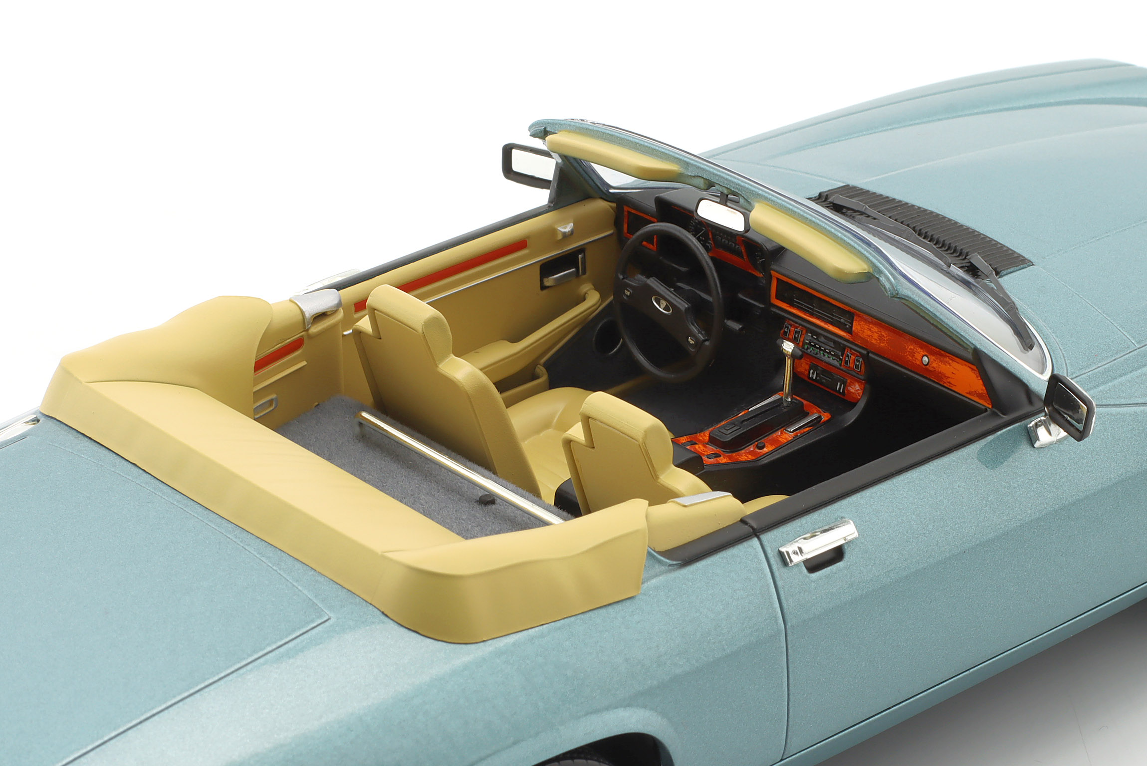 Kolekcjonerski model metalowy z elementami plastikowymi samochodu JAGUAR XJ-S Cabriolet z roku 1988 w kolorze Jasnoniebieski metallic.Model nie posiada otwieranych elementów.