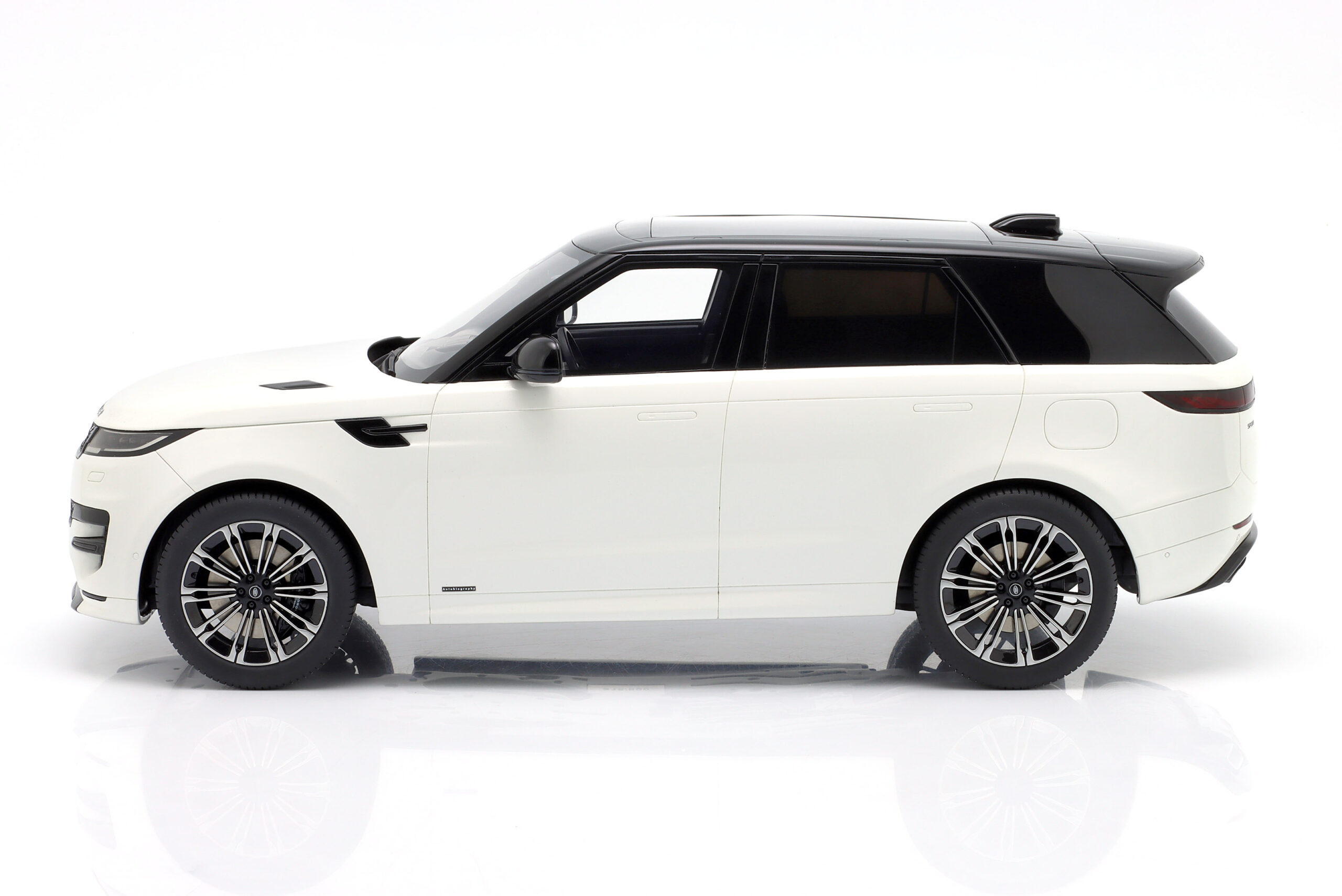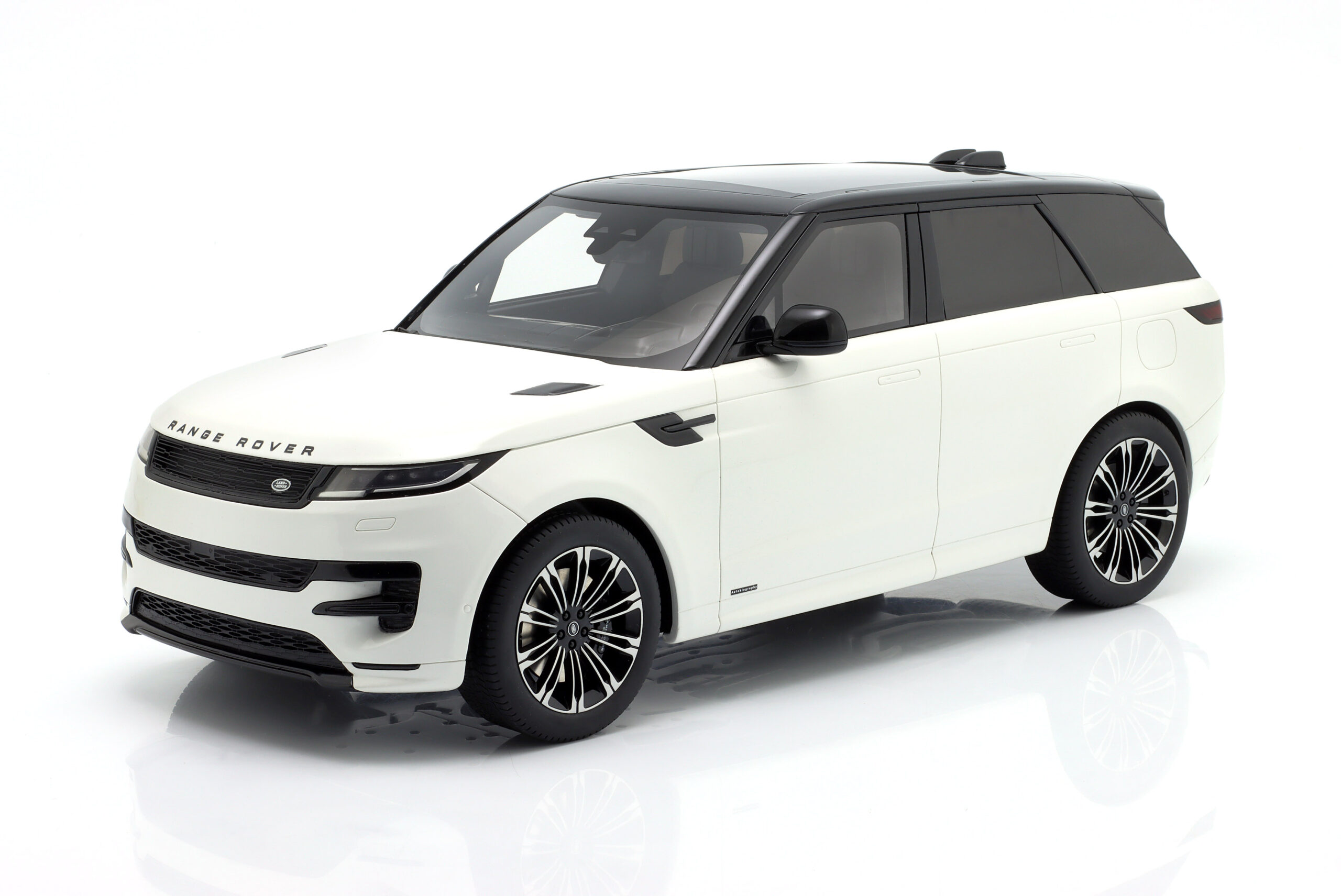 Kolekcjonerski wykonany z żywicy samochodu LAND ROVER SPORT P510E z roku 2023 w kolorze Fuji white .Model nie posiada otwieranych elementów.Zapakowany w styropianowe pudełko z kartonową obwolutą.Edycja limitowana tylko 500 sztuk.
