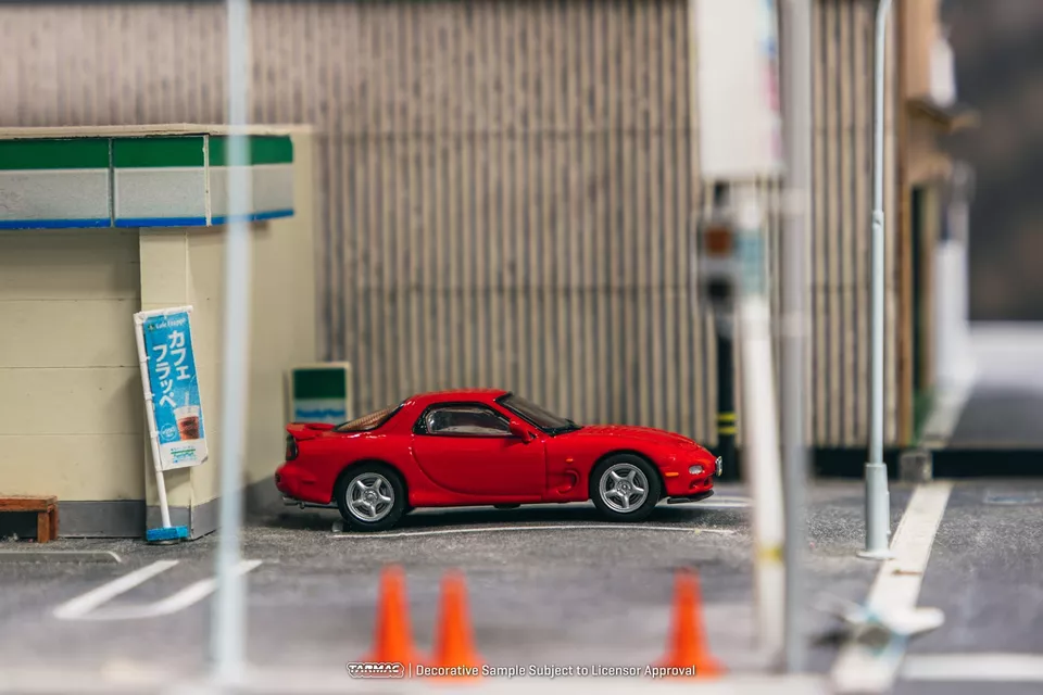 Kolekcjonerski model metalowy z elementami plastikowymi samochodu MAZDA RX-7 FD3S w kolorze Czerwonym.