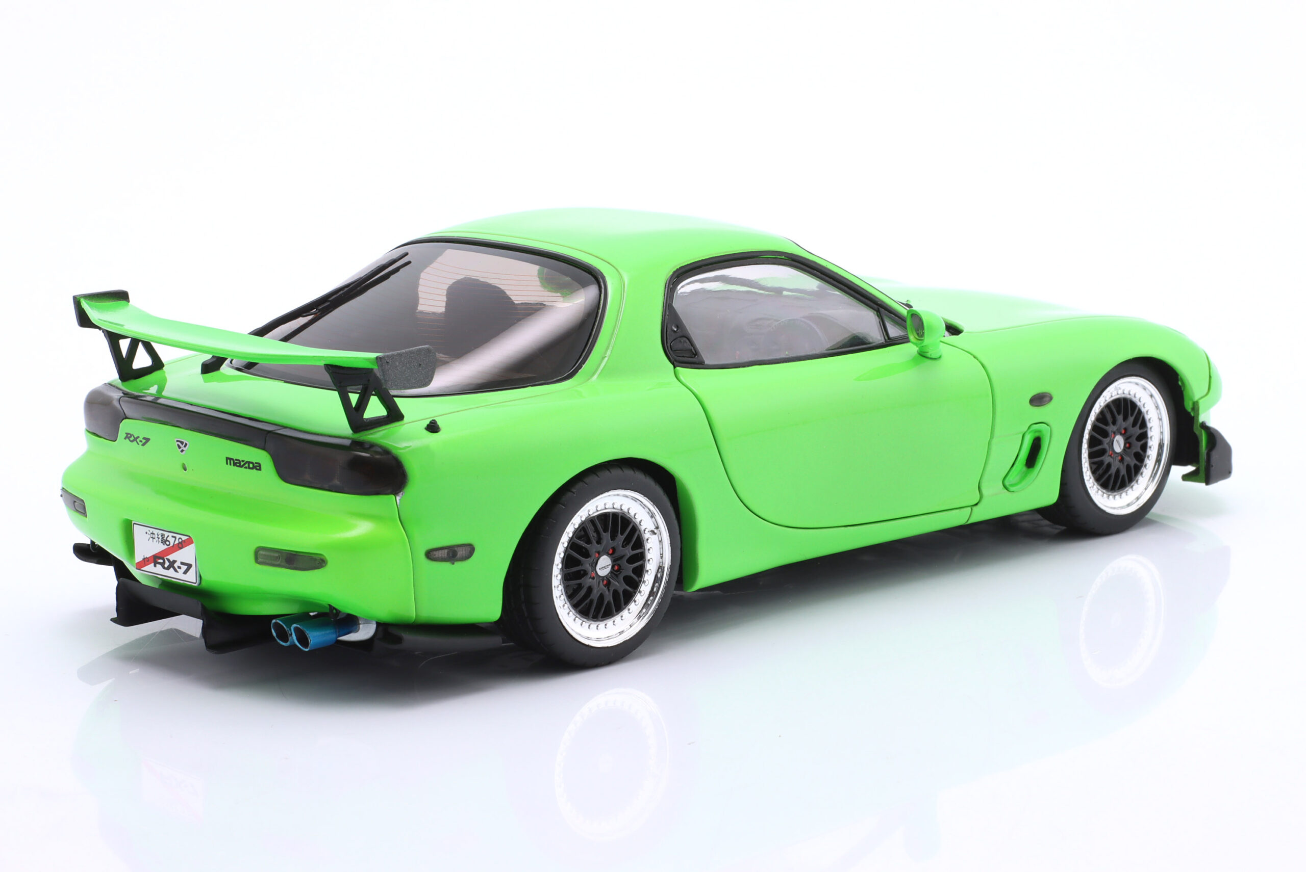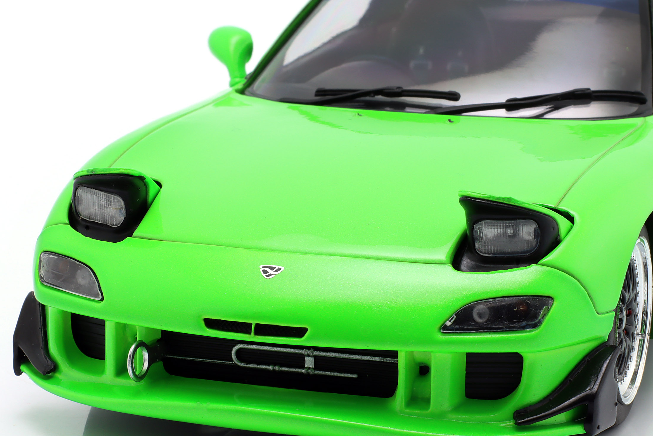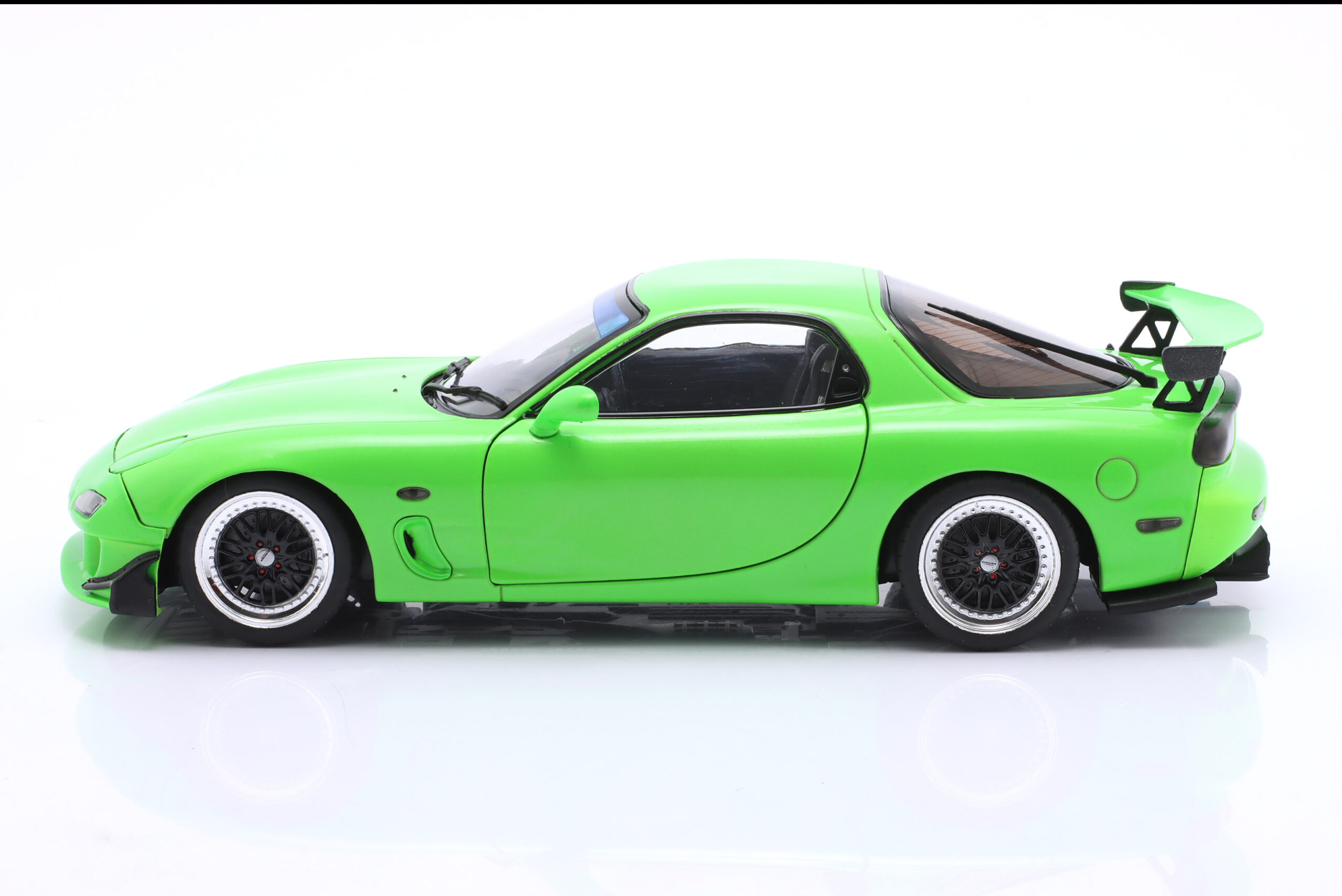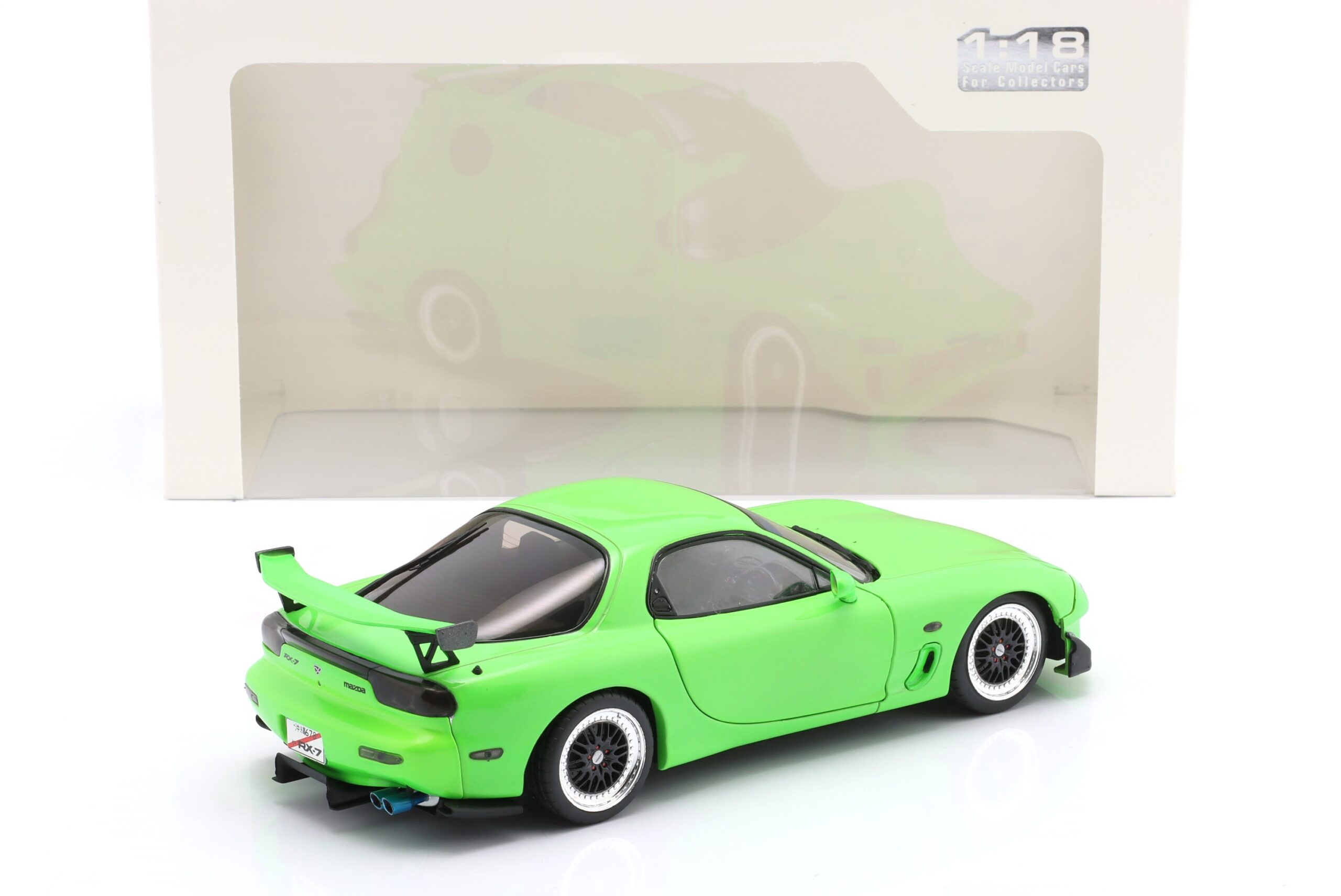 Kolekcjonerski model metalowy z elementami plastikowymi samochodu MAZDA RX-7 Type RS (FD35) z roku 1999 w kolorze Neon green.Model posiada otwierane drzwi.