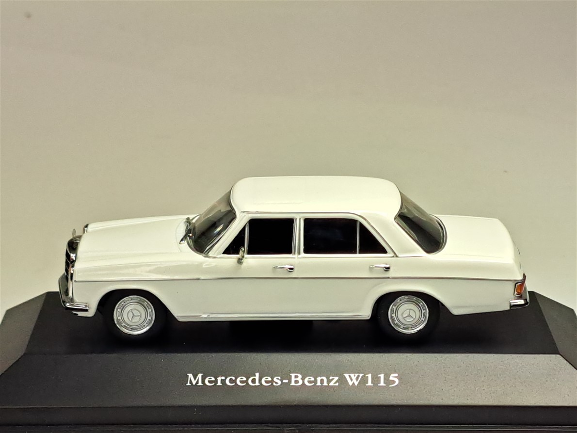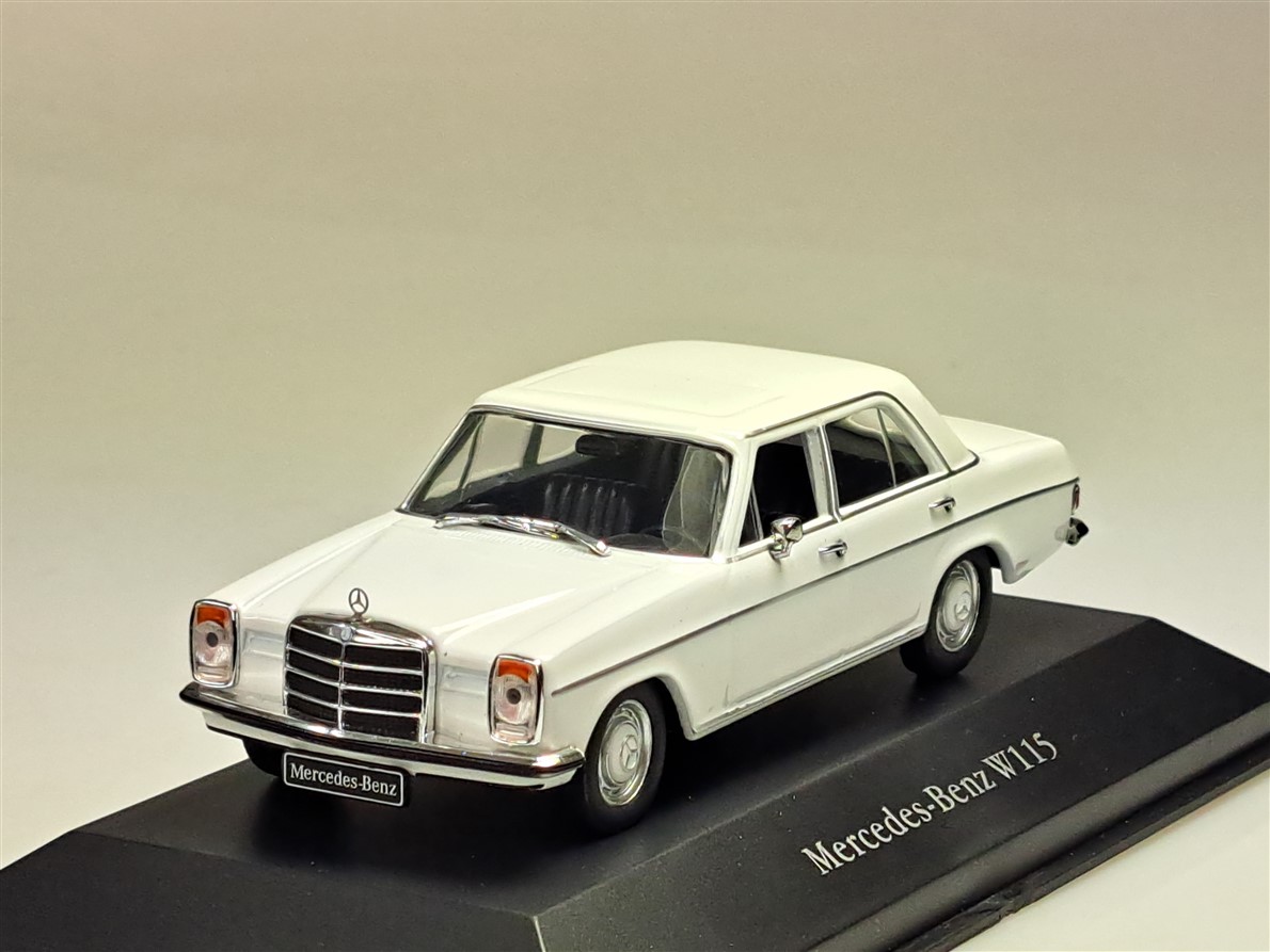IvoryKolekcjonerski model metalowy z elementami plastikowymi samochodu MERCEDES-BENZ 200/8 (W115) produkowanego w latach 1967-1976 w kolorze Białym.Model na podstawce,posiada akrylową gablotkę ekspozycyjną.
