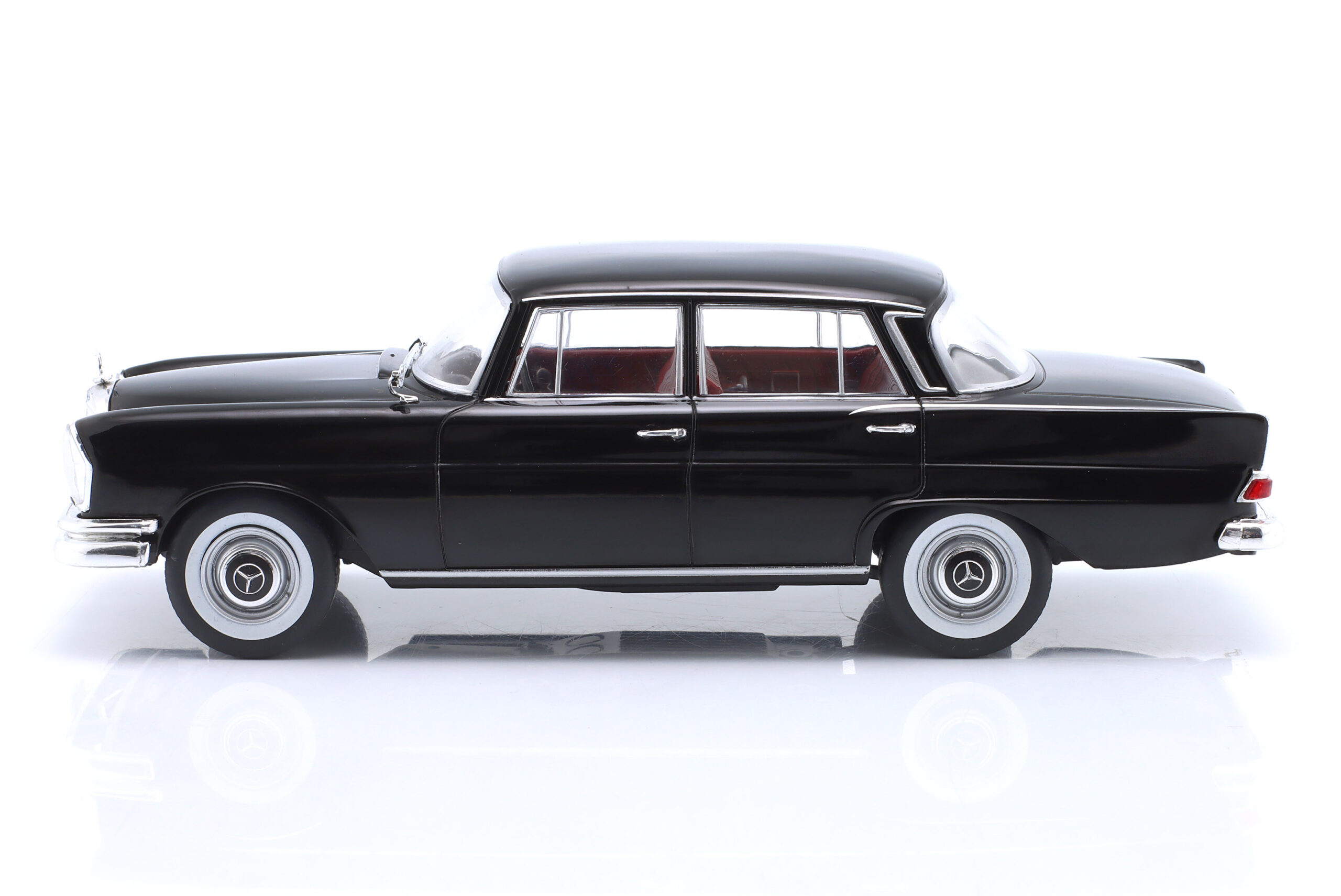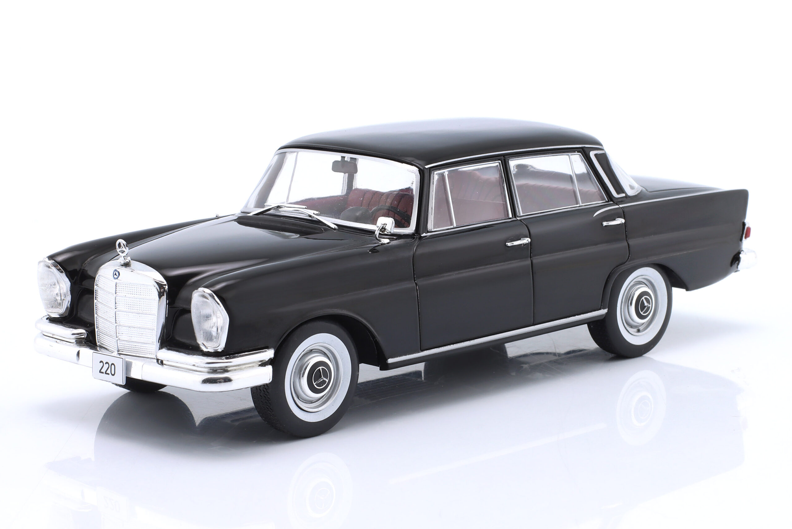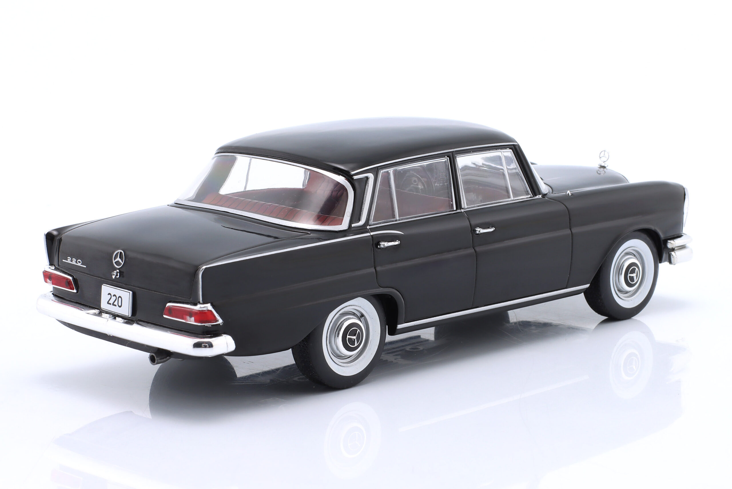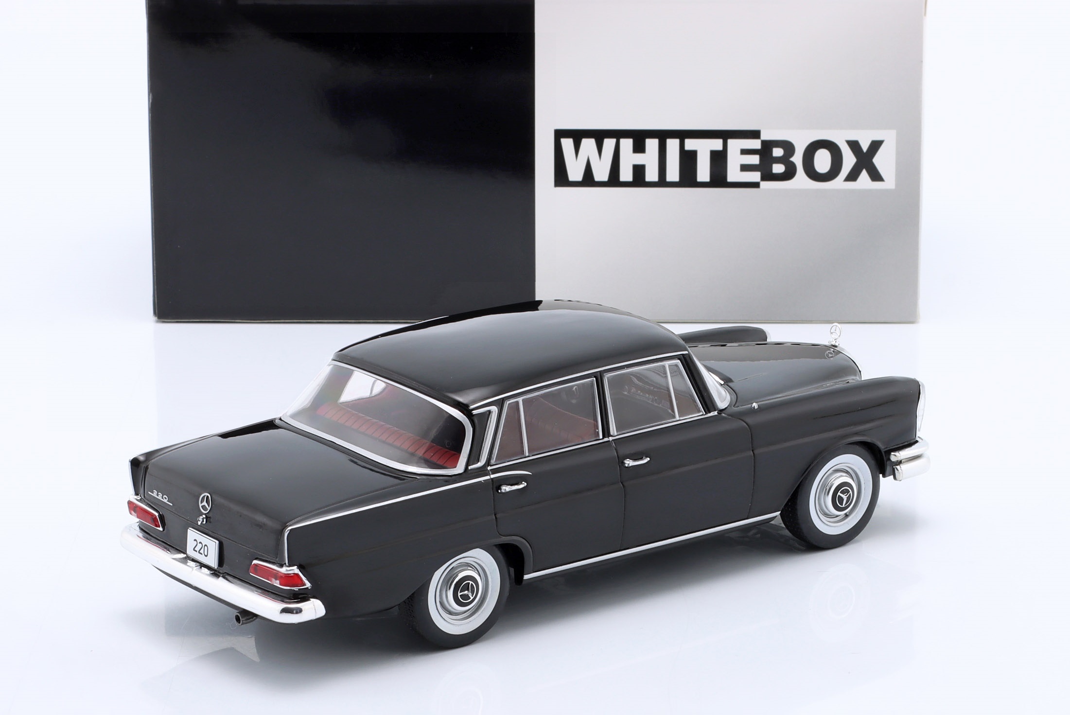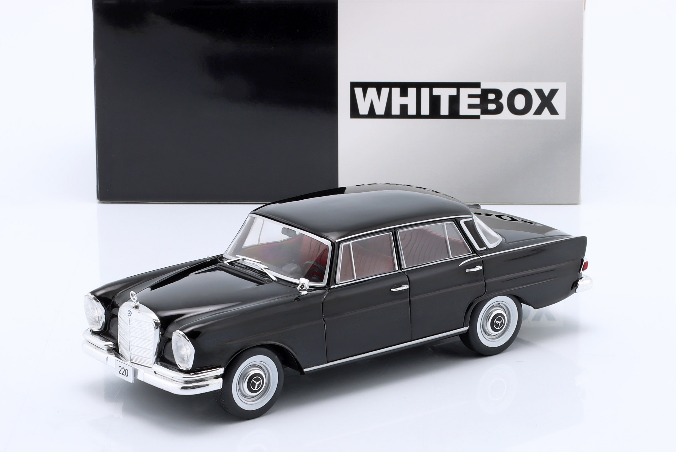 Kolekcjonerski model metalowy z elementami plastikowymi samochodu MERCEDES-BENZ 220 (W111) z roku 1959 w kolorze Czarnym.Model nie posiada otwieranych elementów.Model na plastikowej podstawce,zapakowany w kartonowe pudełko z witrynką.