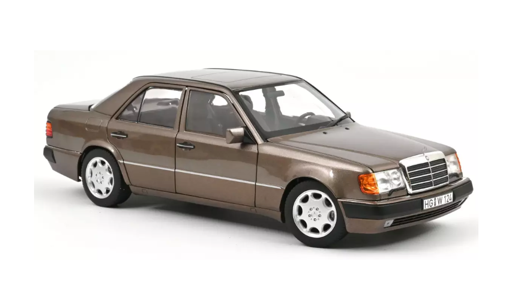 Kolekcjonerski model metalowy z elementami plastikowymi samochodu MERCEDES-BENZ 230 E (W124) z roku 1990 w kolorze Impala metallic.Model posiada otwierane drzwi,pokrywę silnika i bagażnika.