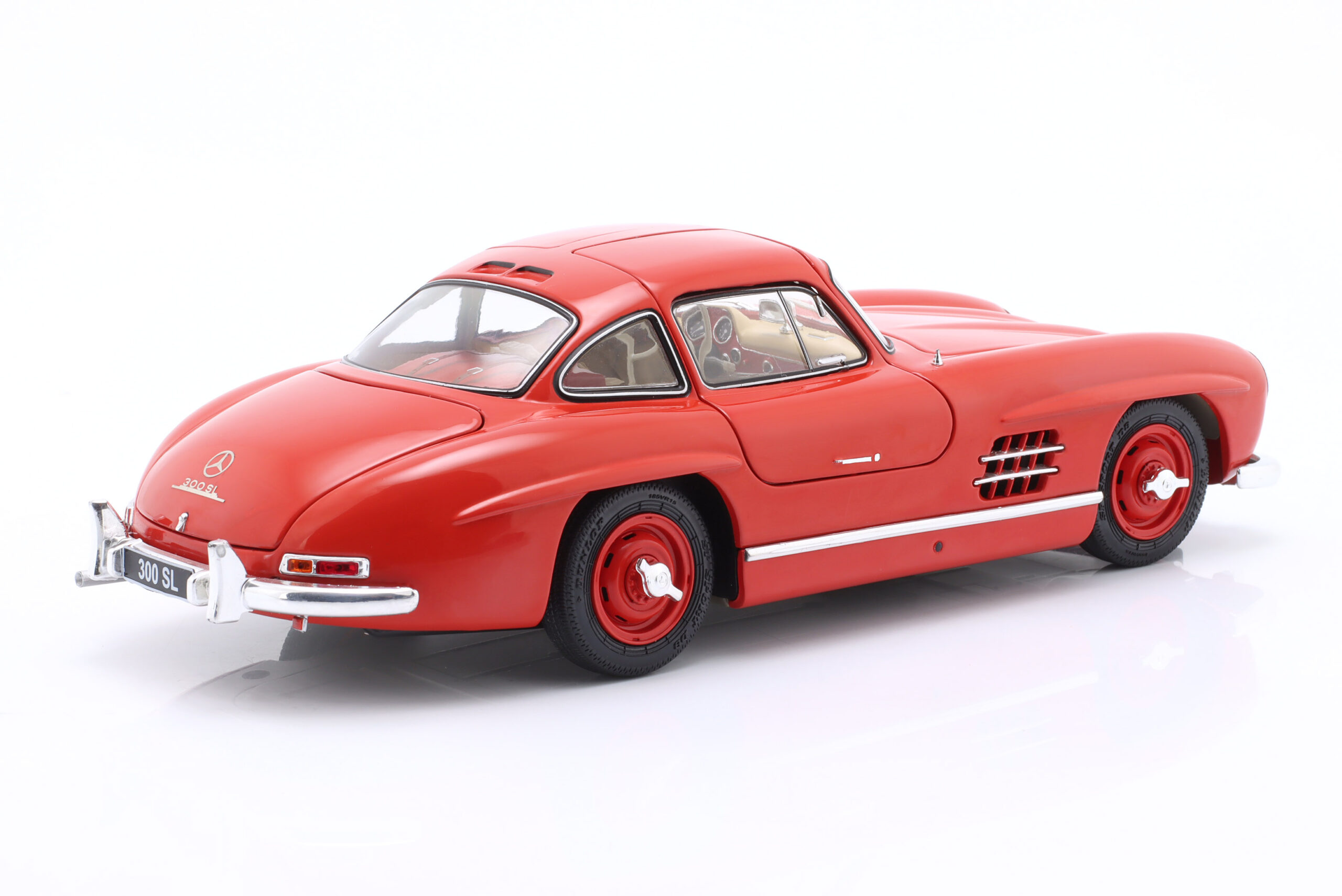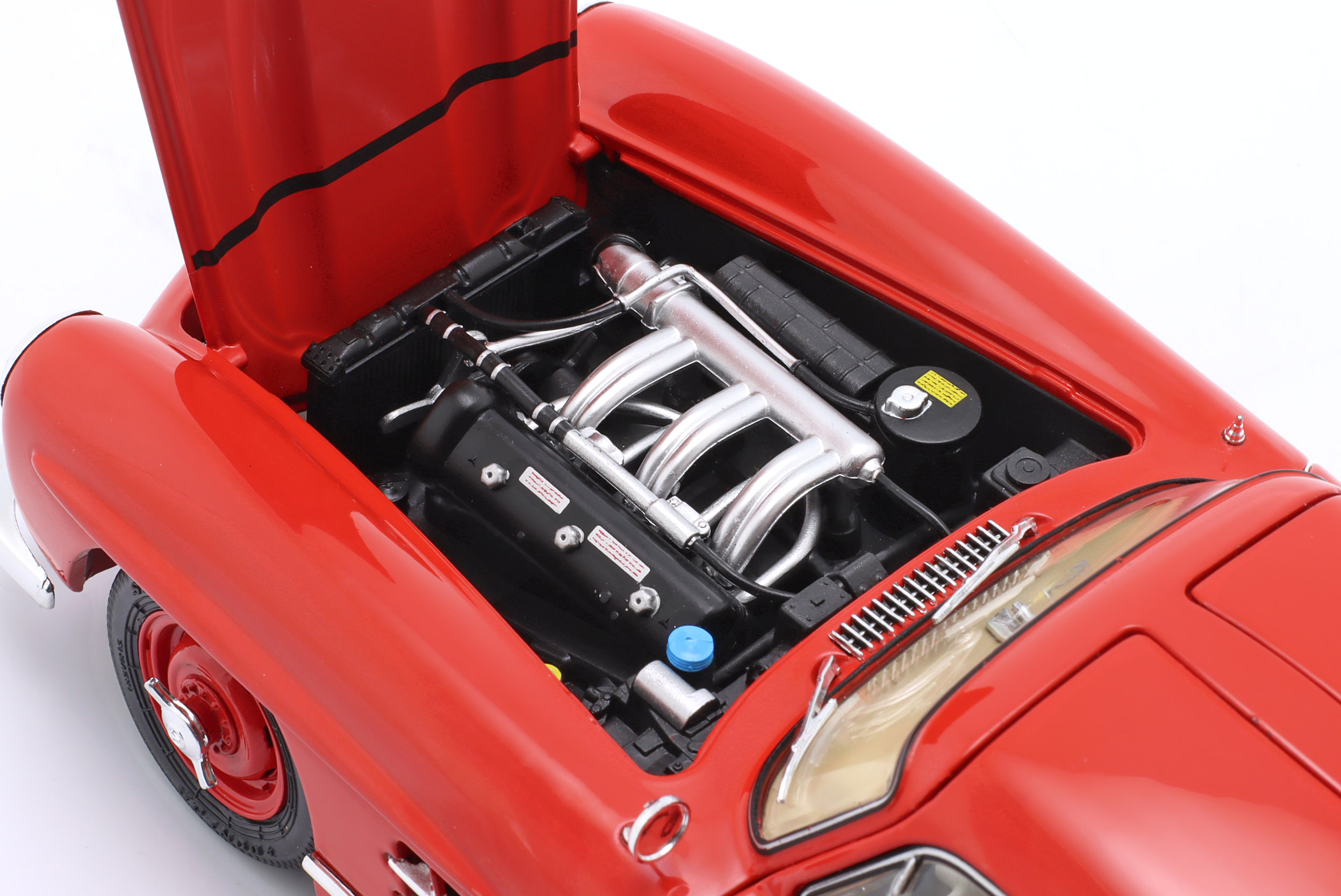 Kolekcjonerski model metalowy z elementami plastikowymi autobusu MERCEDES-BENZ 300 SL Coupe (W198) z roku 1954 w kolorze Czerwonym.