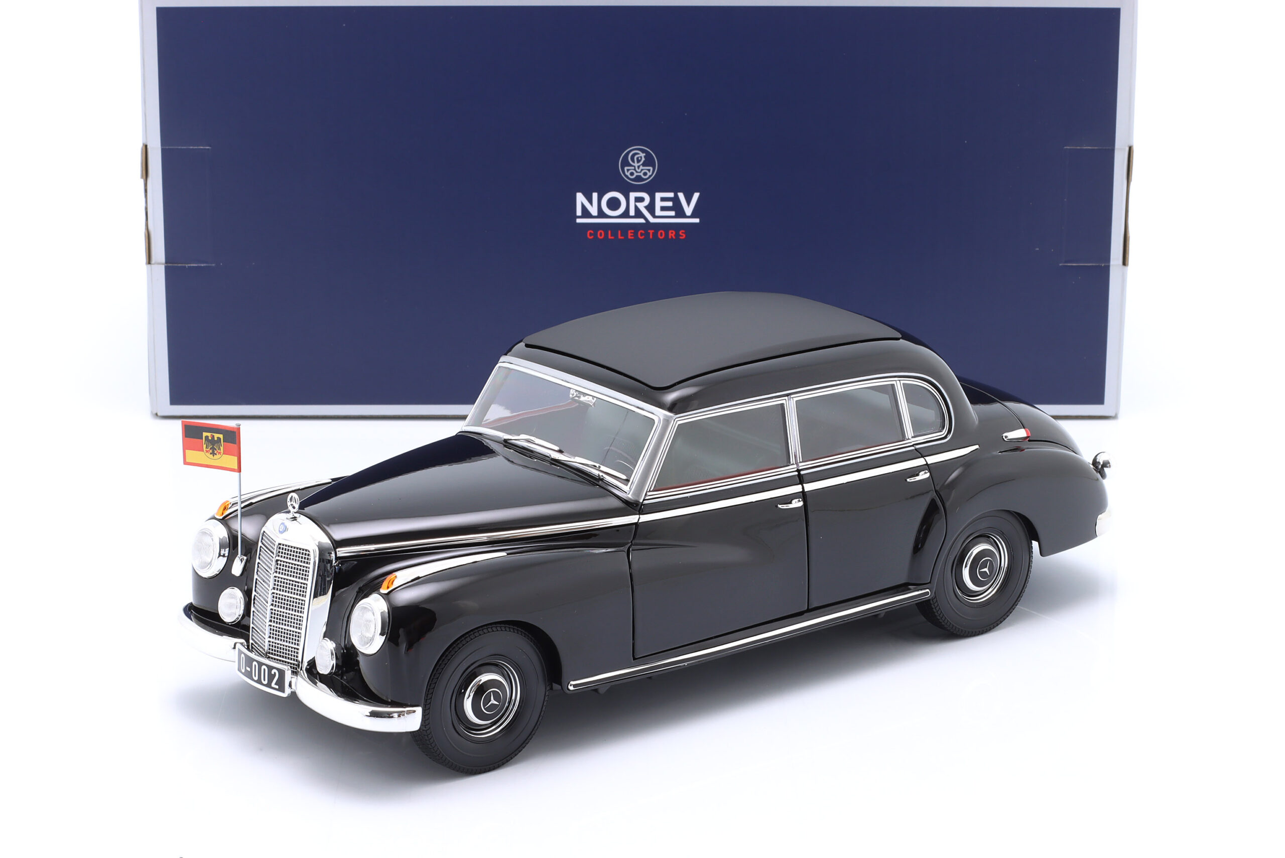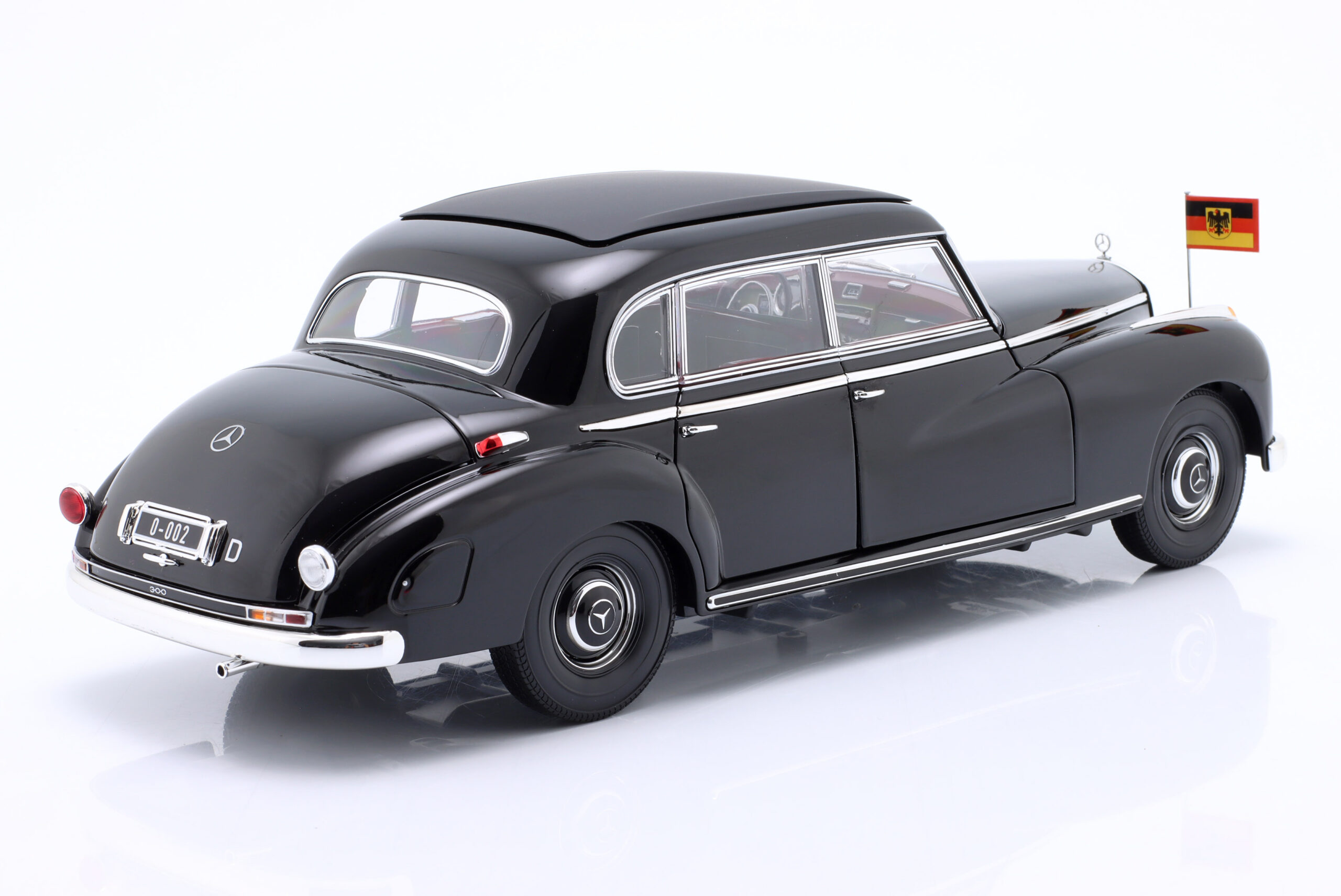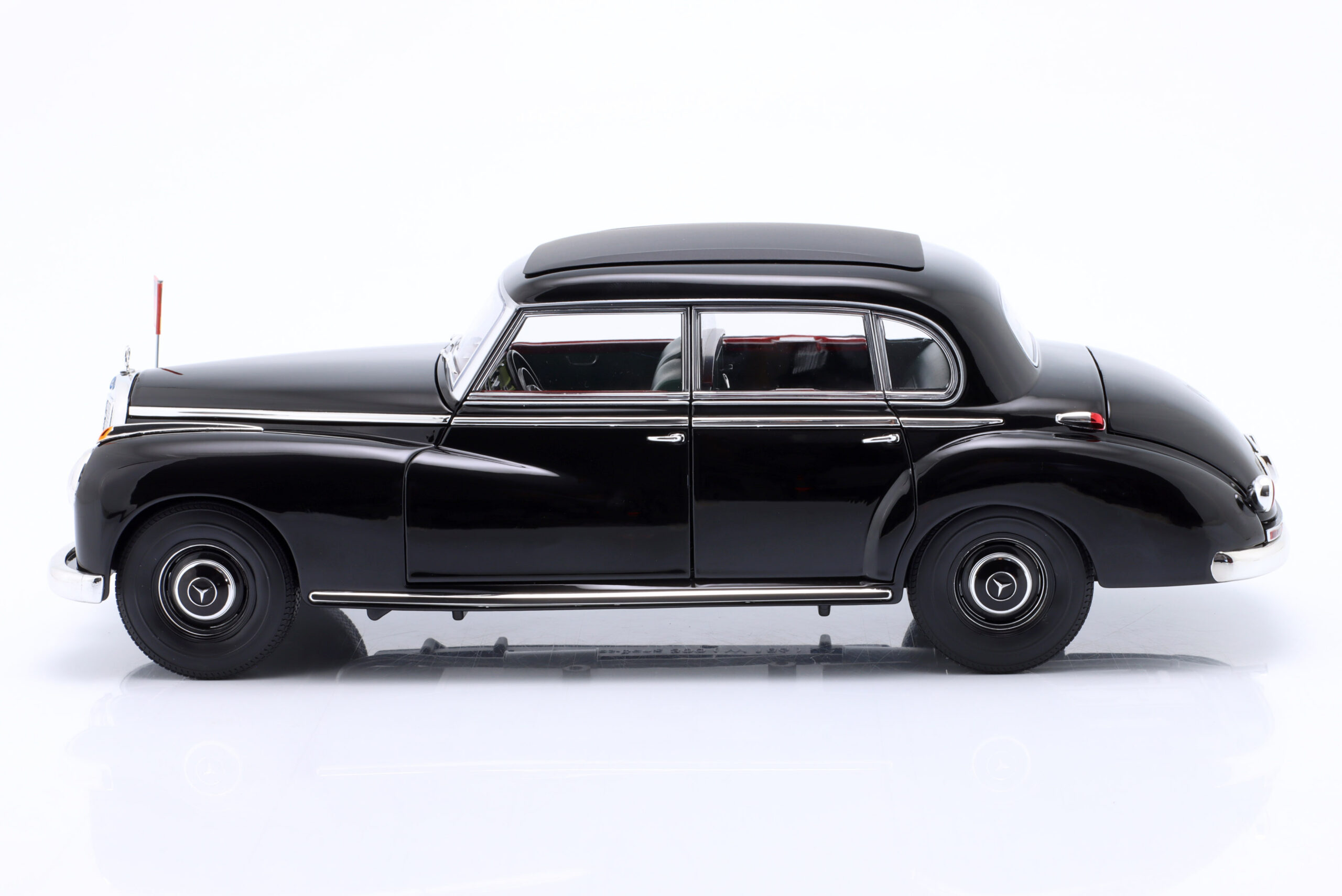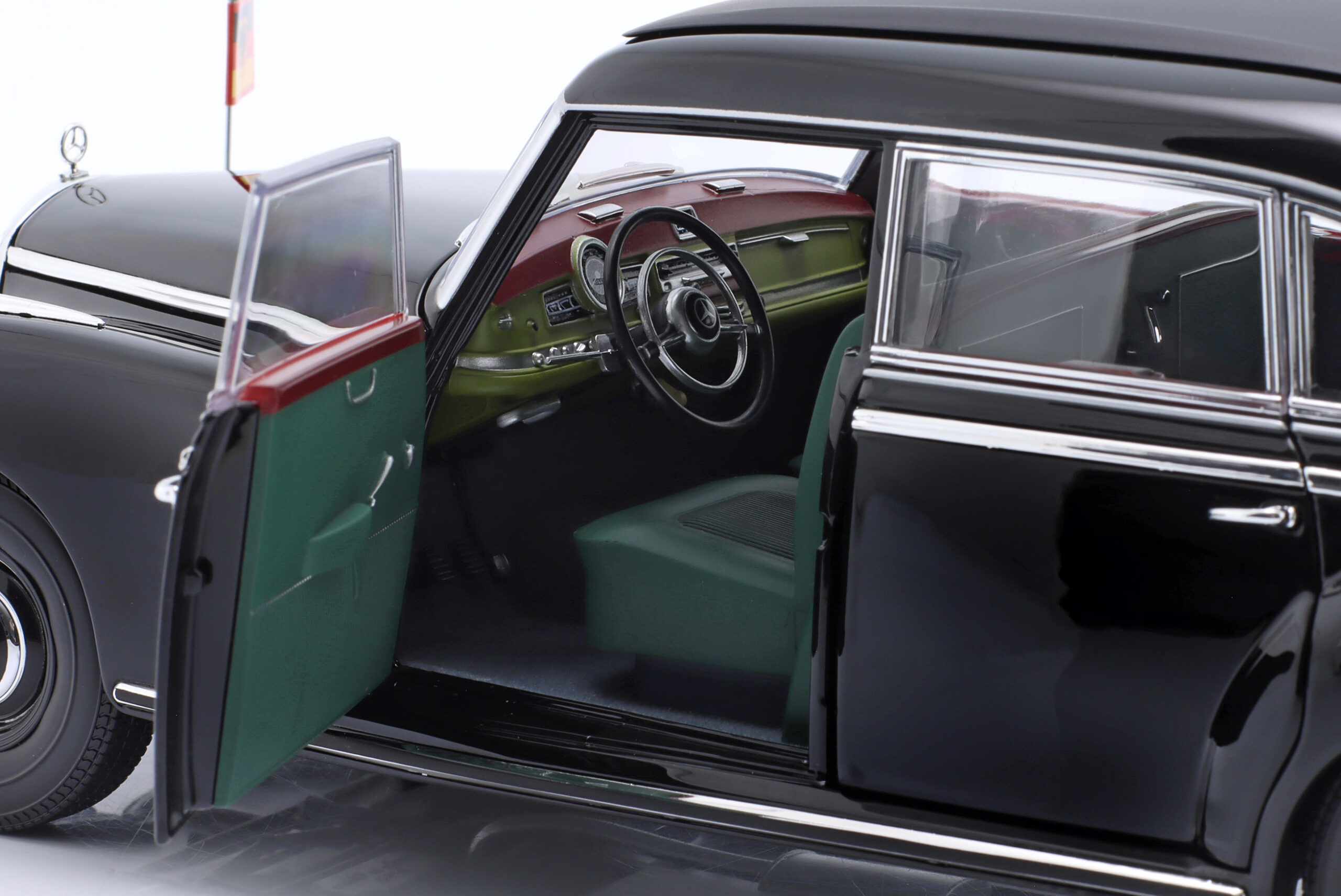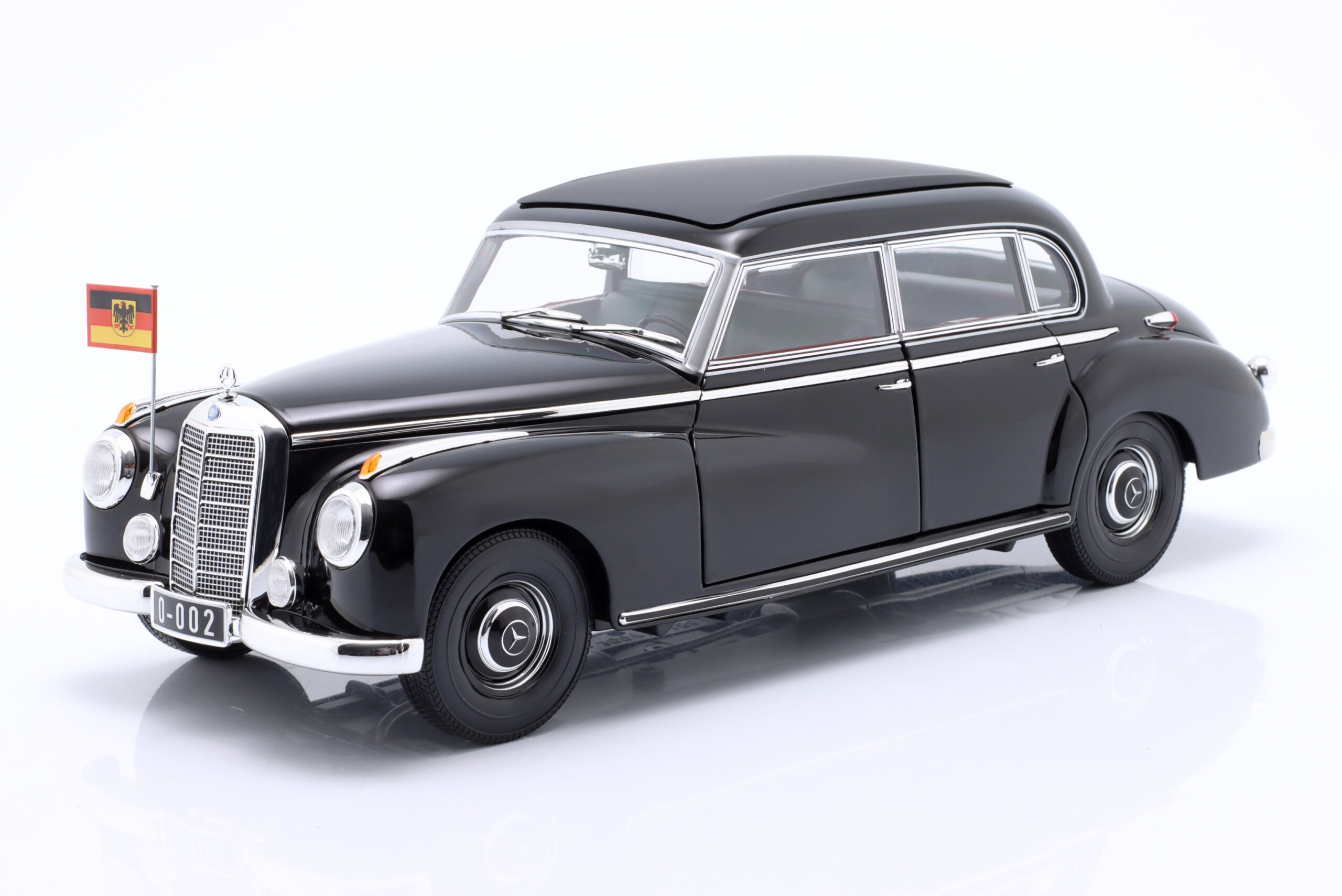 Kolekcjonerski model metalowy z elementami plastikowymi samochodu MERCEDES-BENZ 300 (W186) Konrad Adenauer z roku 1955 w kolorze Czarnym.Model posiada otwierane drzwi,pokrywę silnika i bagażnika.