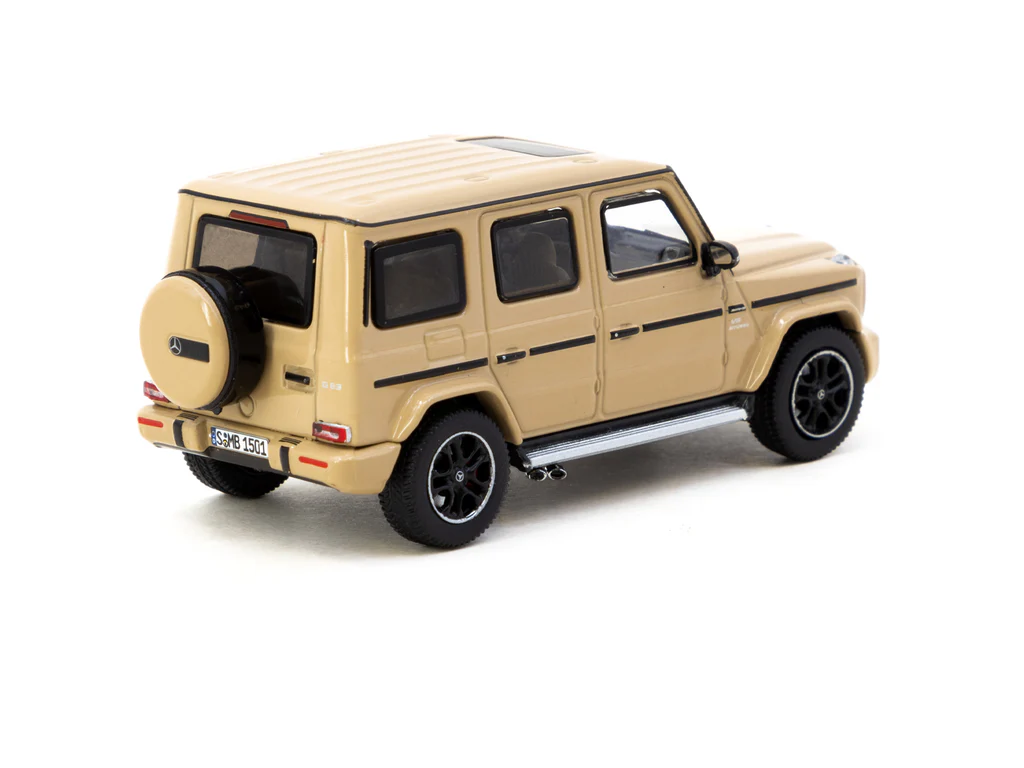 Kolekcjonerski model metalowy z elementami plastikowymi samochodu MERCEDES-BENZ AMG G63 (G-Class) w kolorze Jasnobrązowym.