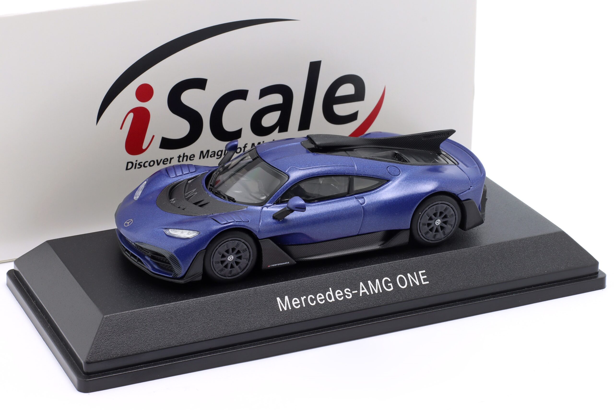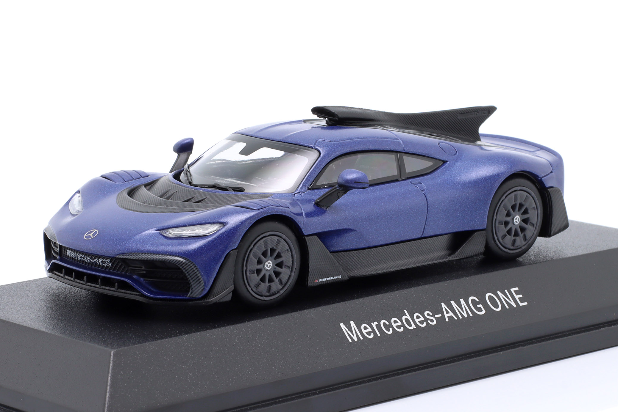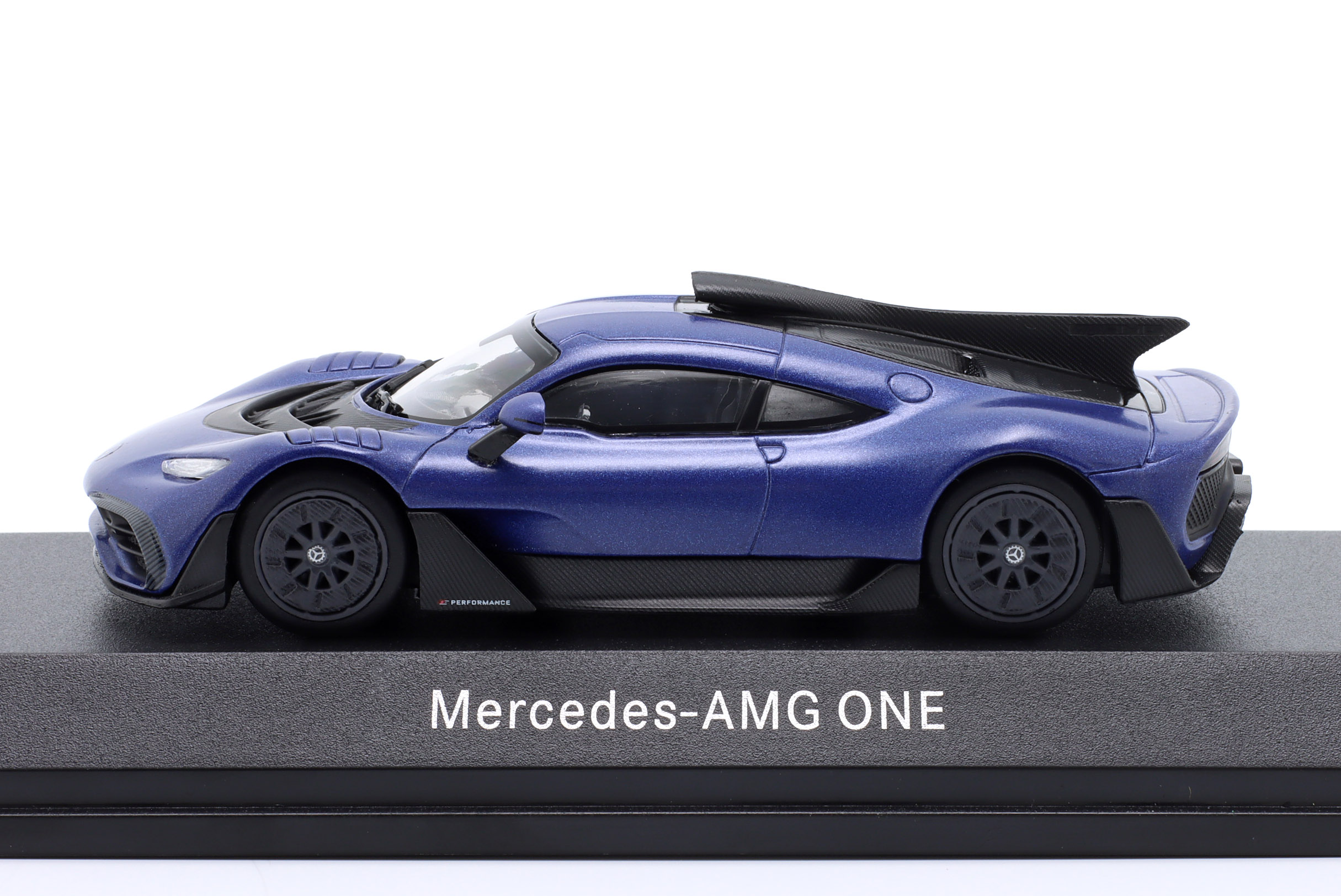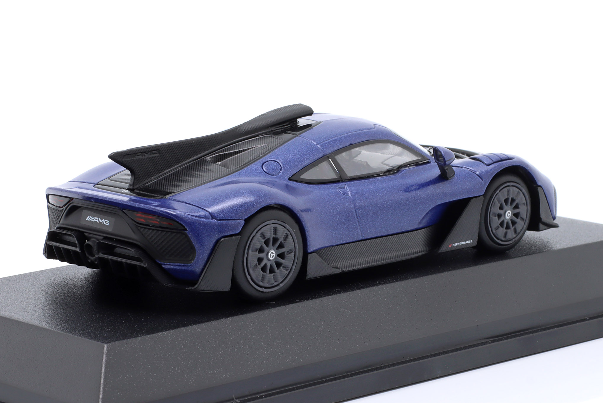 Kolekcjonerski model metalowy z elementami plastikowymi samochodu MERCEDES-BENZ AMG ONE (C298) z roku 2023 w kolorze matowy Niebieski.Model na podstawce,posiada akrylową gablotkę ekspozycyjną.