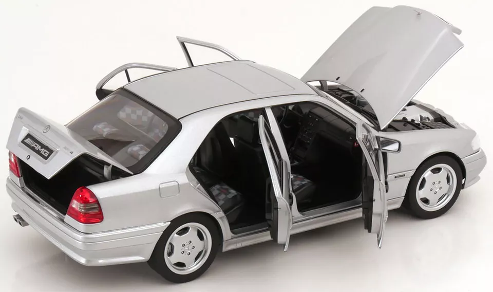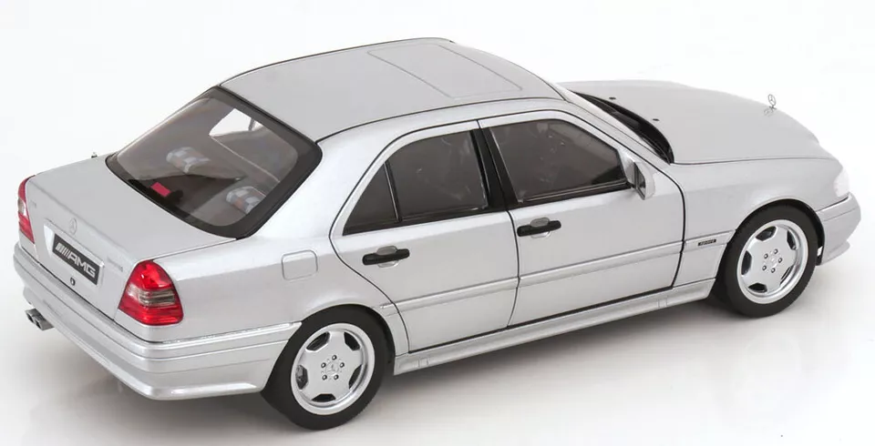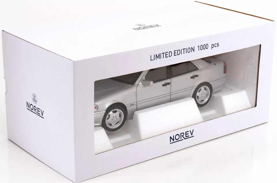 Kolekcjonerski model metalowy z elementami plastikowymi samochodu MERCEDES-BENZ C36 AMG (W202) z roku 1993 w kolorze Srebrnym.Model z edycji limitowanej tylko 1000 sztuk.