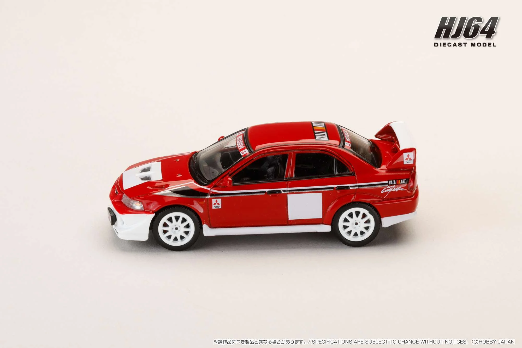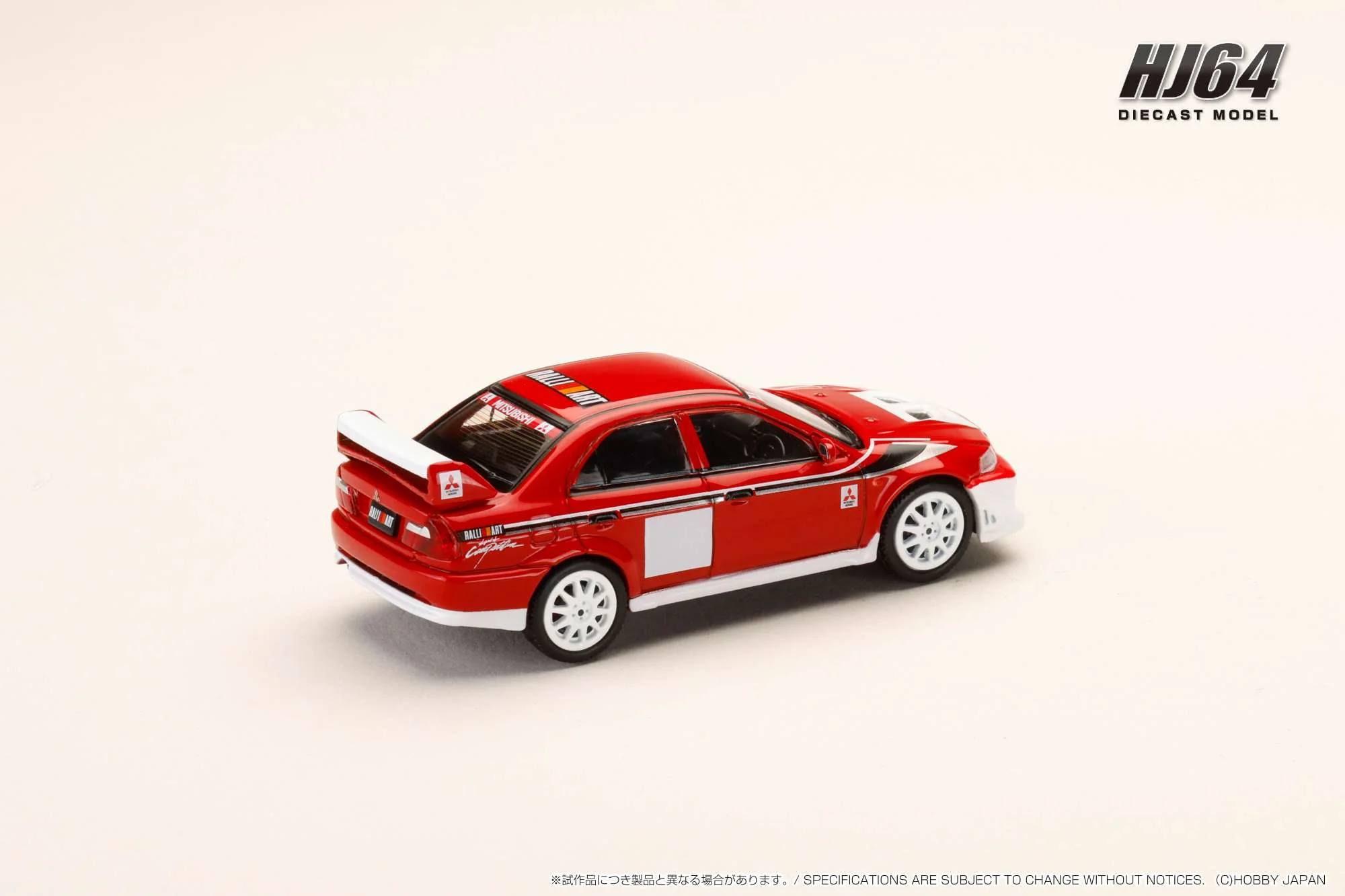Kolekcjonerski model metalowy z elementami plastikowymi samochodu rajdowego MITSUBISHI LANCER GSR Evolution 6 (CP9A) Ralliart Ver.2 w kolorze Czerwony/biały.Model na podstawce,posiada akrylową gablotkę ekspozycyjną.