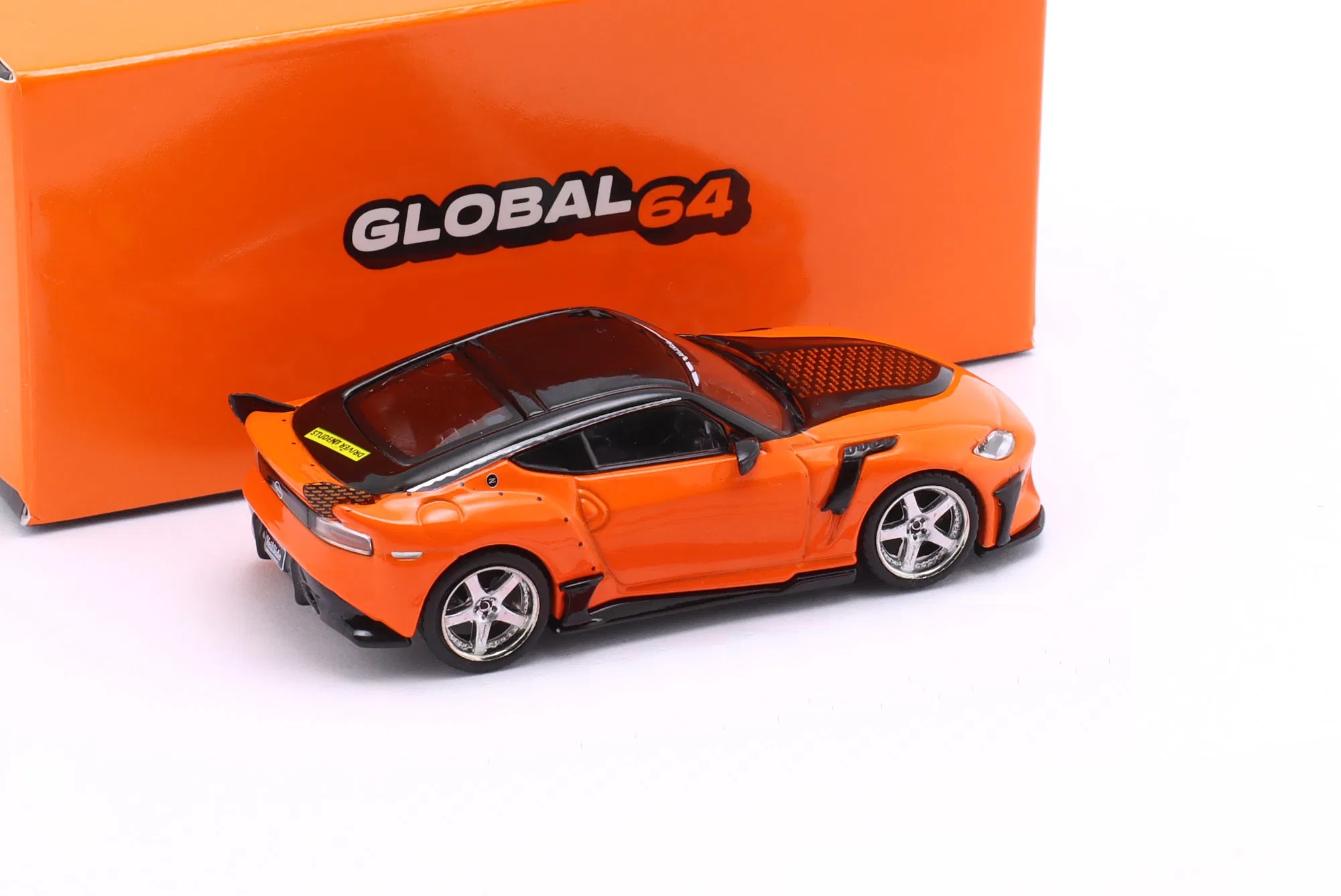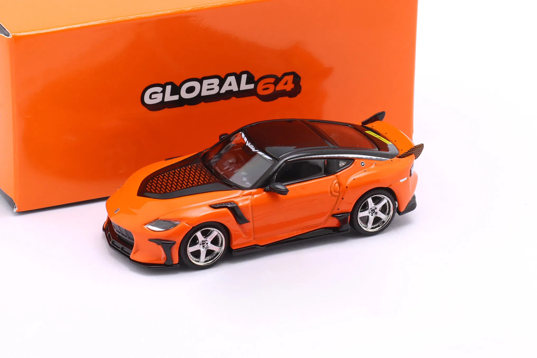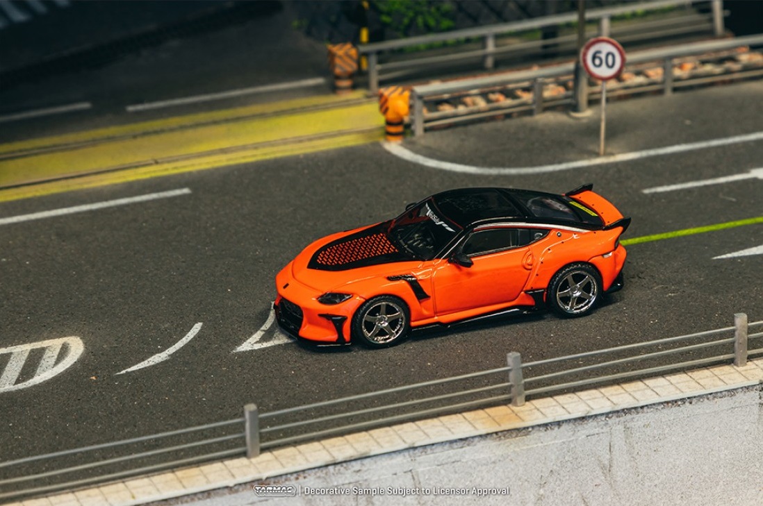Kolekcjonerski model metalowy z elementami plastikowymi samochodu NISSAN VEILSIDE FFZ400 Fairlady Z w kolorze pomarańczowym.Model zapakowany w kartonowe pudełko z obrazkiem samochodu.