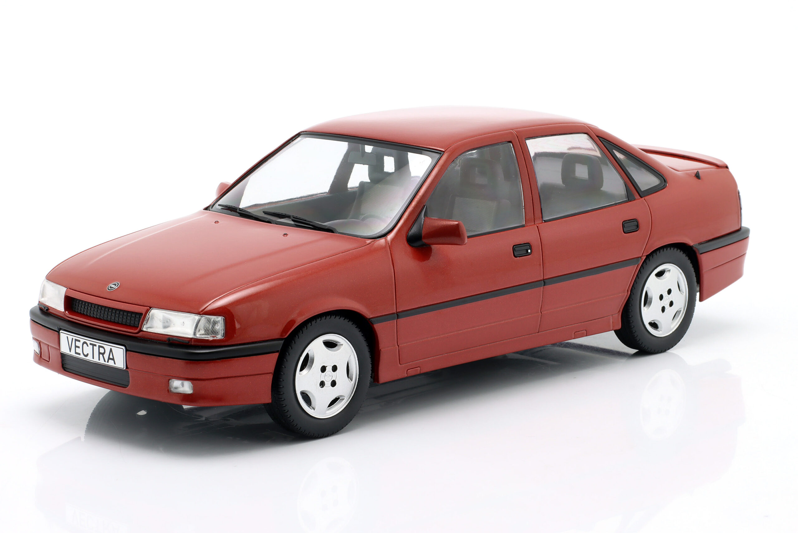 Kolekcjonerski model metalowy z elementami plastikowymi samochodu OPEL VECTRA A 2000 z roku 1988 w kolorze Ciemnoczerwony metallic.Model metalowy,nie posiada otwieranych elementów.