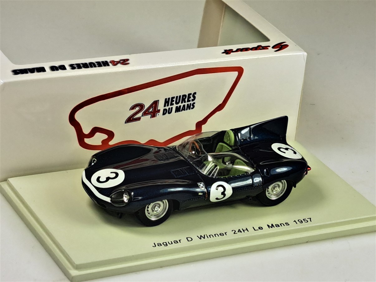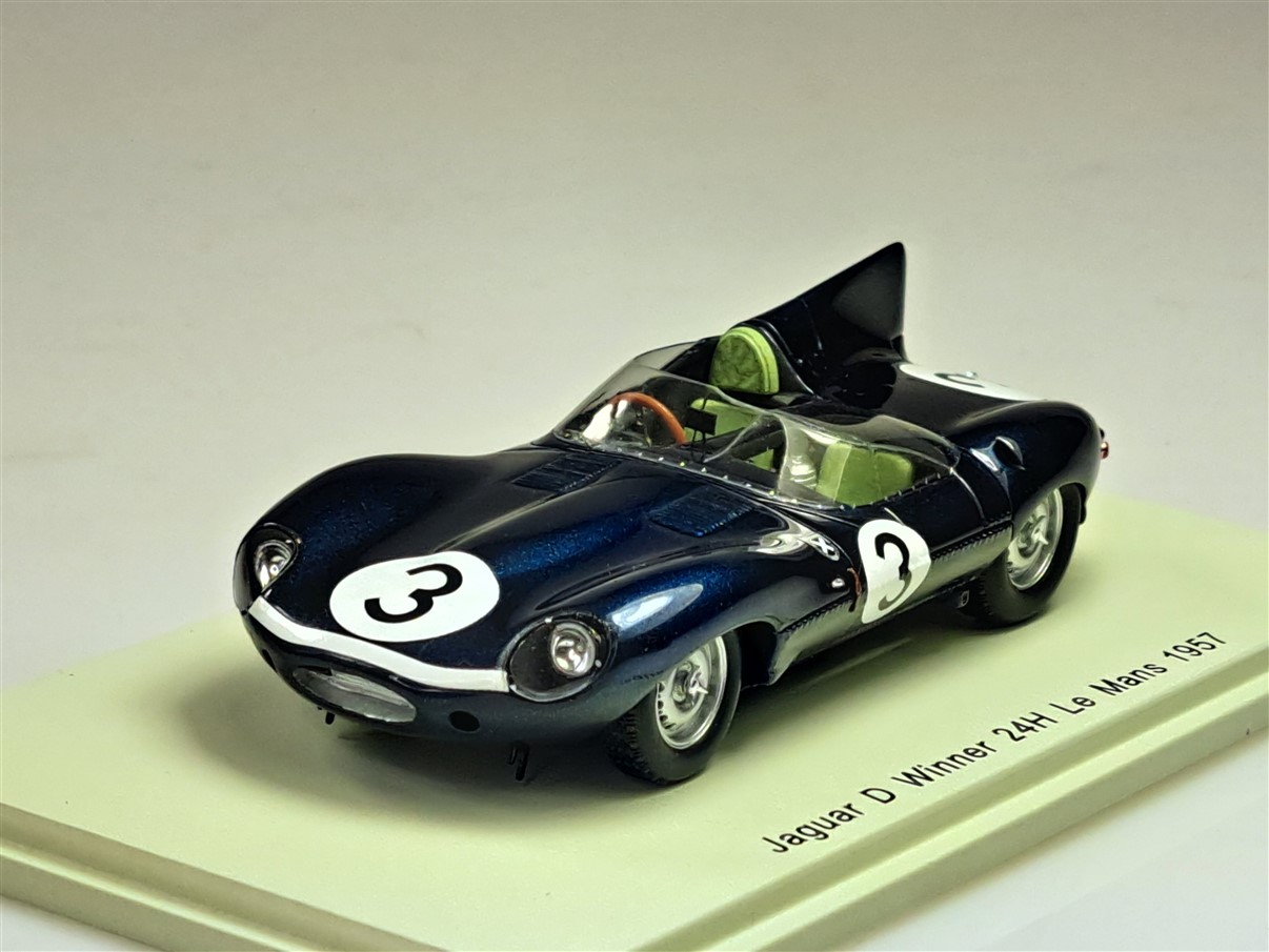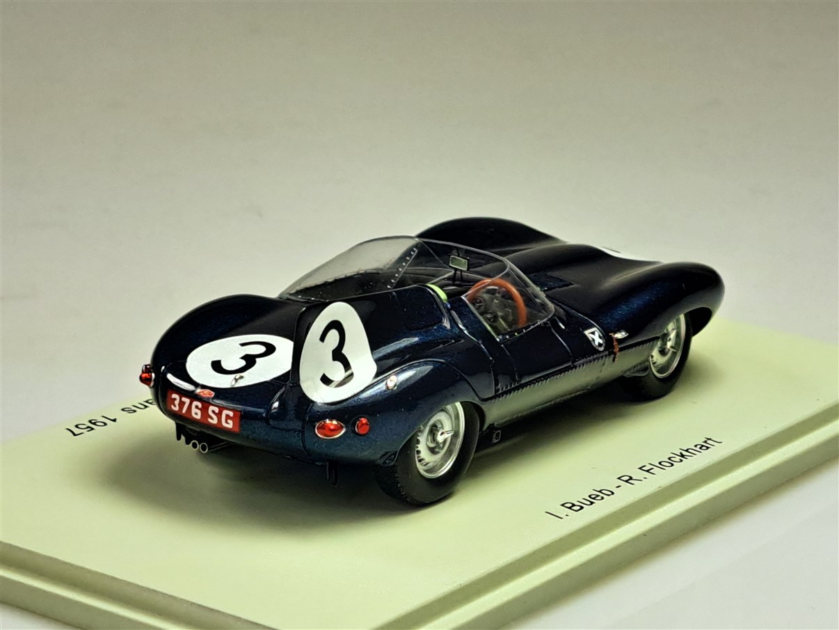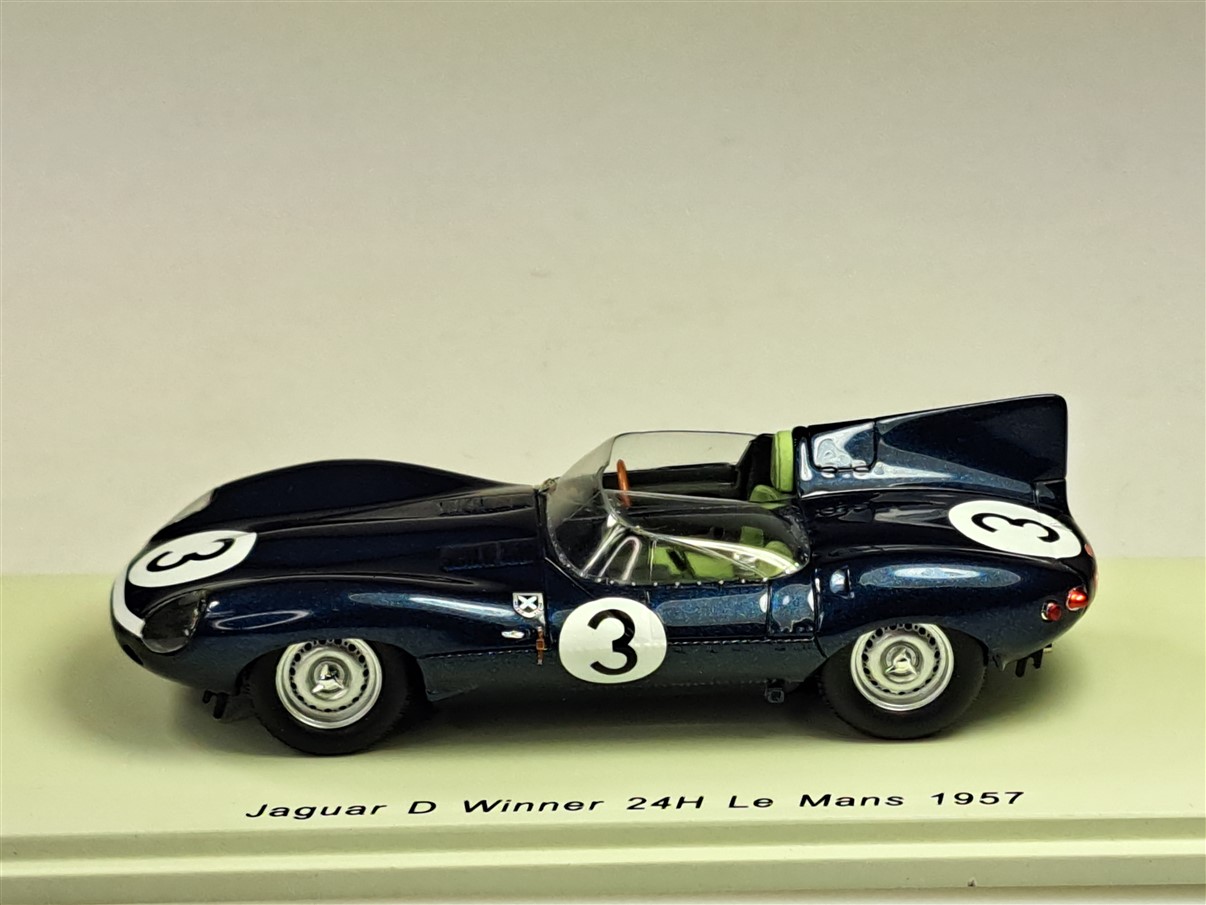 Kolekcjonerski model wykonany z żywicy samochodu wyścigowego JAGUAR D #3 zwycięskiej załogi I.Bueb/R.Flockhart wyścigu 24h na Torze Le Mans w roku 1957.