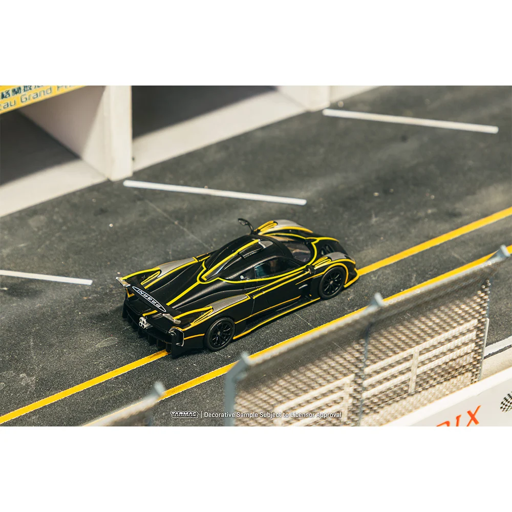 Kolekcjonerski model metalowy z elementami plastikowymi samochodu PAGANI HUAYRA R w kolorze Czarny matowy/srebrny.Zapakowany w kartonowe pudełko.