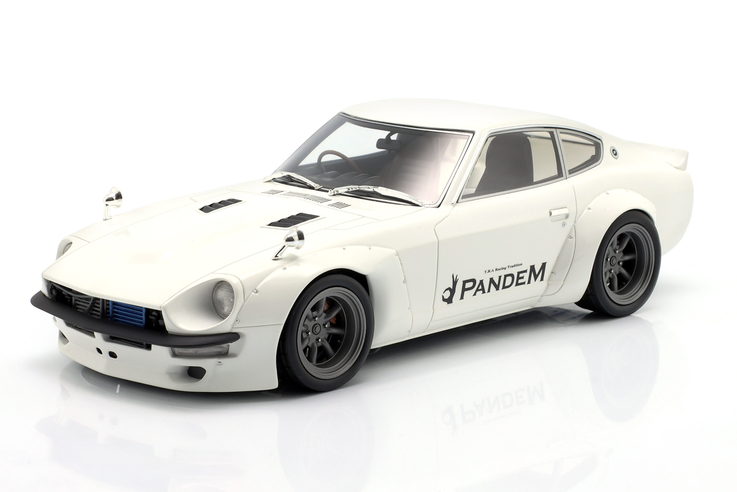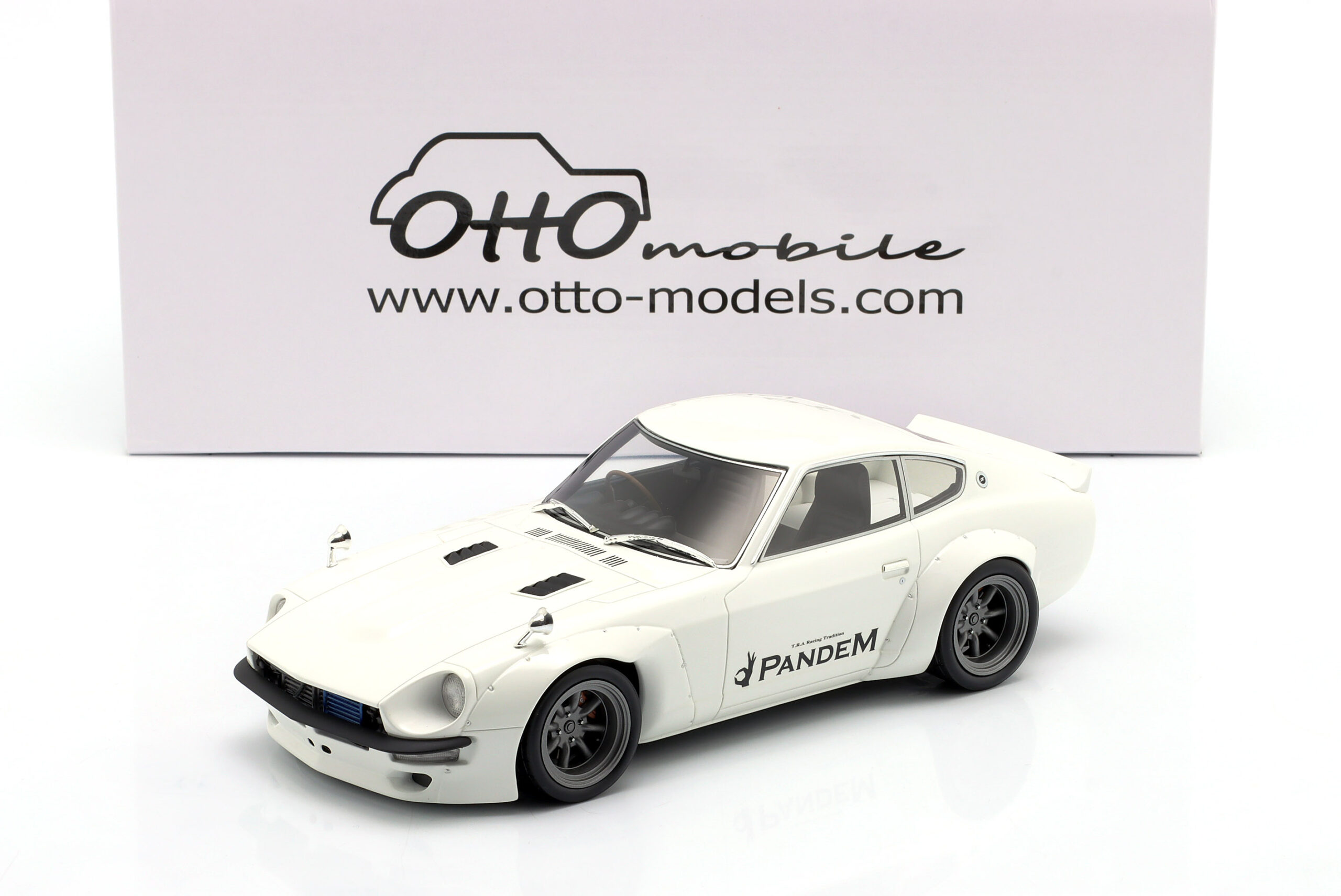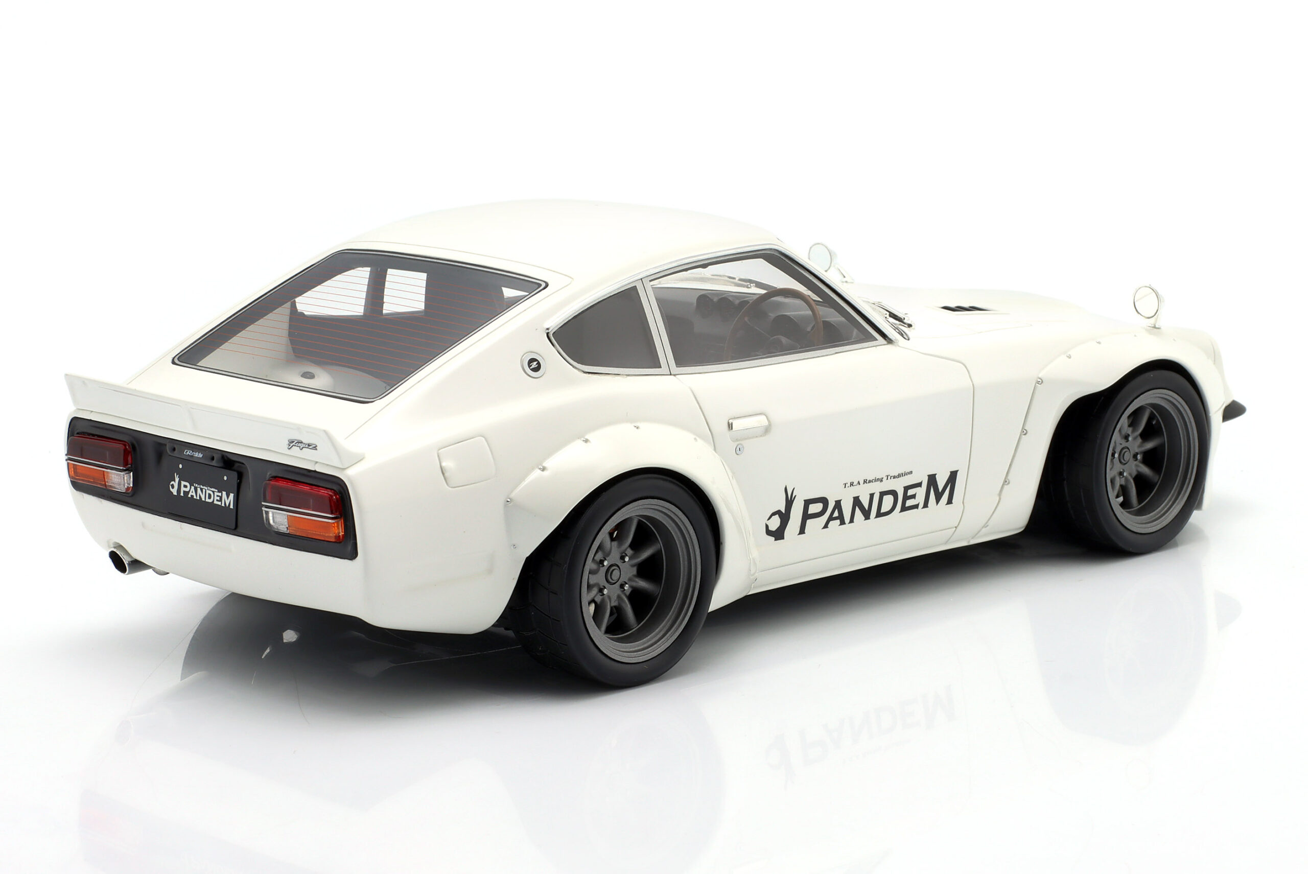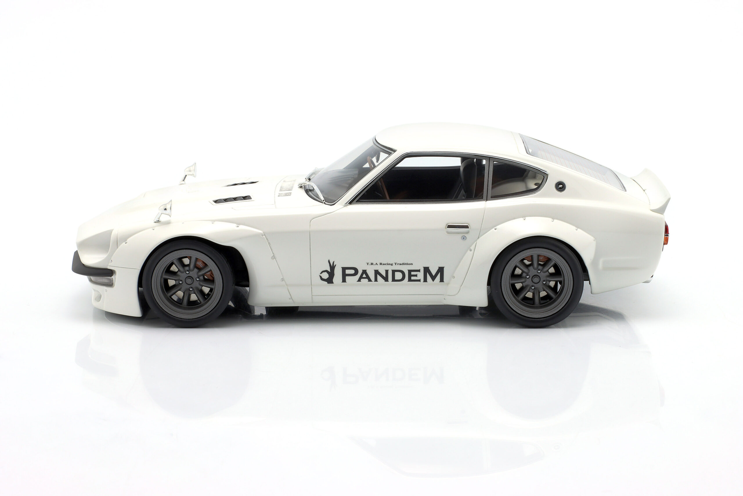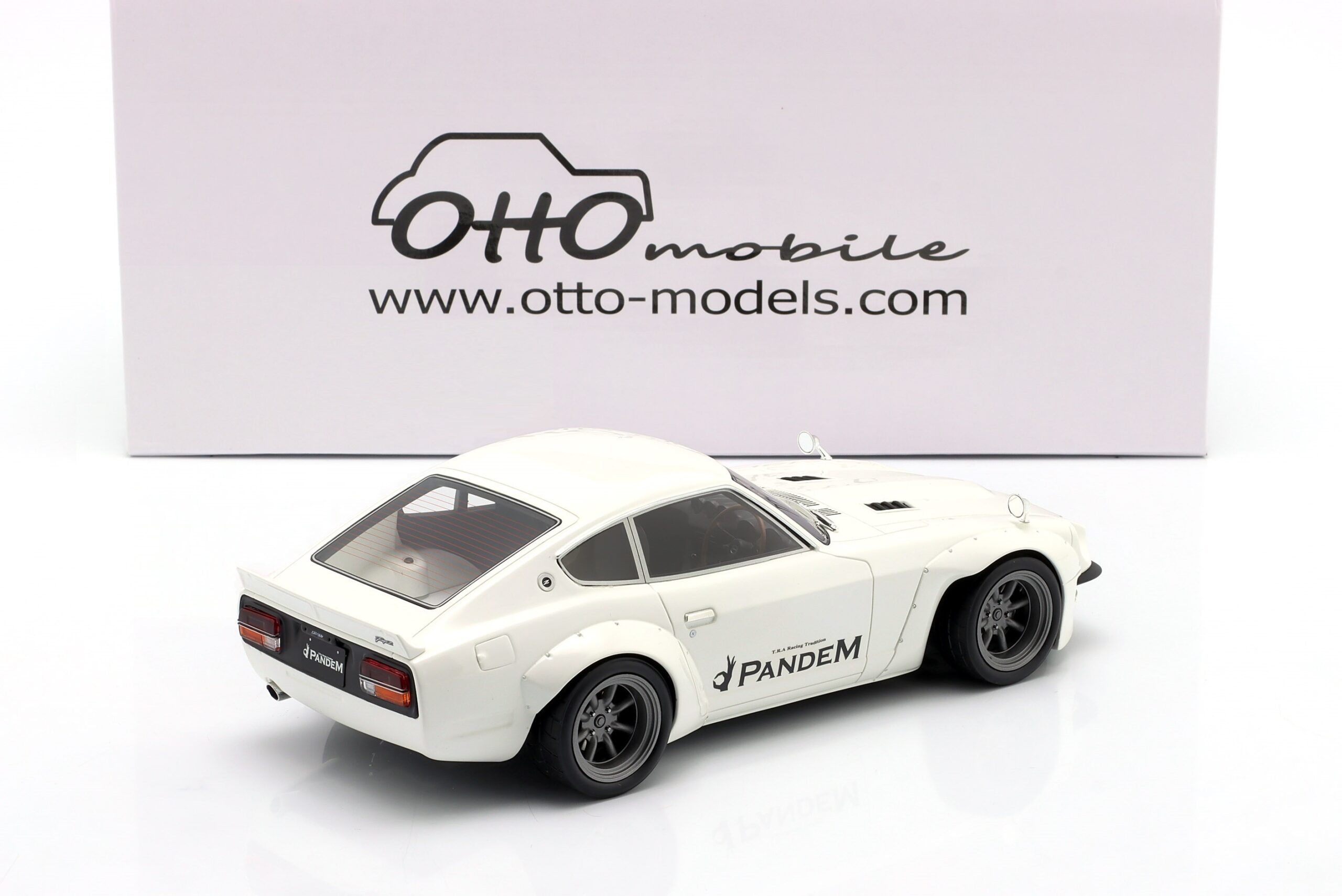 Kolekcjonerski wykonany z żywicy samochodu PANDEM NISSAN FAIRLADY Z z roku 2015 w kolorze Białym.Model nie posiada otwieranych elementów.Zapakowany w styropianowe pudełko z kartonową obwolutą.Edycja limitowana tylko 2000 sztuk.