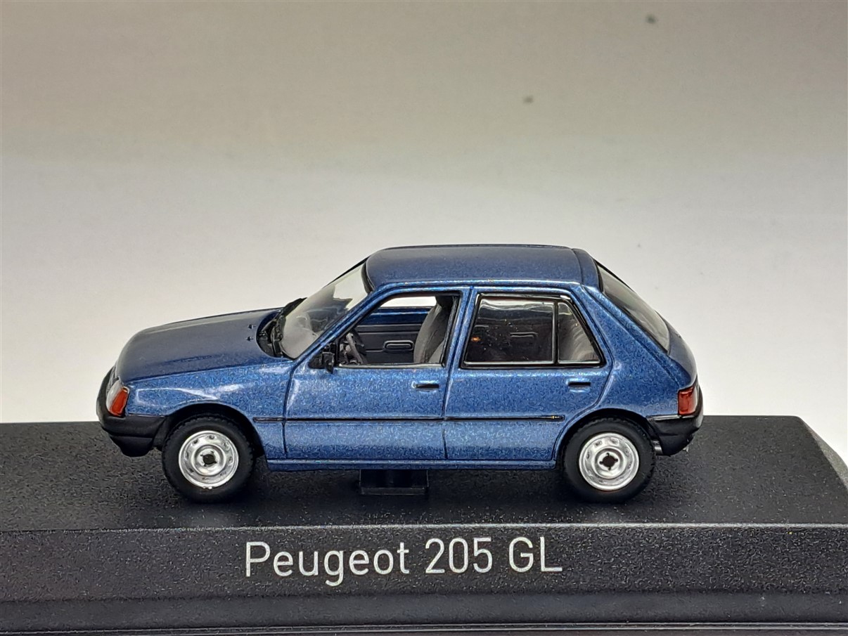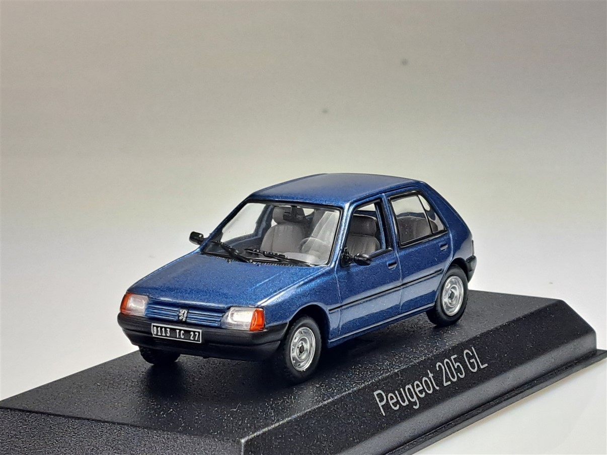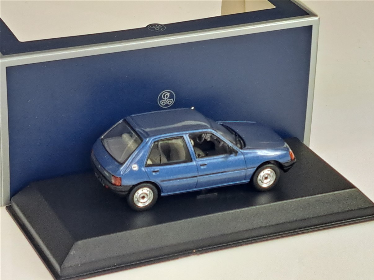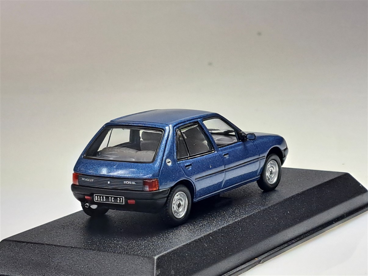 Kolekcjonerski model metalowy z elementami plastikowymi samochodu PEUGEOT 205 GL z roku 1988 w kolorze Ming Blue.
