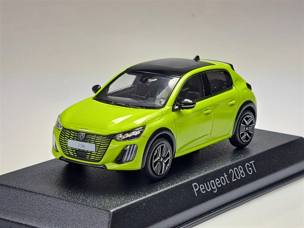 Kolekcjonerski model metalowy z elementami plastikowymi samochodu PEUGEOT 208 GT z roku 2024 w kolorze Aqueda yellow.Model w skali 1:43,model na podstawce posiada akrylową gablotkę ekspozycyjną.