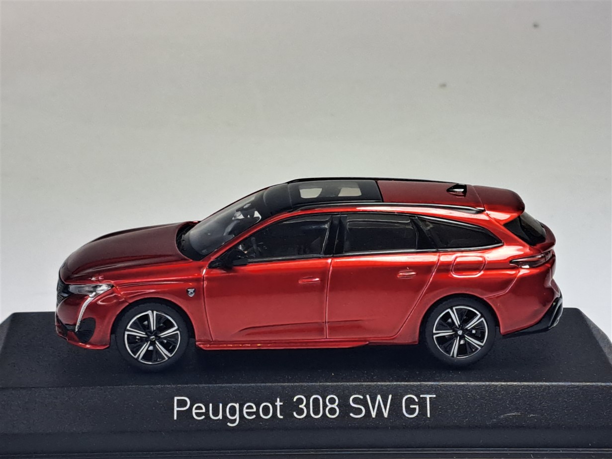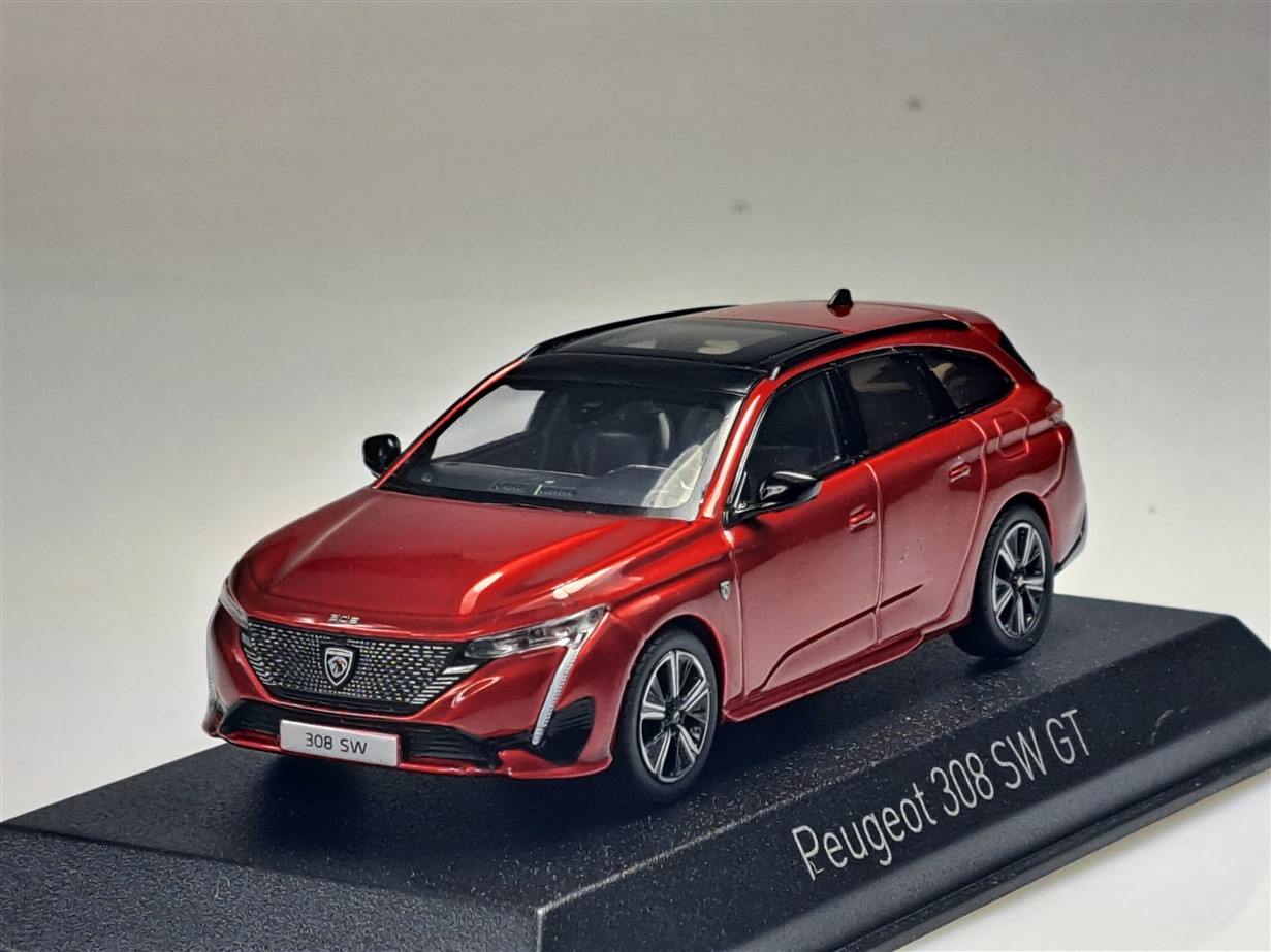 Kolekcjonerski model metalowy z elementami plastikowymi samochodu PEUGEOT 308 SW GT z roku 2021 w kolorze Elixir Red.