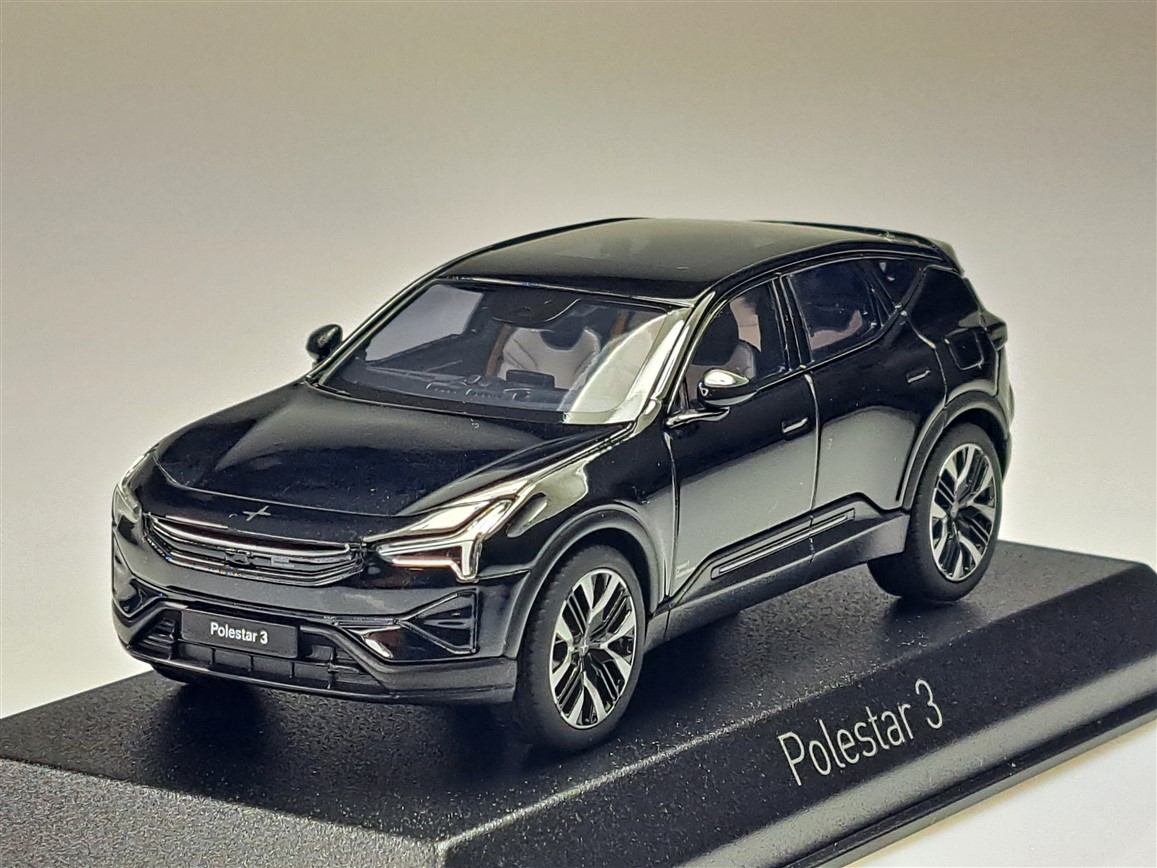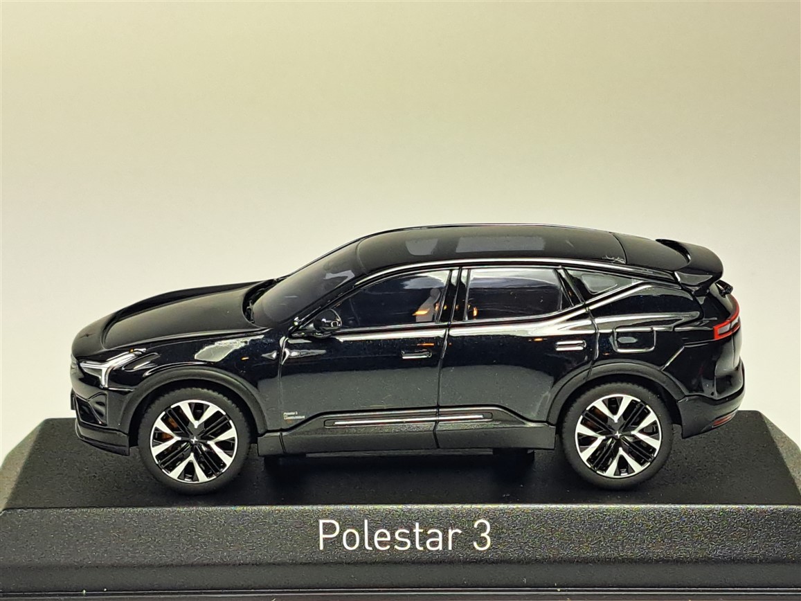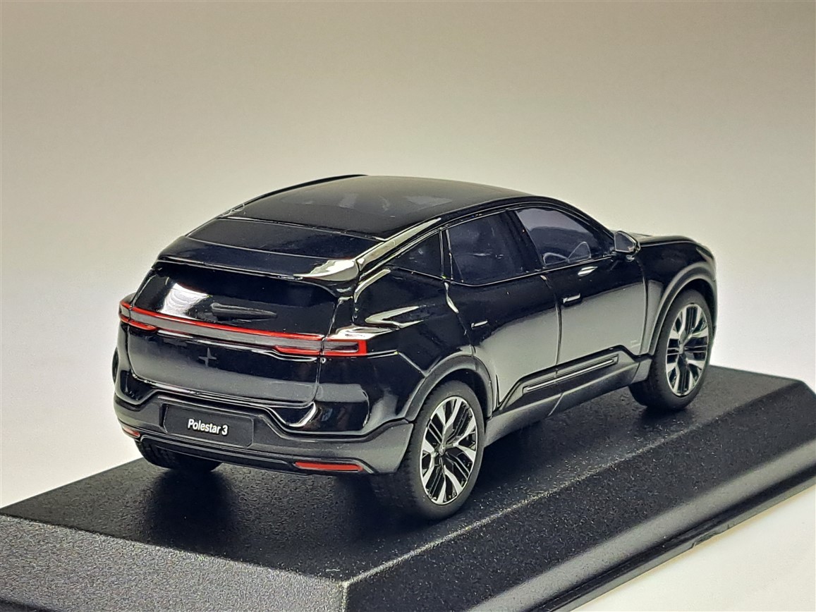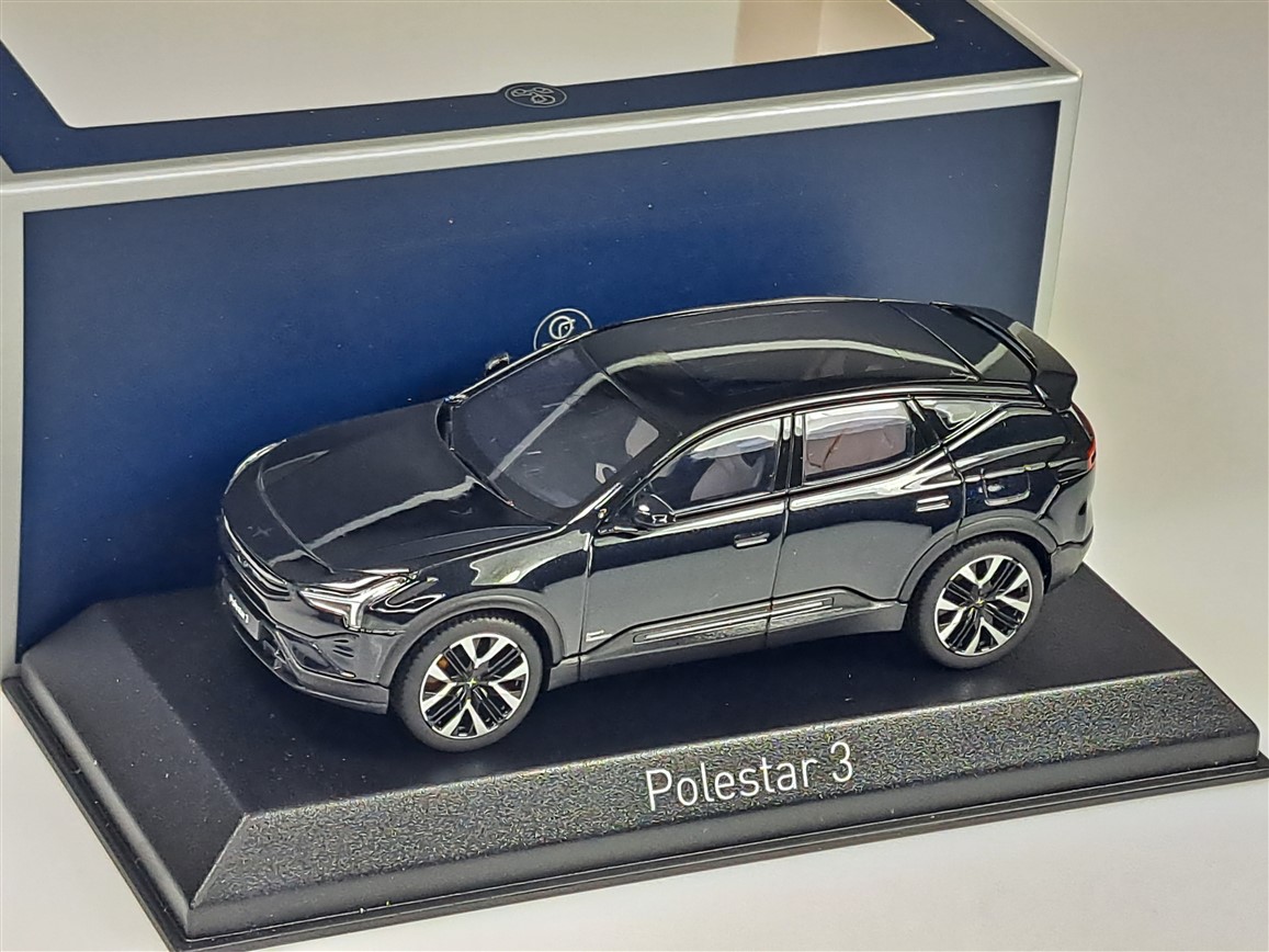 Kolekcjonerski model metalowy z elementami plastikowymi samochodu POLESTAR 3 z roku 2024 w kolorze Space Black.