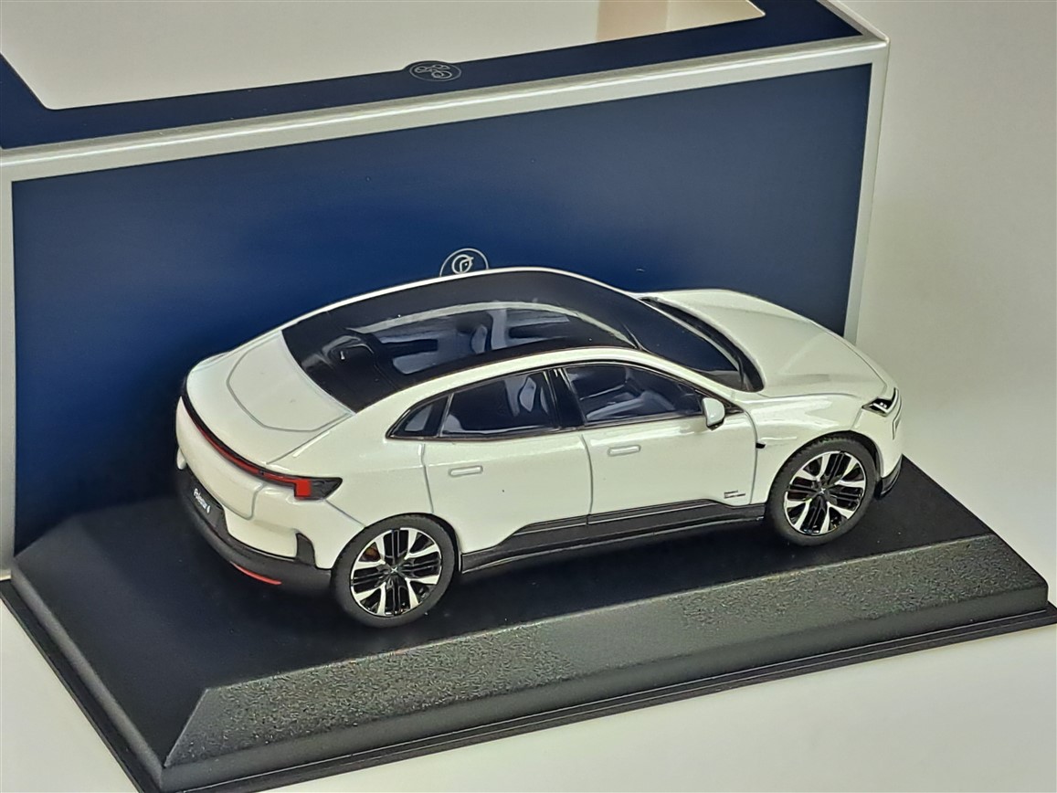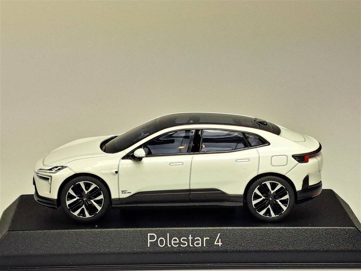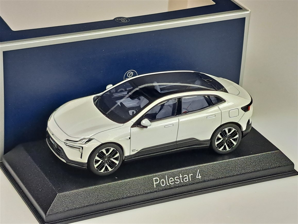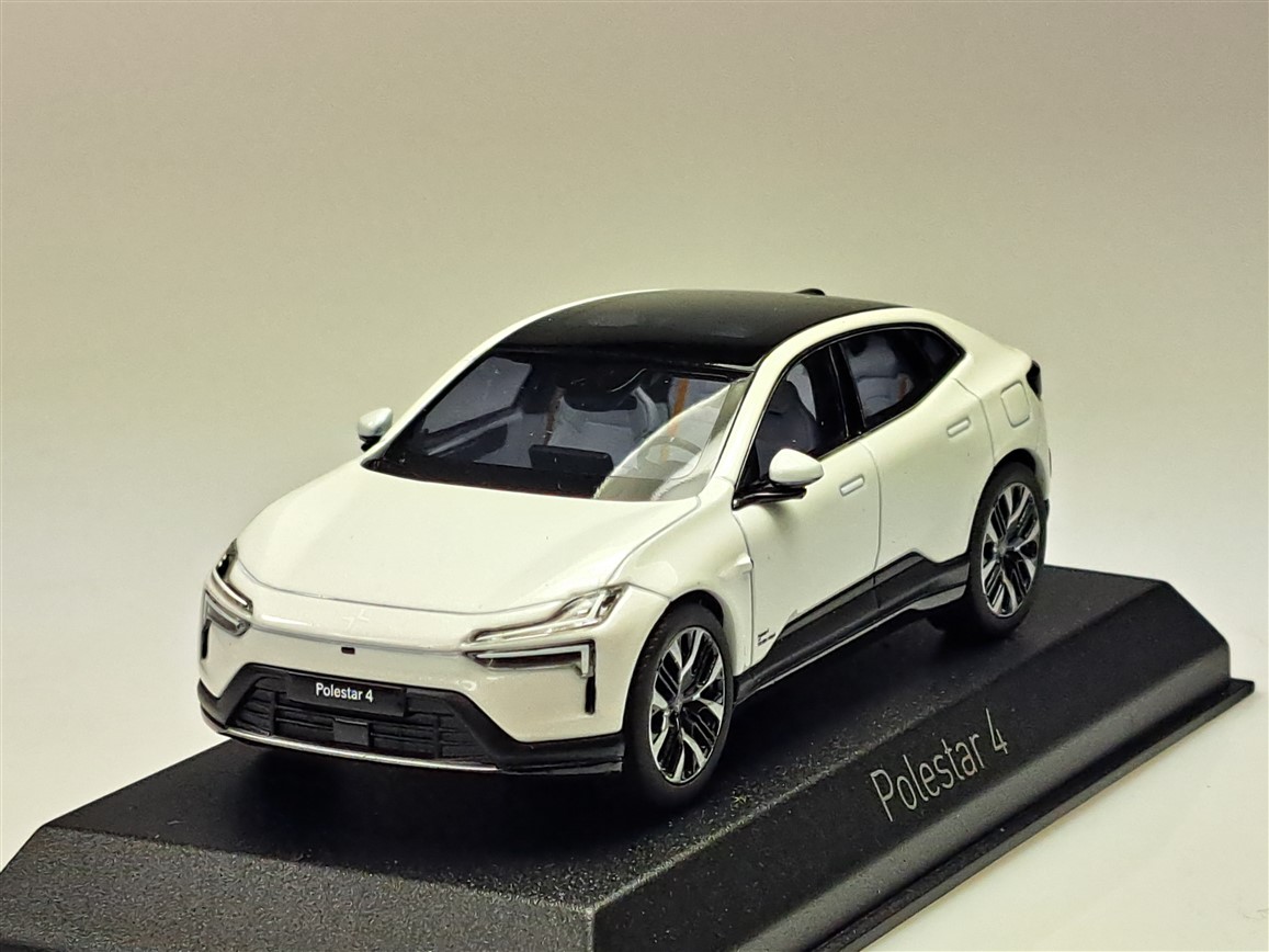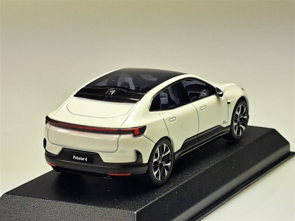 Kolekcjonerski model metalowy z elementami plastikowymi samochodu POLESTAR 4 z roku 2024 w kolorze Snow white.