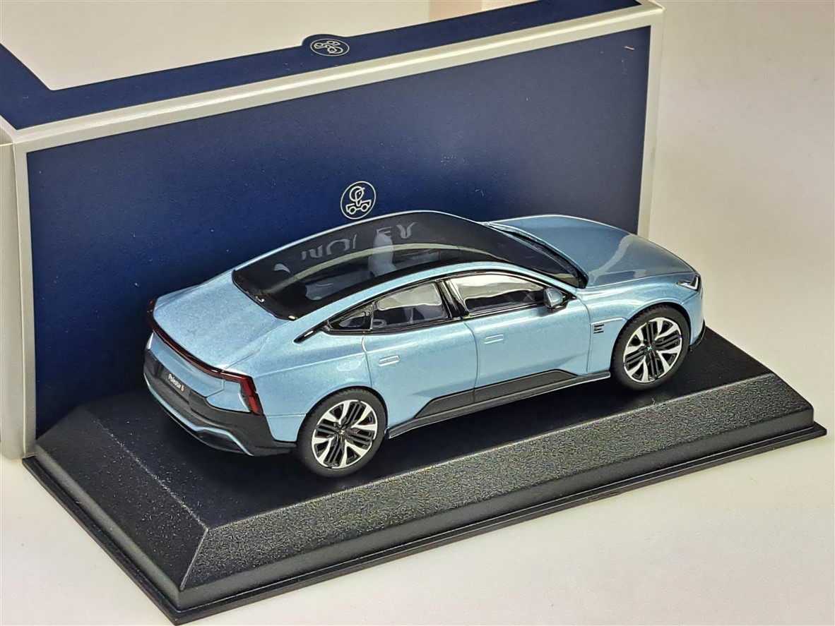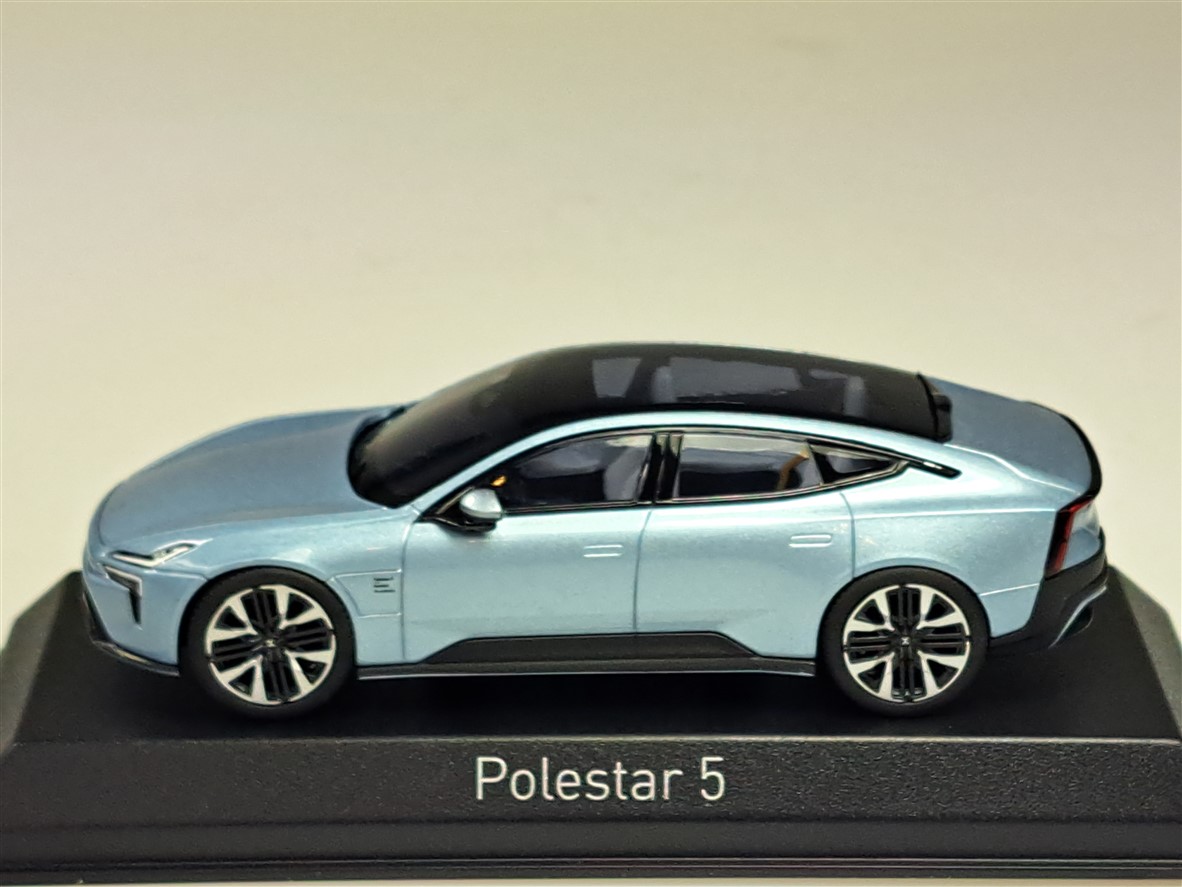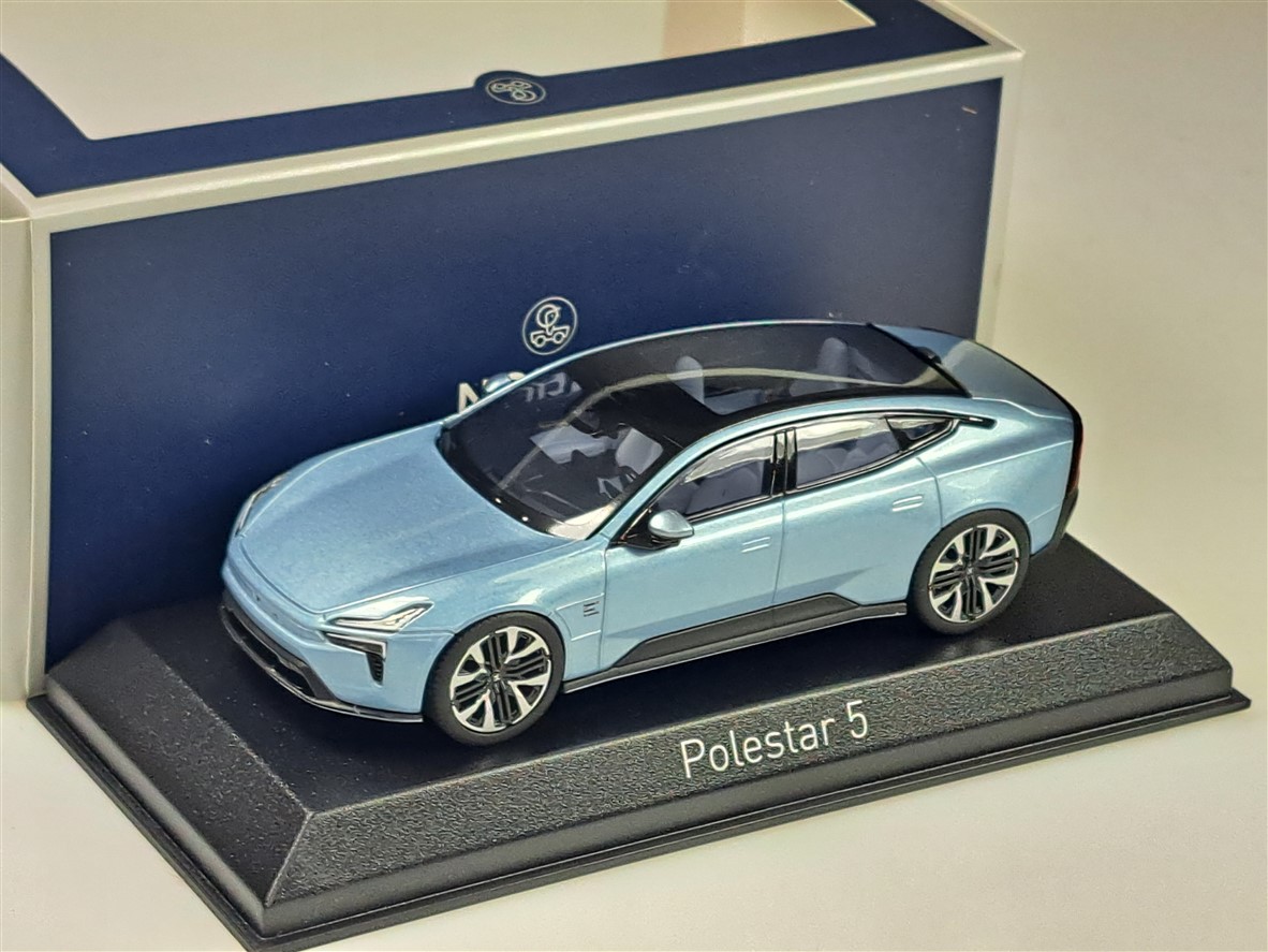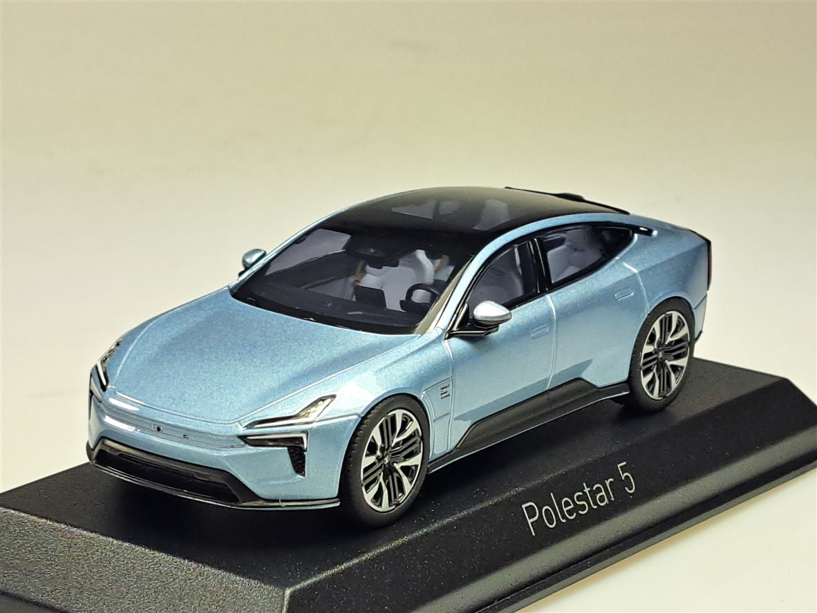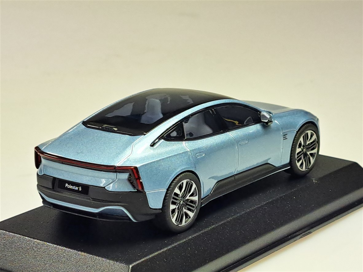 Kolekcjonerski model metalowy z elementami plastikowymi samochodu POLESTAR 5 (VOLVO) z roku 2025 w kolorze Electron.Model na podstawce,posiada akrylową gablotkę ekspozycyjną.