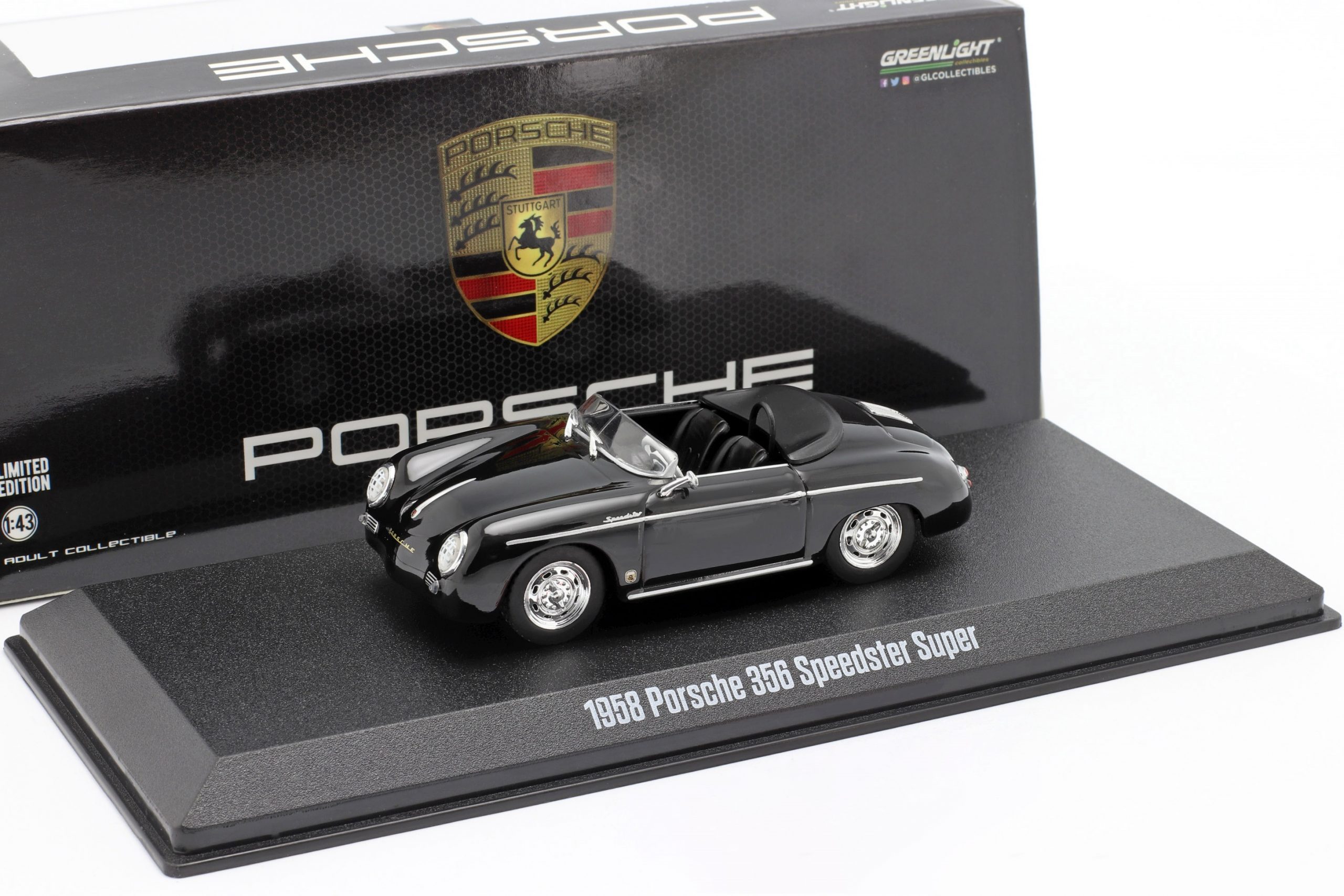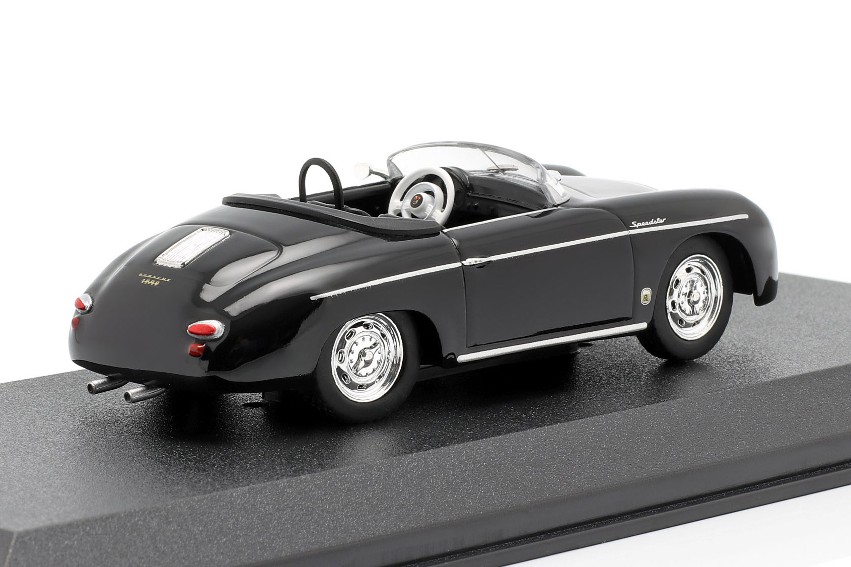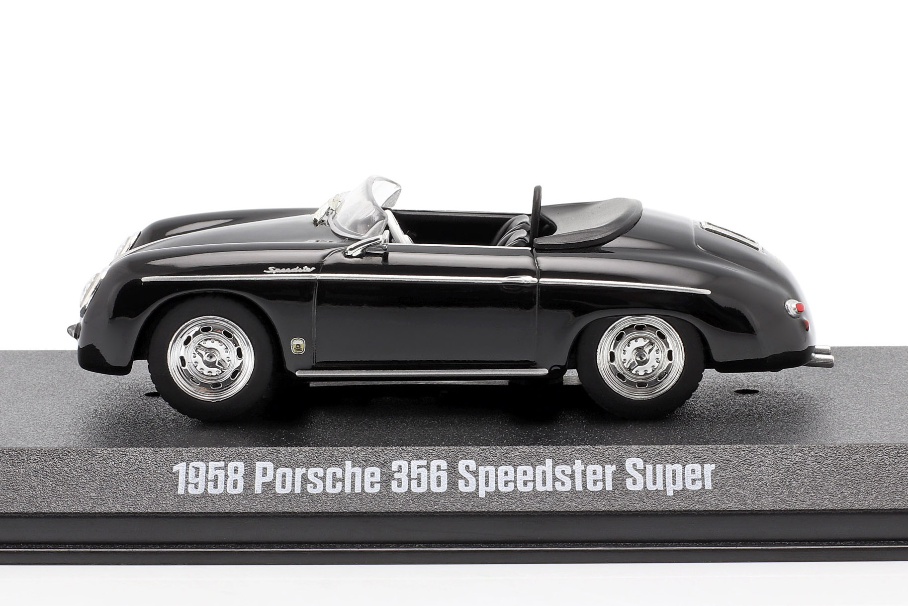 Kolekcjonerski model metalowy z elementami plastikowymi samochodu PORSCHE 356 Speedster Super z roku 1958 w kolorze Czarnym. Model z serii „Porsche Collection”.