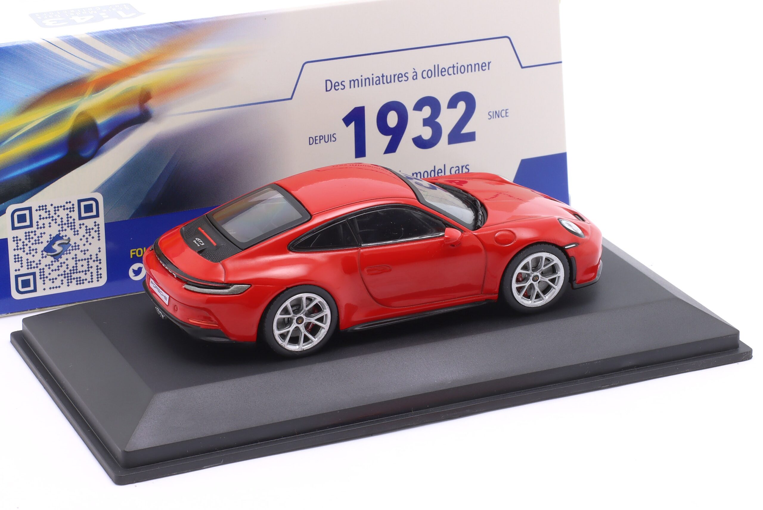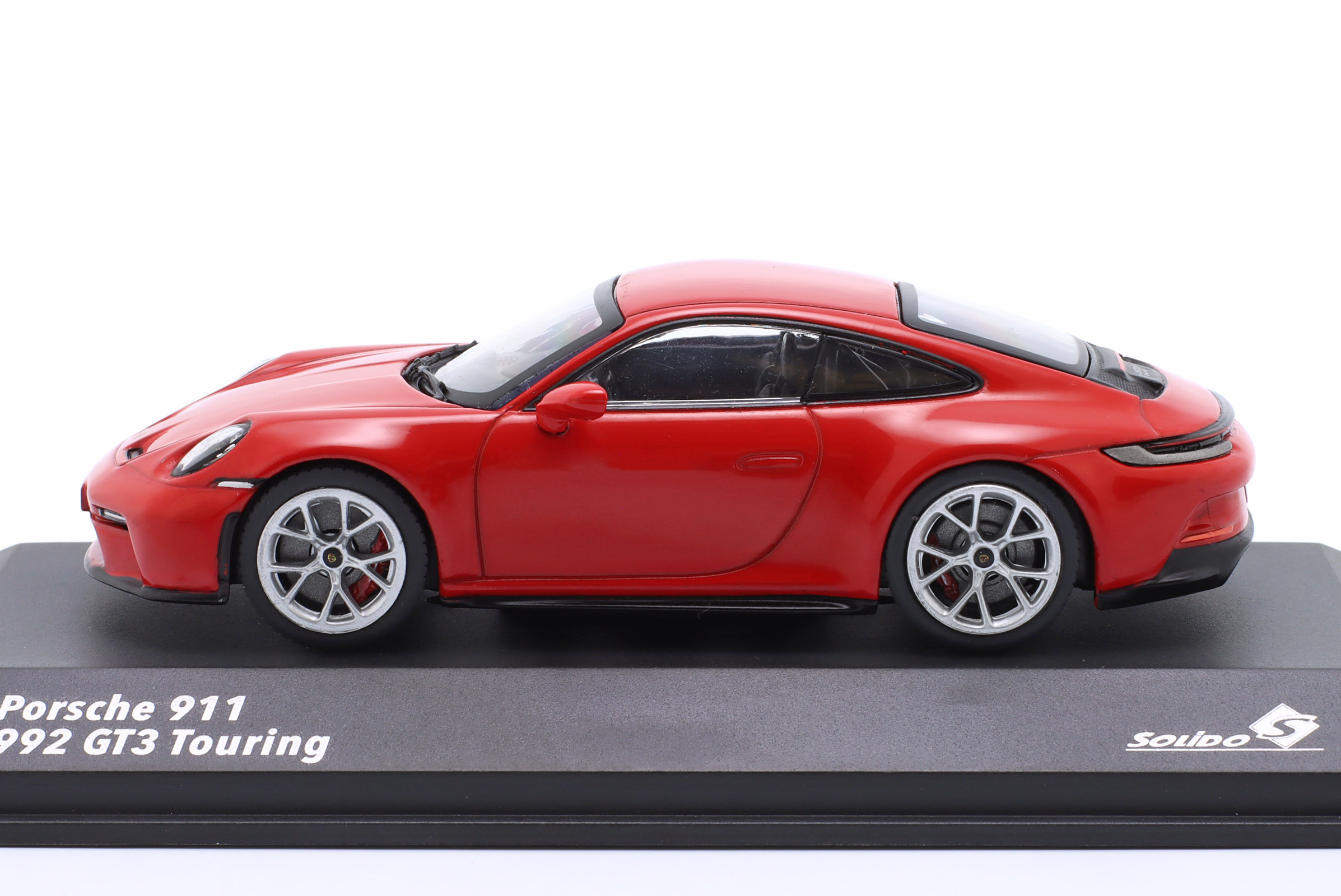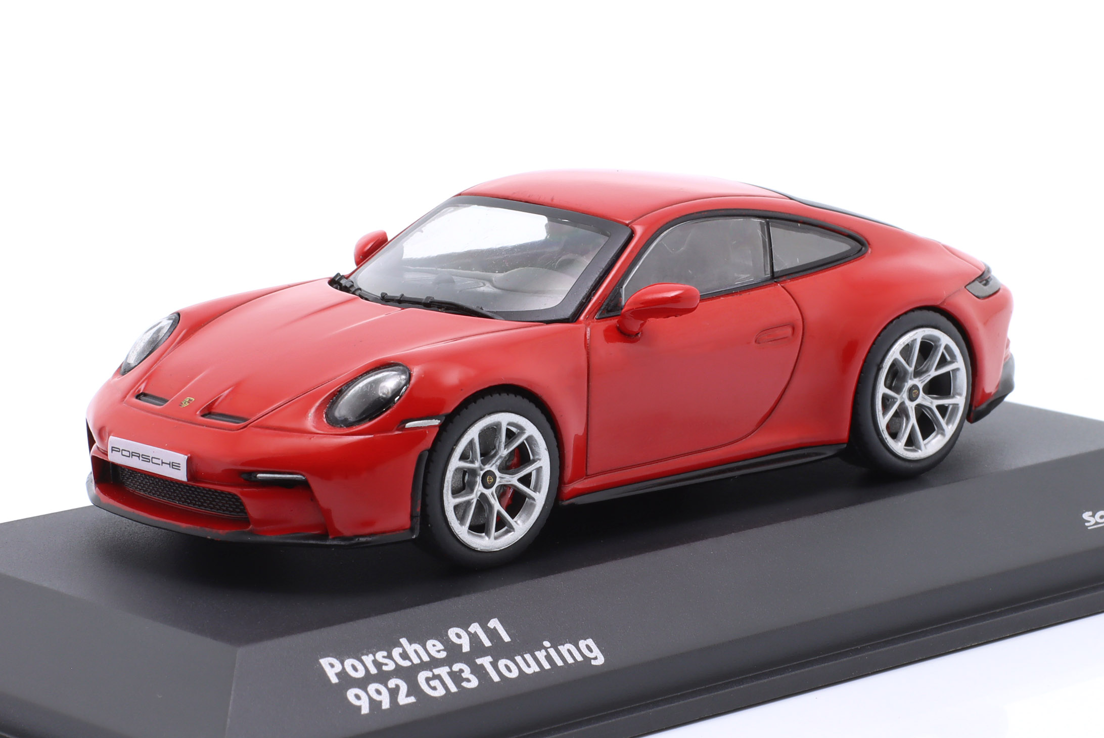 Kolekcjonerski model metalowy z elementami plastikowymi samochodu PORSCHE 911 (992) GT3 Touring z roku 2023 w kolorze Czerwonym.Model na podstawce,posiada akrylową gablotkę ekspozycyjną.