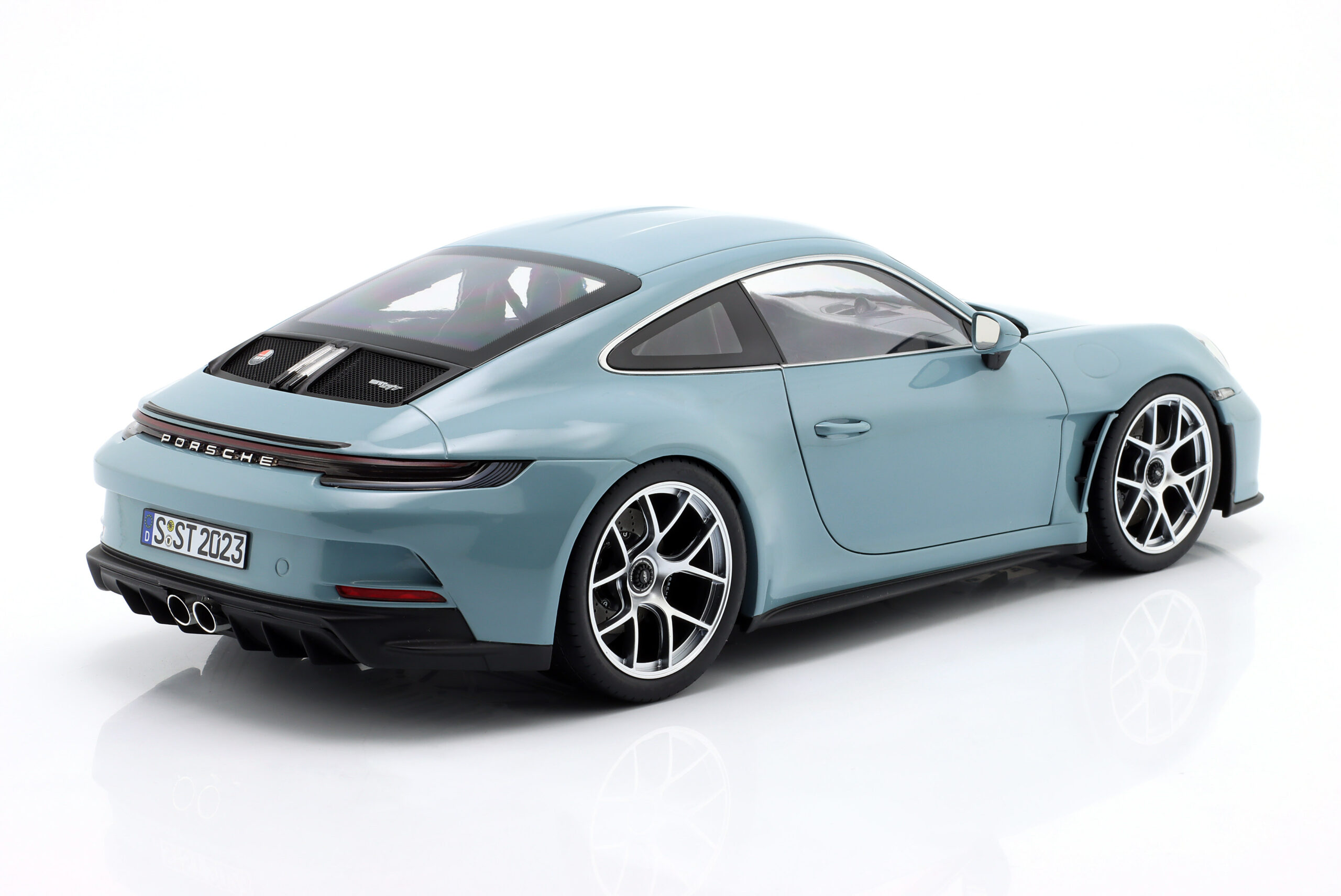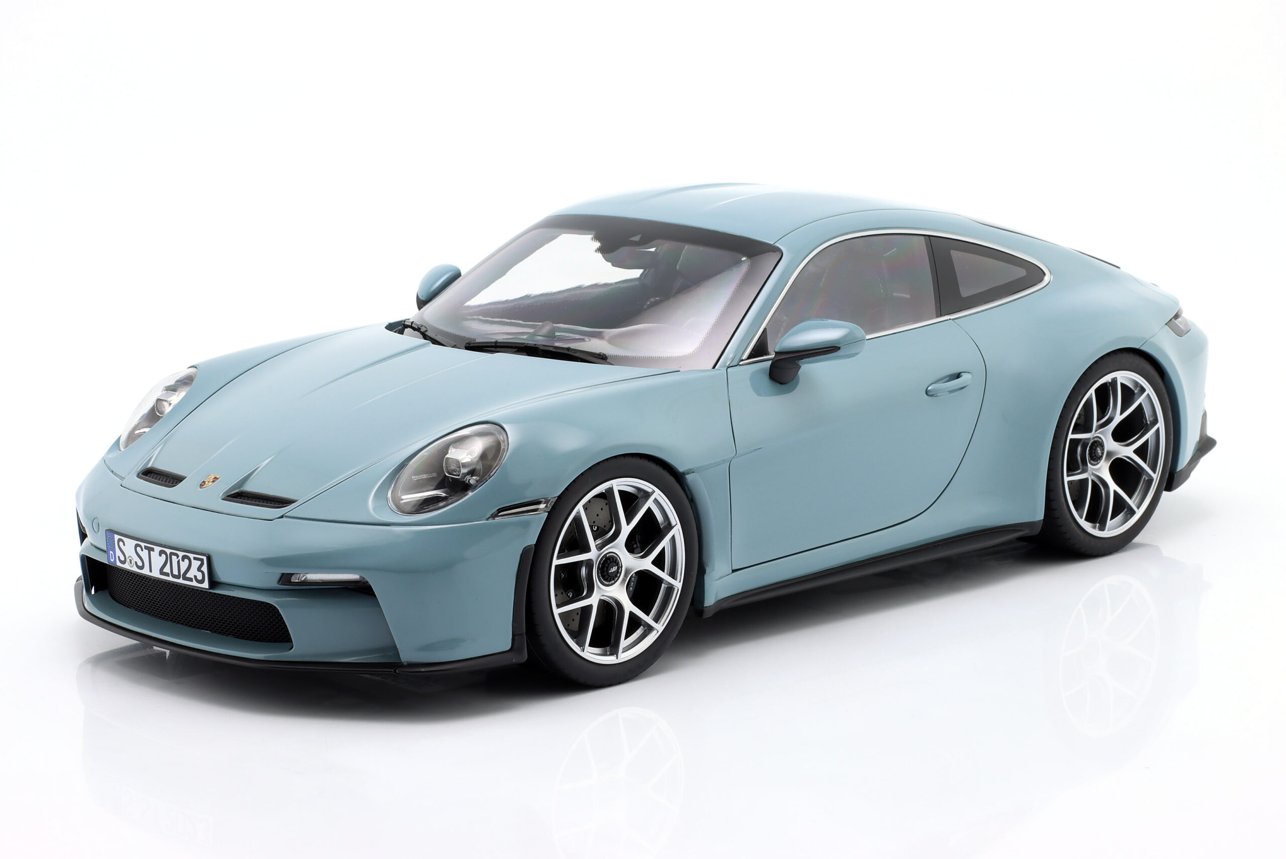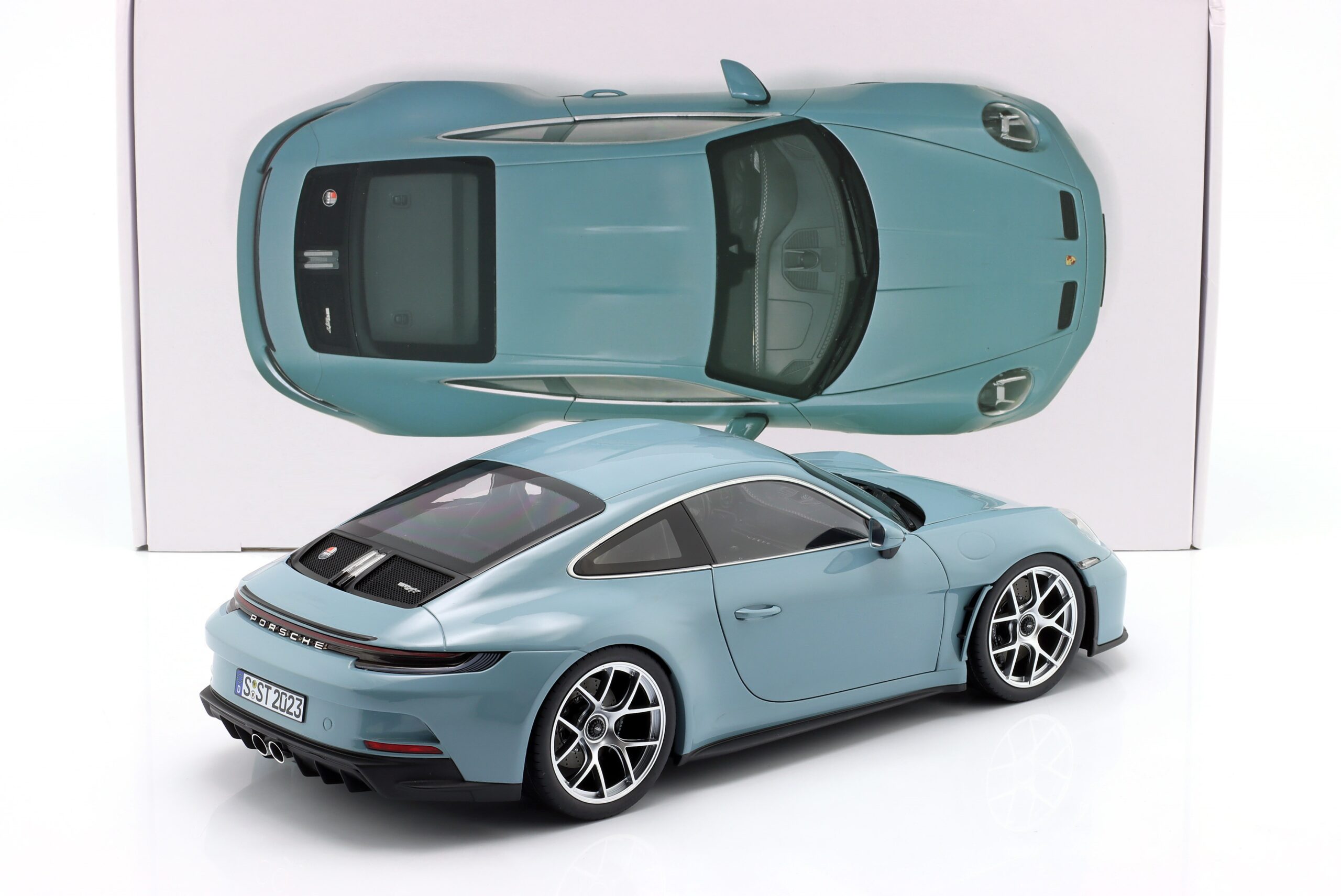 Kolekcjonerski model metalowy z elementami plastikowymi samochodu PORSCHE 911 (992) S/T z roku 2023 w kolorze Meissen blue.Model nie posiada otwieranych elementów.Edycja limitowana tylko 900 sztuk.