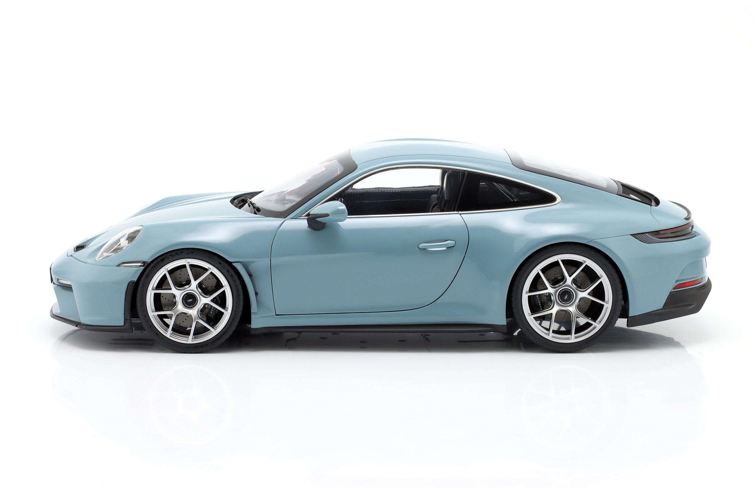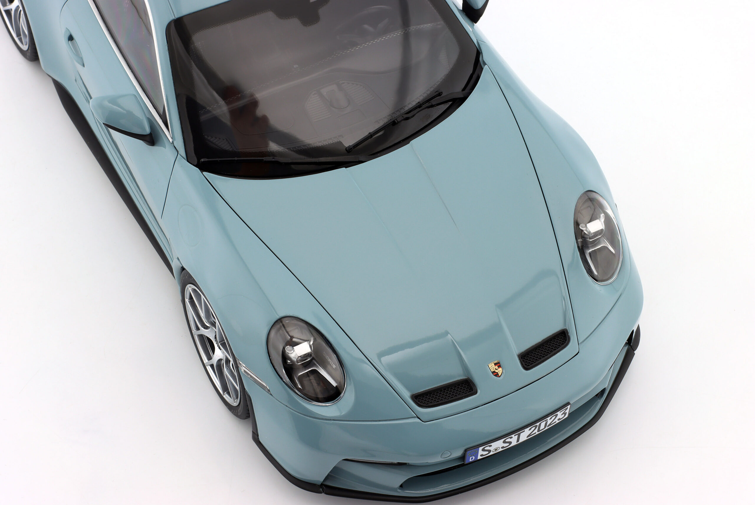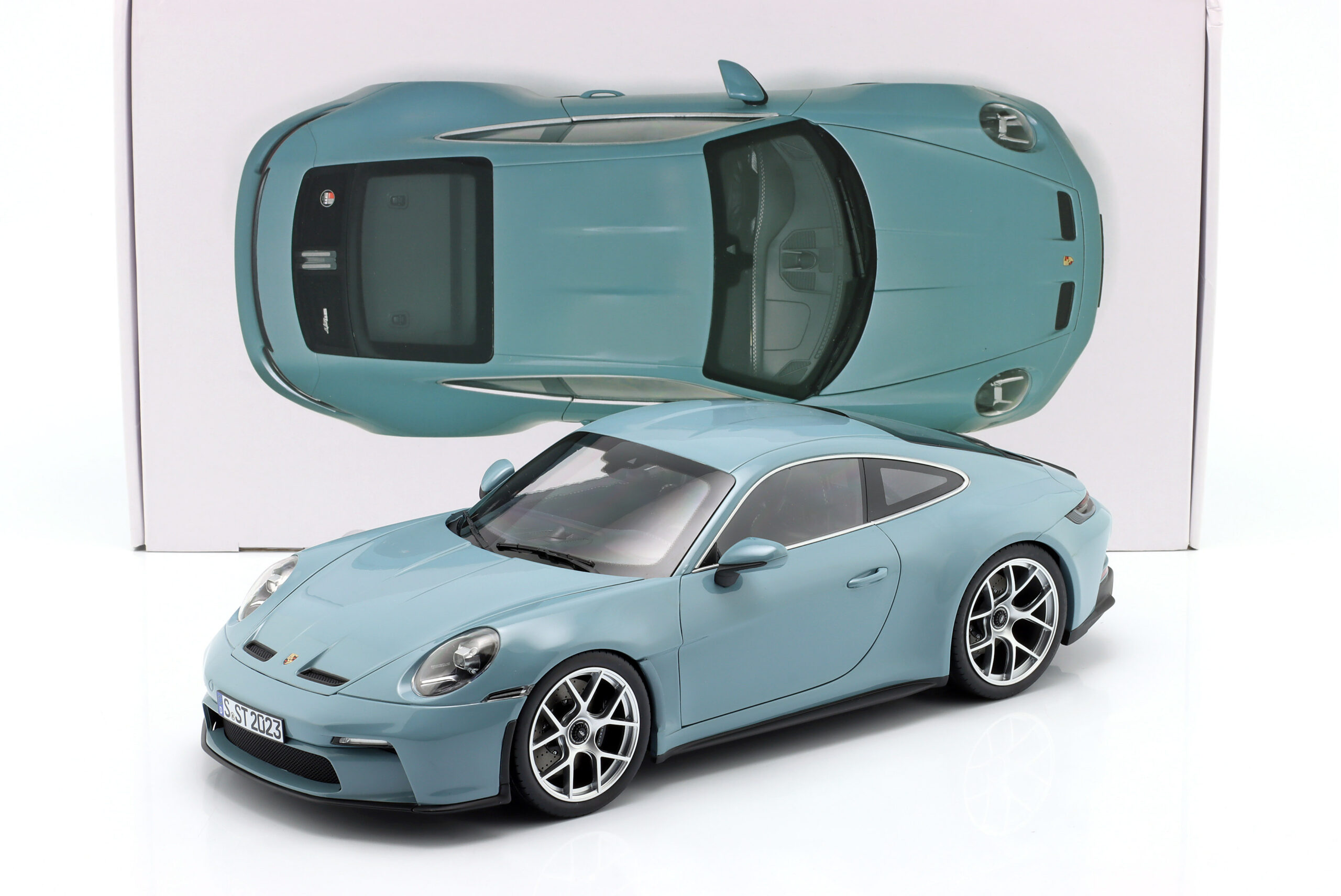 Kolekcjonerski model metalowy z elementami plastikowymi samochodu PORSCHE 911 (992) S/T z roku 2023 w kolorze Meissen blue.Model nie posiada otwieranych elementów.Edycja limitowana tylko 900 sztuk.