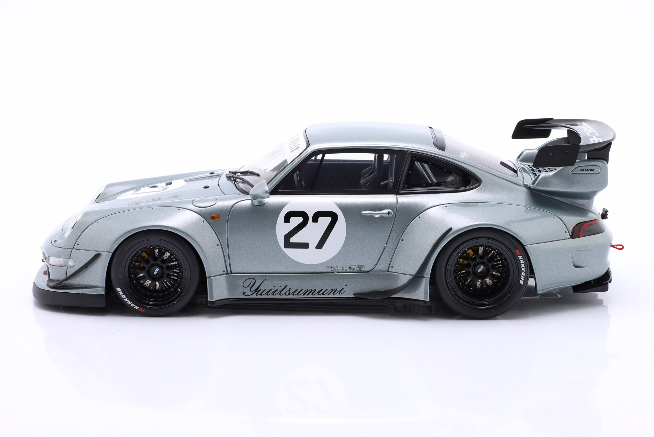 Kolekcjonerski wykonany z żywicy samochodu PORSCHE 911 (993) RWB Rauh-Welt „Yuiitsumuni” #27 z roku 2024 w kolorze Srebrnym.Model nie posiada otwieranych elementów.Zapakowany w styropianowe pudełko z kartonową obwolutą.Edycja limitowana tylko 1400 sztuk.