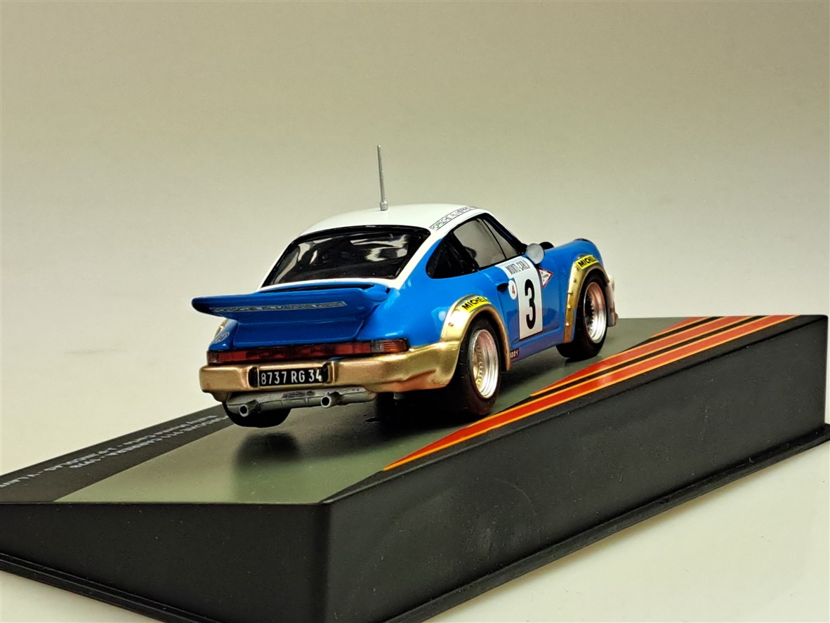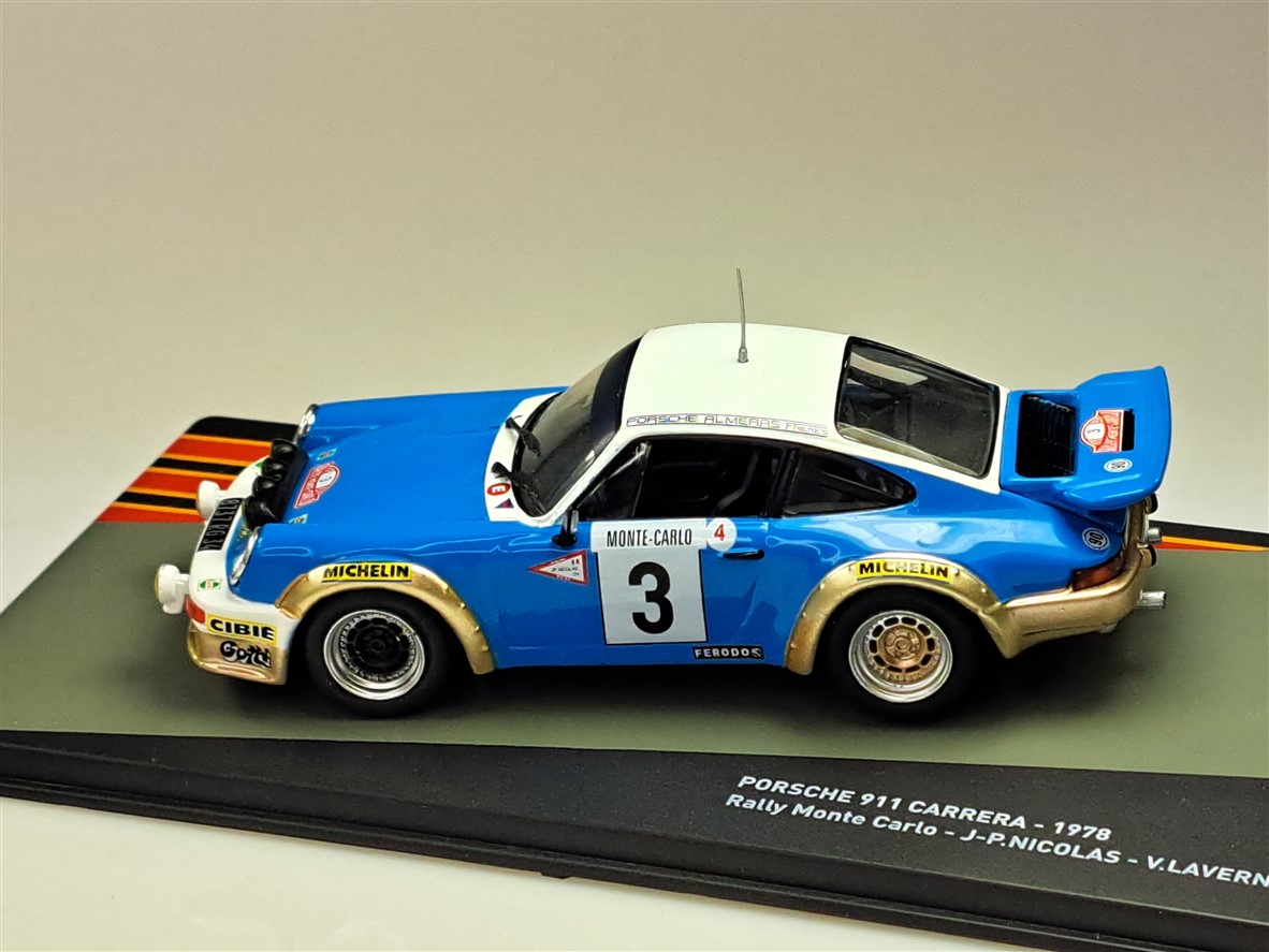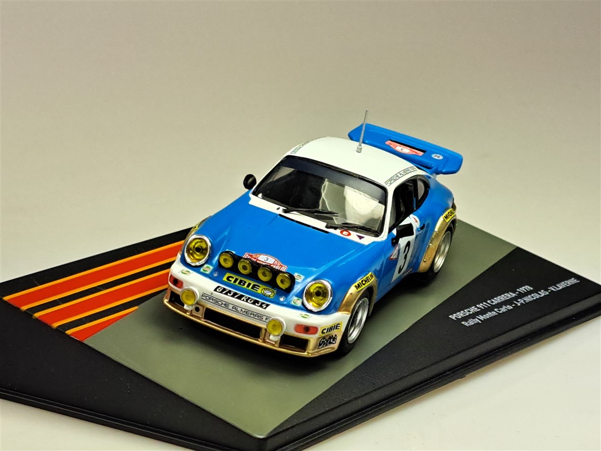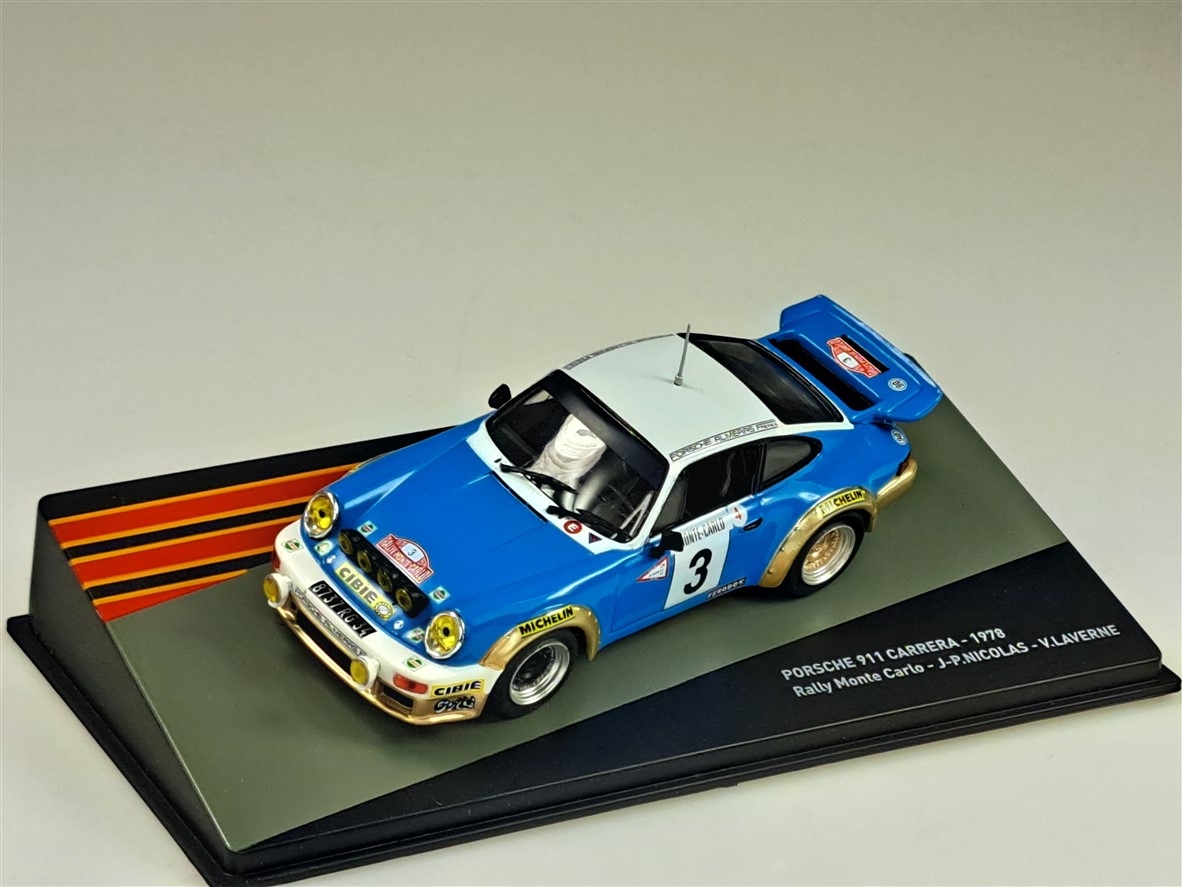 Kolekcjonerski model metalowy z elementami plastikowymi samochodu PORSCHE 911 SC #14 ,w którym załoga J-P.Nicolas/V.Laverne startowała w Rajdzie Monte Carlo w roku 1978.Model na podstawce,posiada akrylową gablotkę kolekcjonerską.
