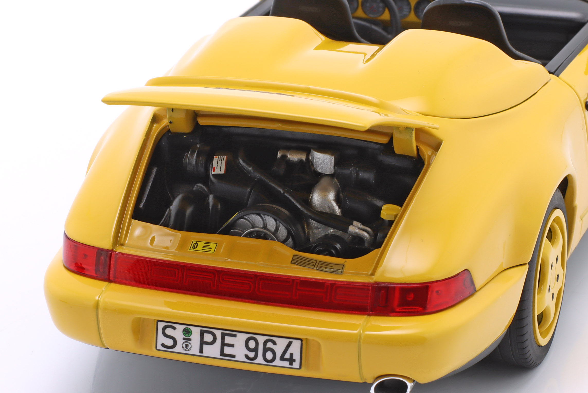 Kolekcjonerski model metalowy z elementami plastikowymi samochodu PORSCHE 911 Speedster z roku 1993 w kolorze Speed Yellow.Model posiada otwierane drzwi,pokrywę silnika oraz bagażnika.
