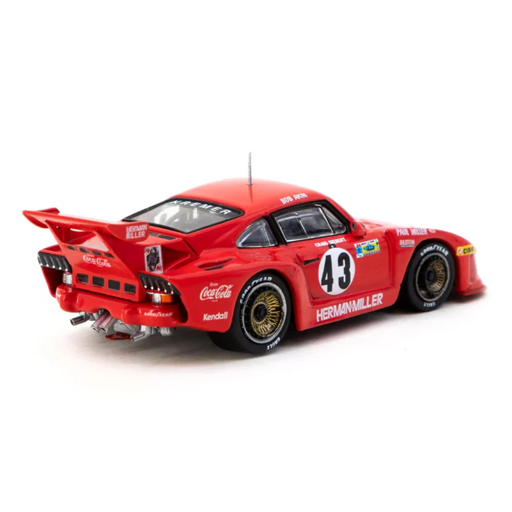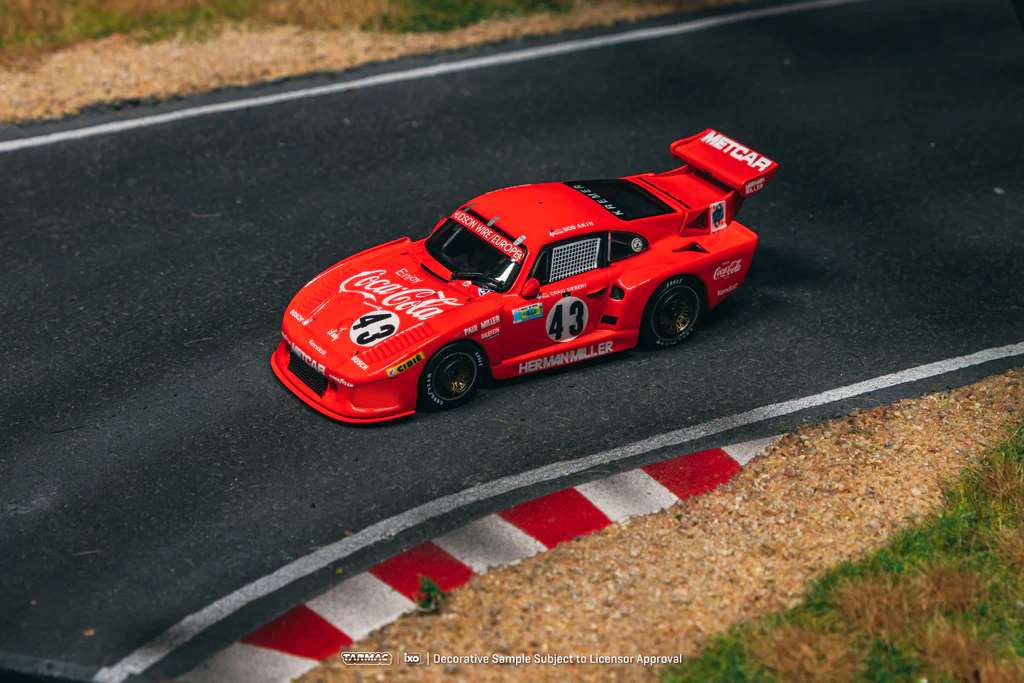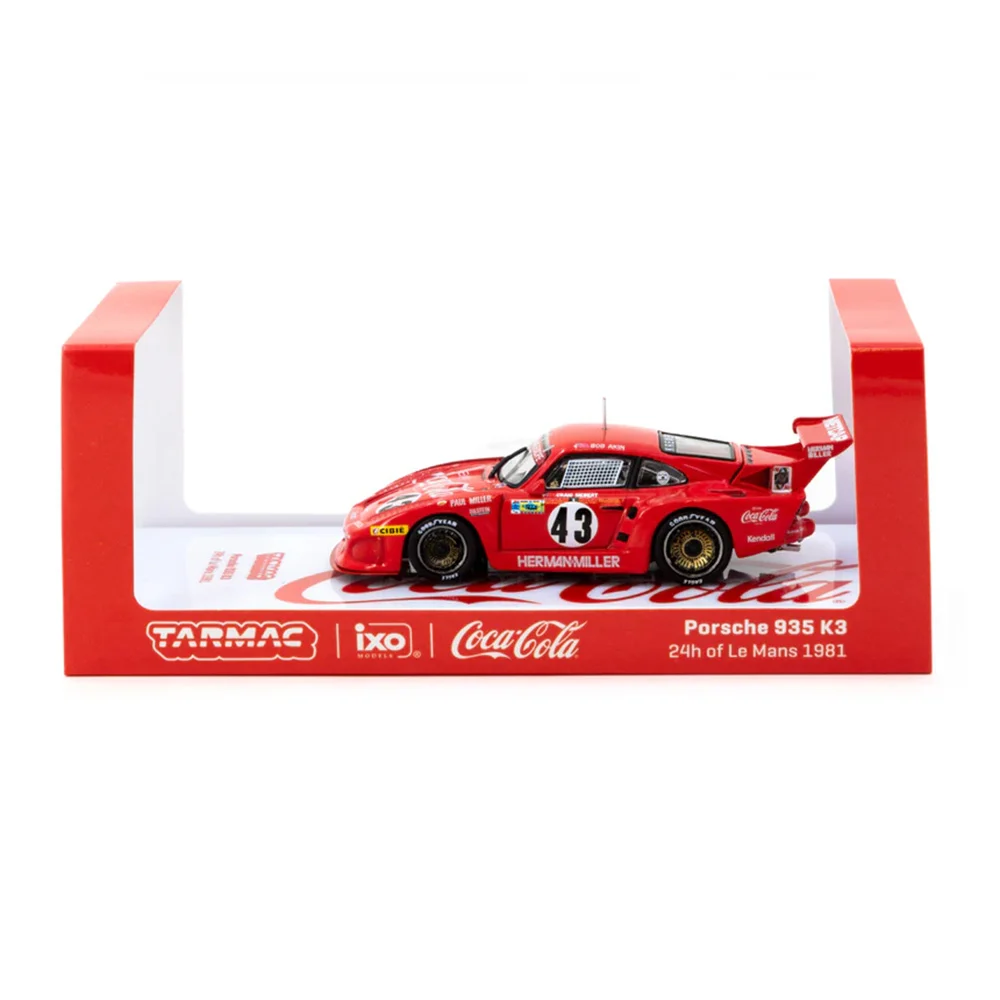 Kolekcjonerski model metalowy z elementami plastikowymi samochodu wyścigowego PORSCHE 935 K3 #43,w którym załoga Akin/Miller/Siebert startowała w wyścigu 24h na Torze Le Mans w roku 1981.Model na podstawce posiada akrylową gablotkę ekspozycyjną.