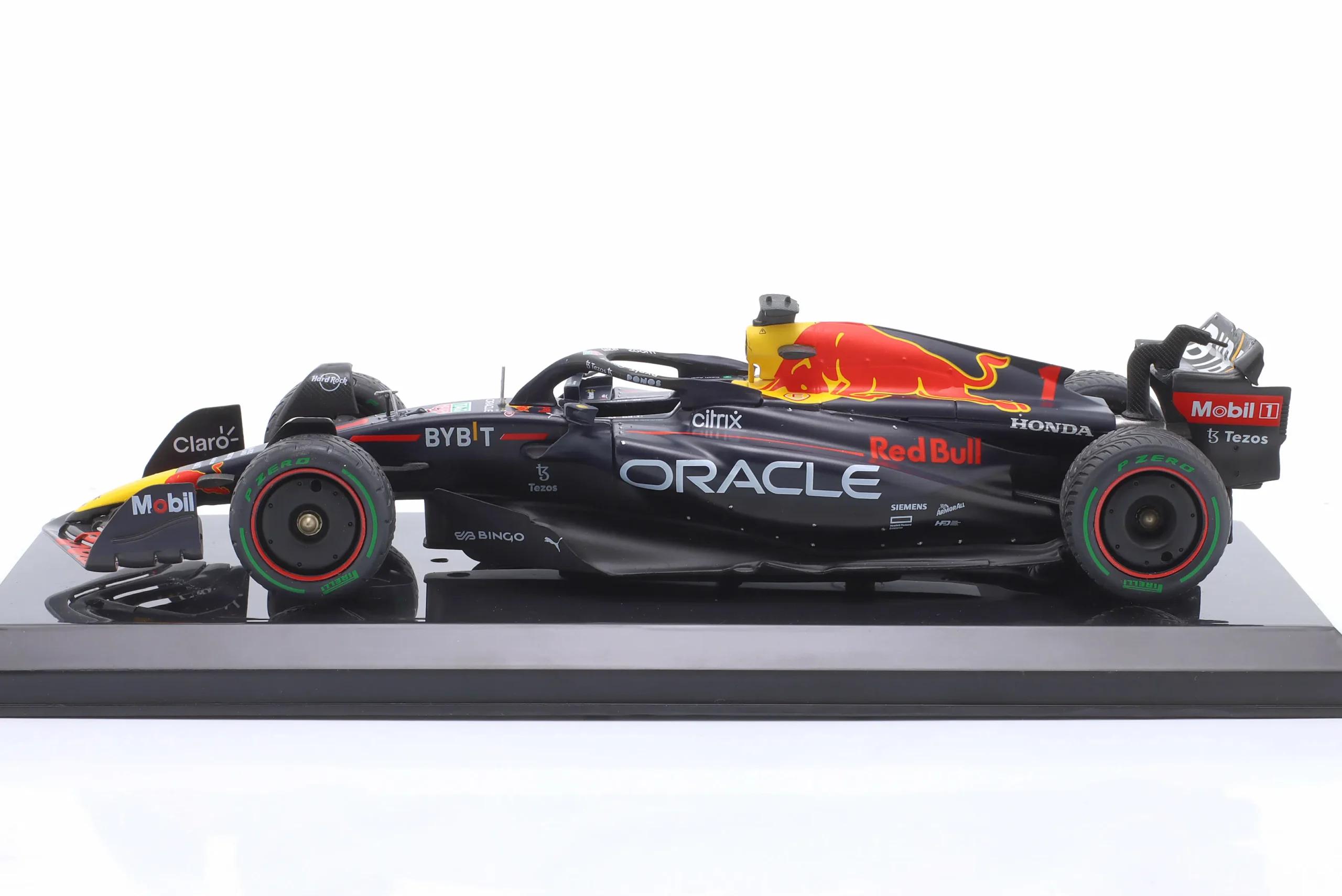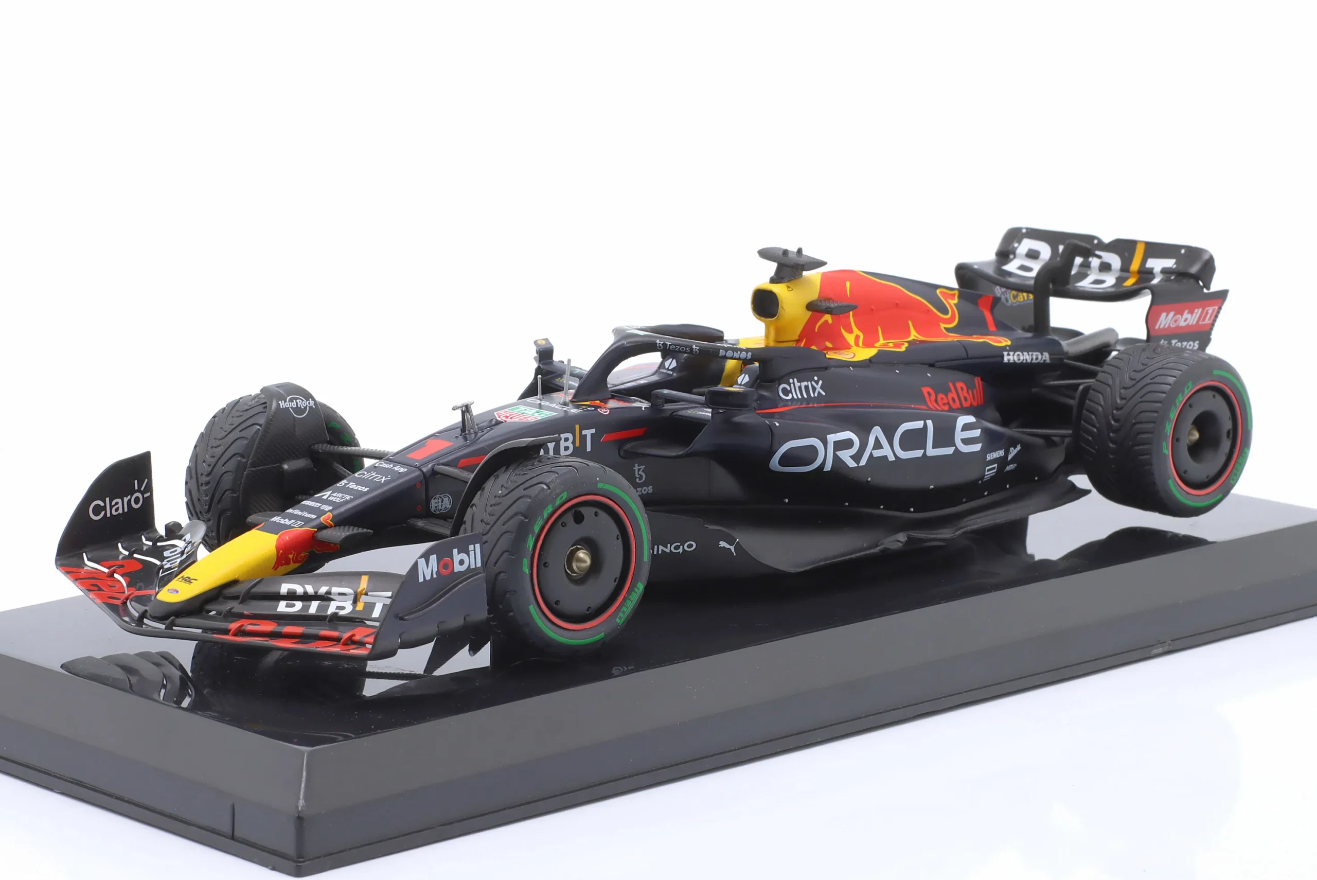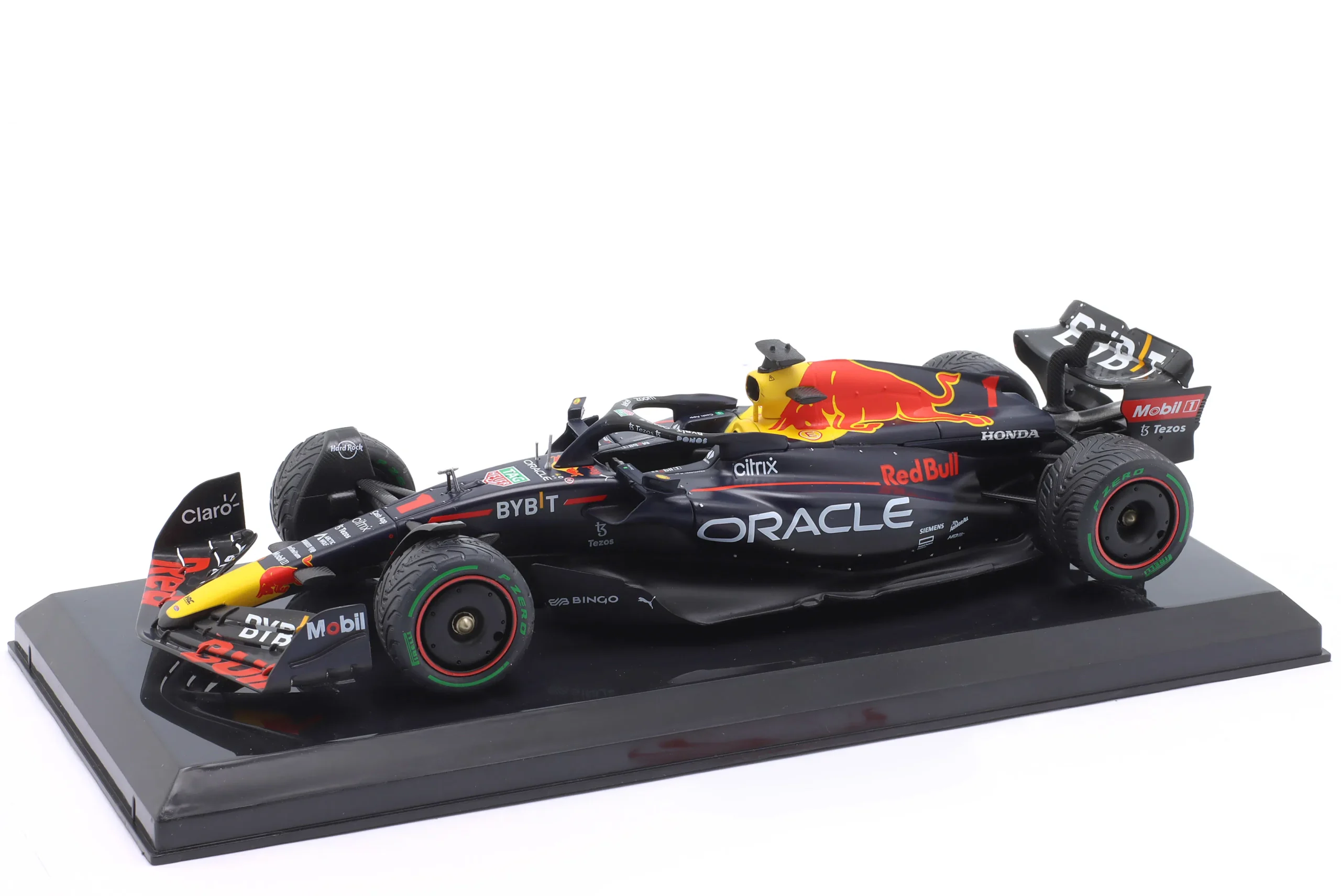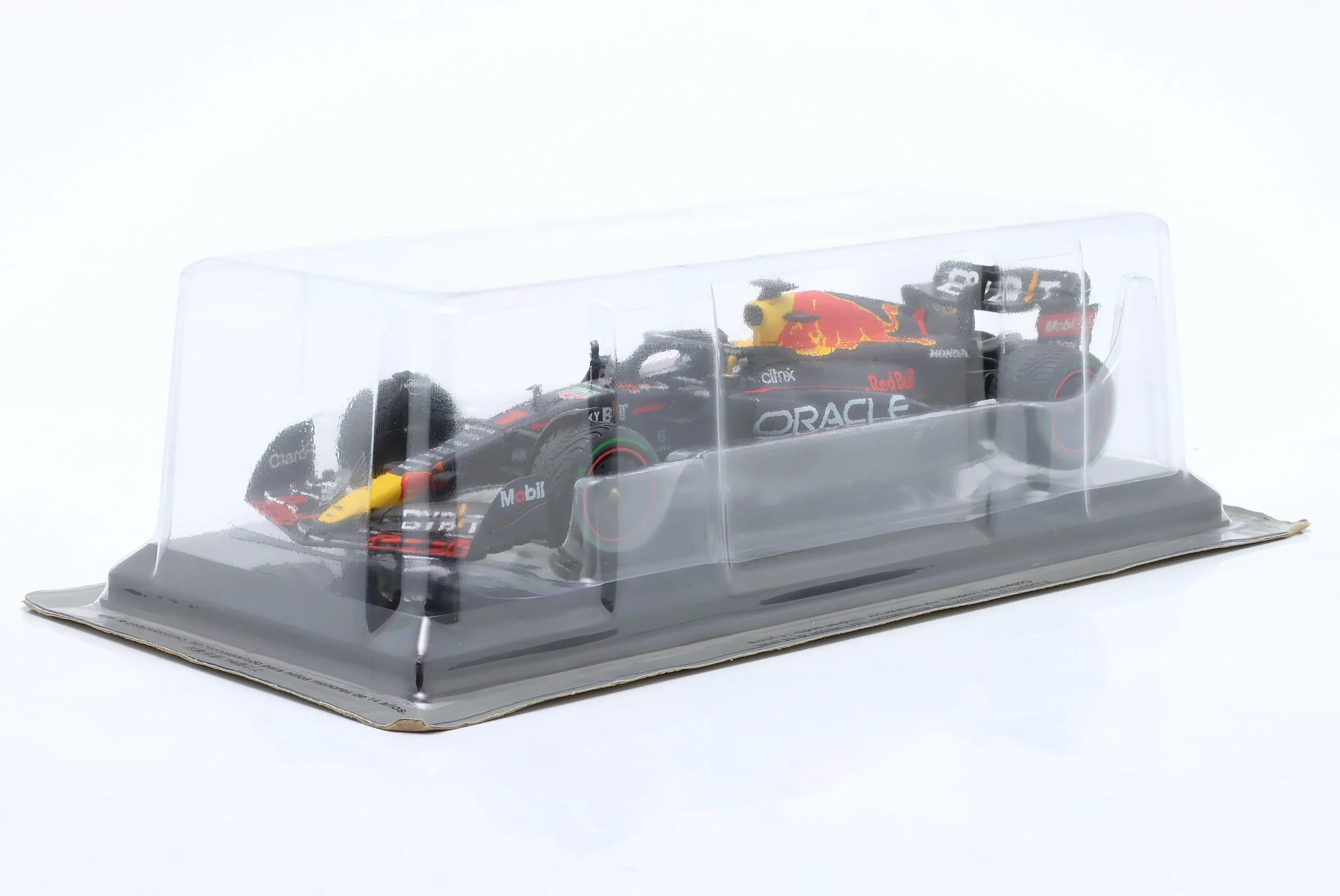 Kolekcjonerski model metalowy z elementami plastikowymi bolidu Formuły 1 RED BULL RACING RB18 #1 w którym Max Verstappen zdobył Tytuł Mistrza Świata Formuły 1 w sezonie 2022.Model na podstawce,zapakowany w blister.