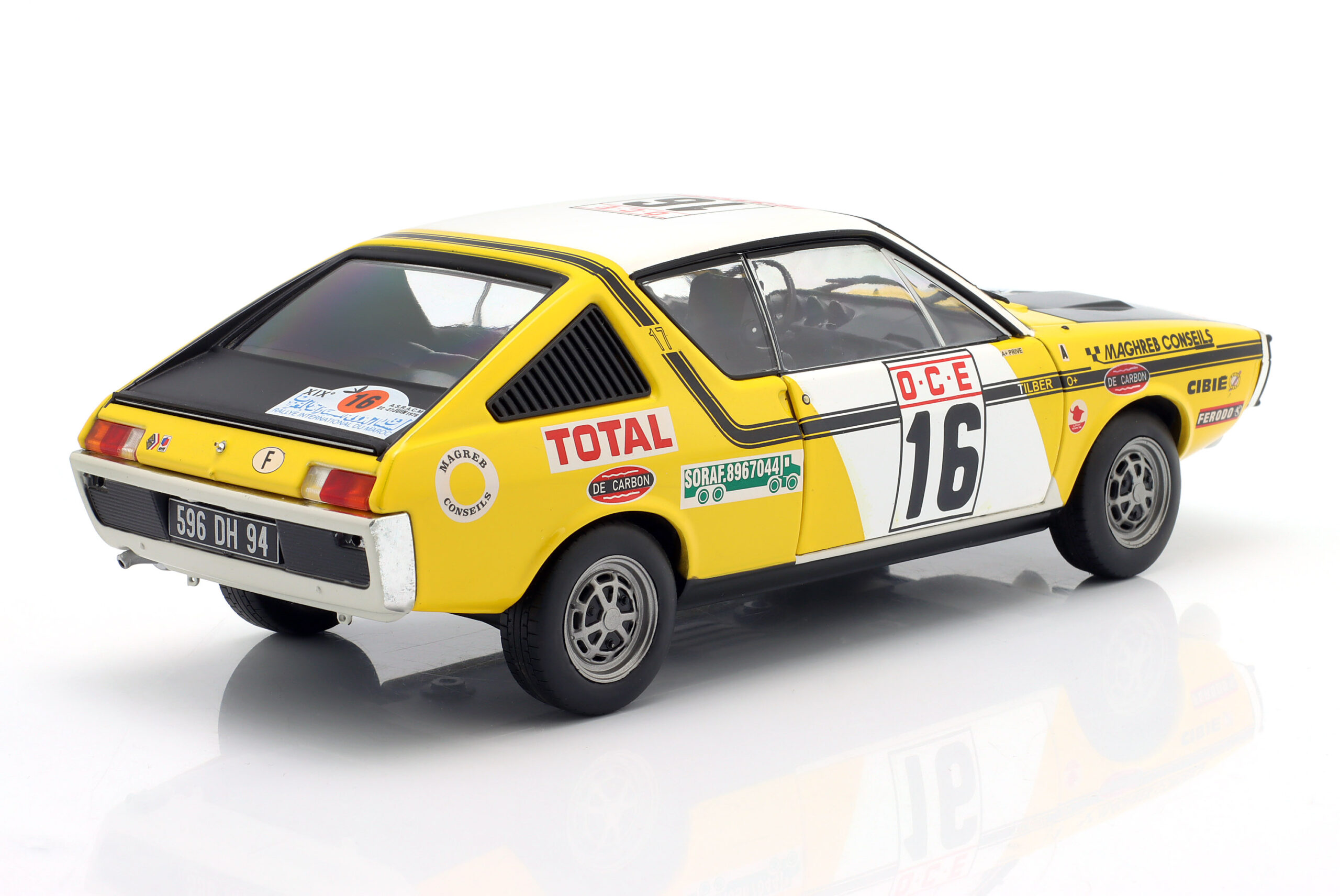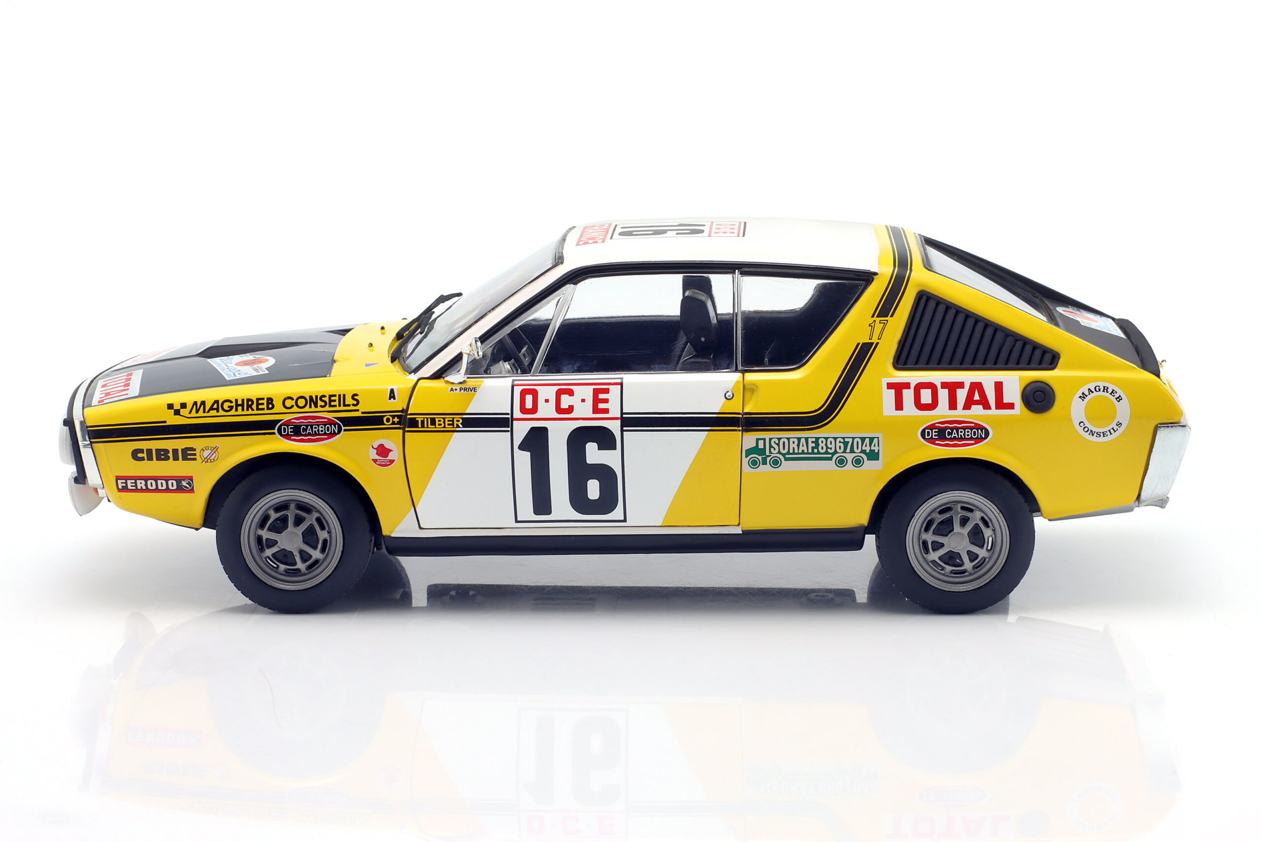 Kolekcjonerski model metalowy z elementami plastikowymi samochodu rajdowego RENAULT 17 GORDINI #16,w którym załoga J.Privé/”Tilber” zajęła 6-te miejsce w Rajdzie Maroka w roku 1976.Model posiada otwierane drzwi.