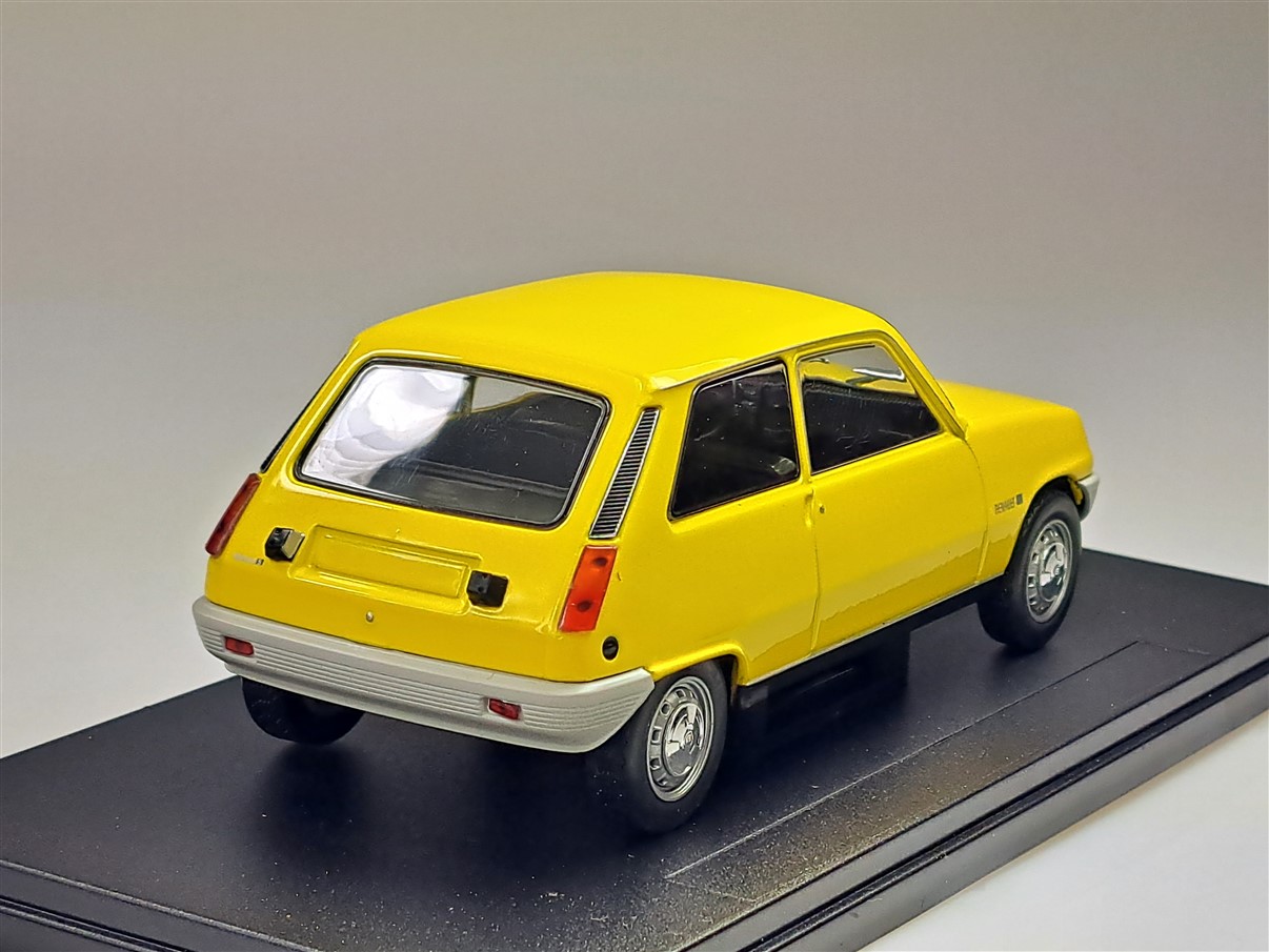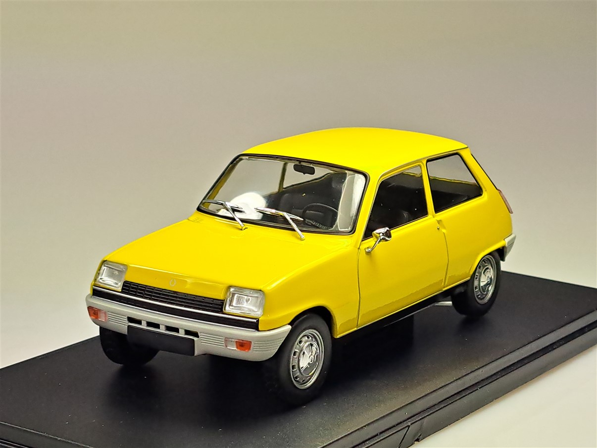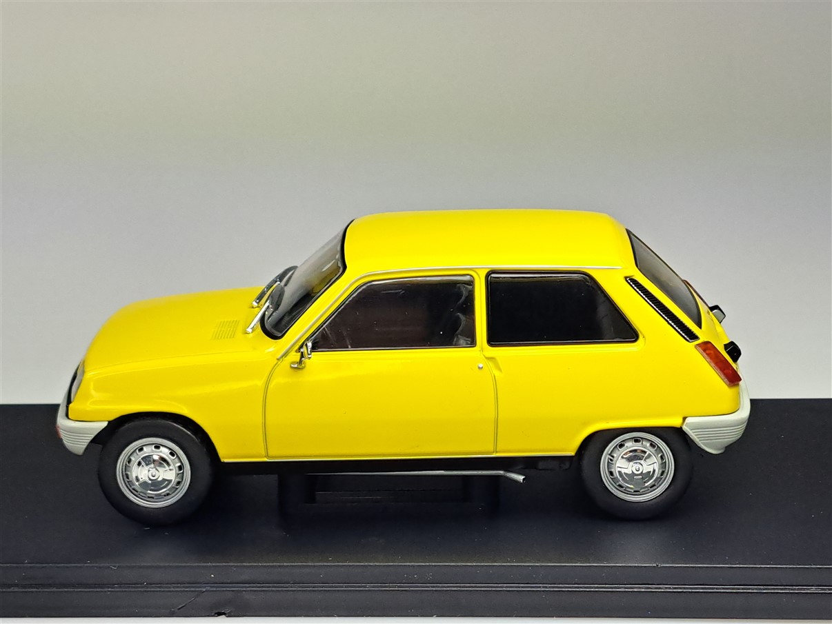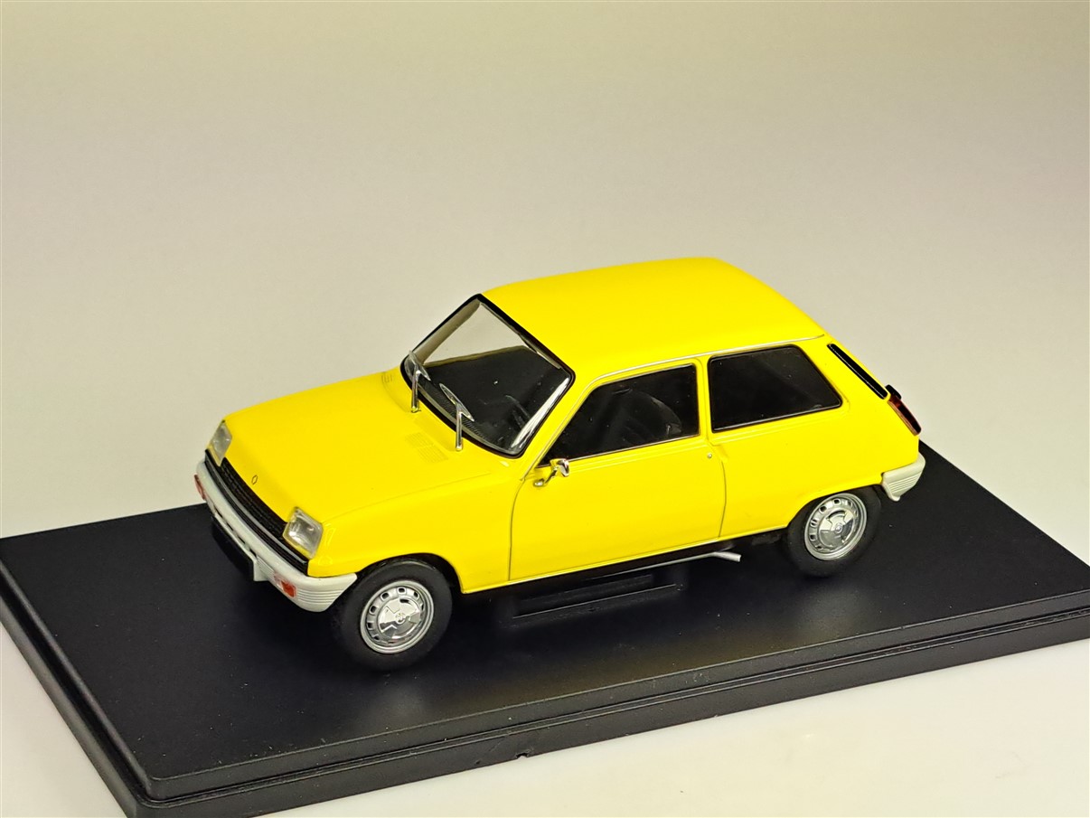 Kolekcjonerski model metalowy z elementami plastikowymi samochodu RENAULT 5 z roku 1972 w kolorze Żółtym.Model na podstawce,nie posiada otwieranych elementów,zapakowany w blister.