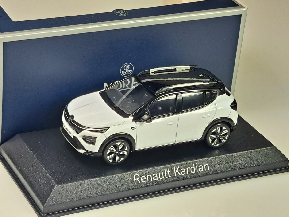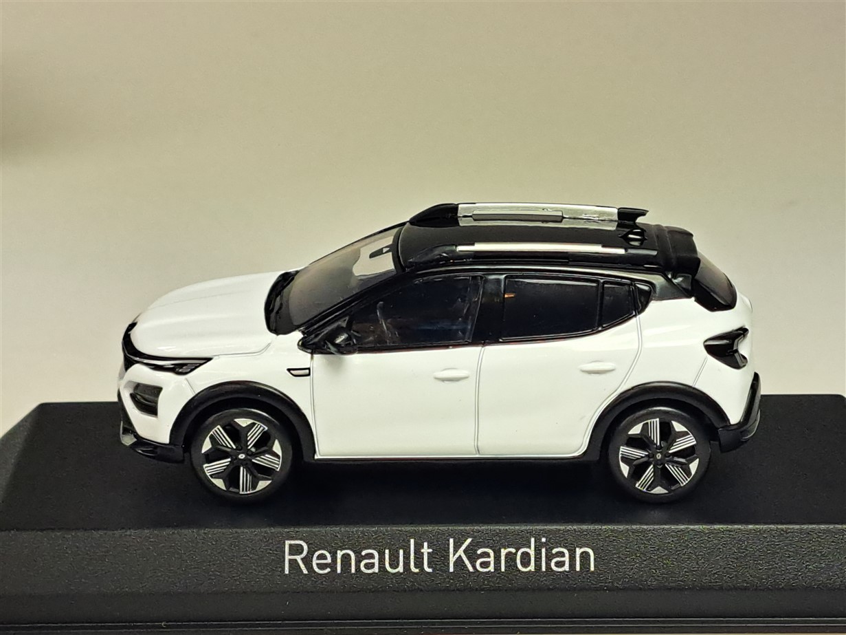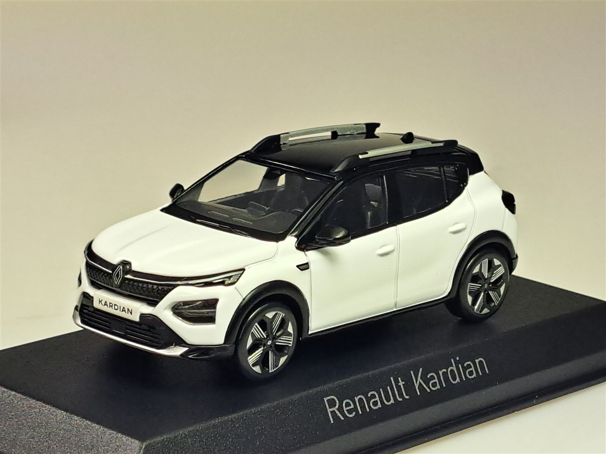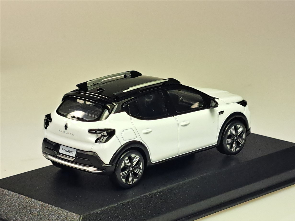 Kolekcjonerski model metalowy z elementami plastikowymi samochodu RENAULT KARDIAN z roku 2024 w kolorze Glacier White.