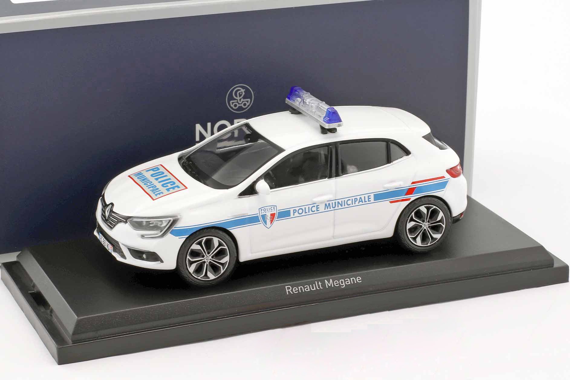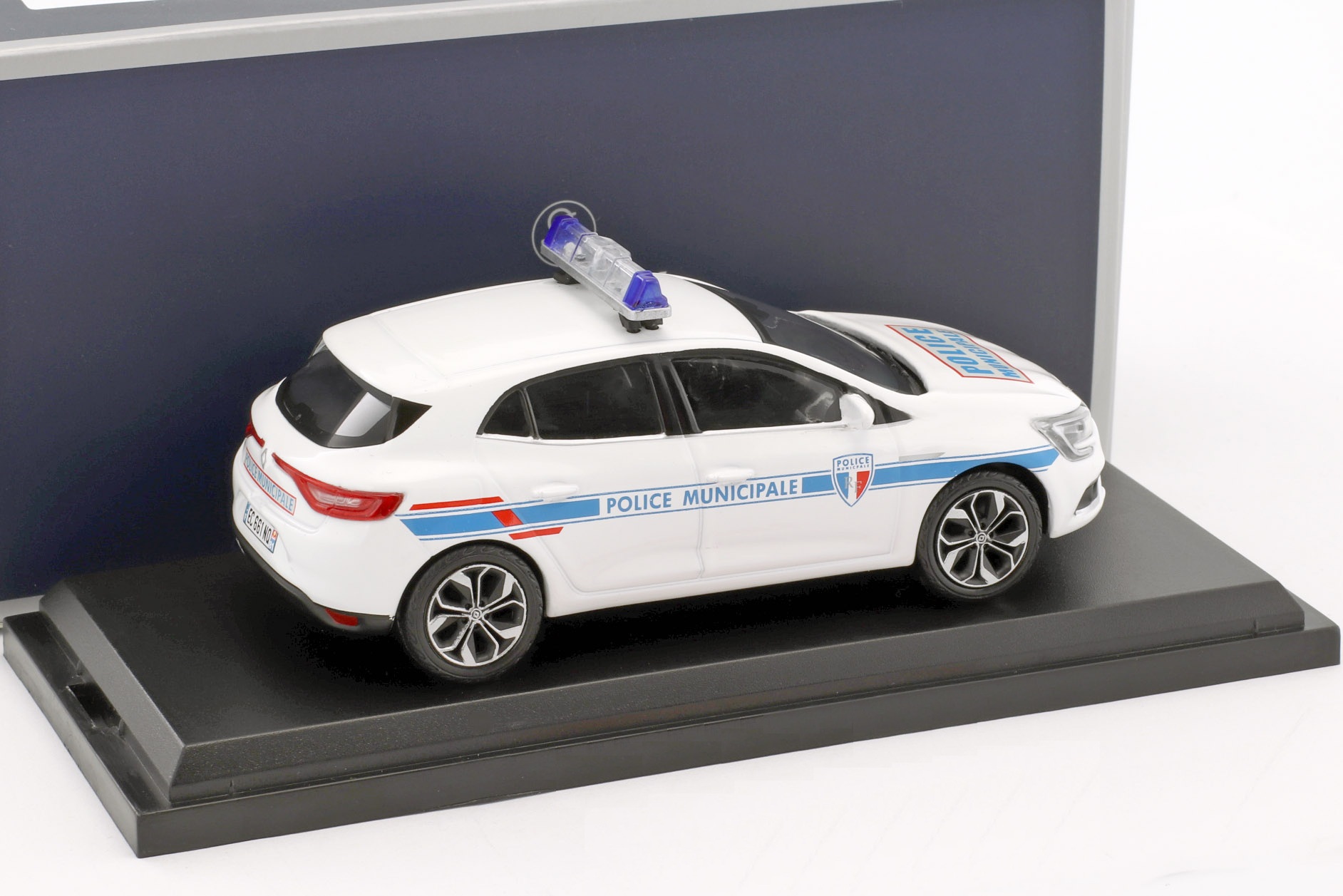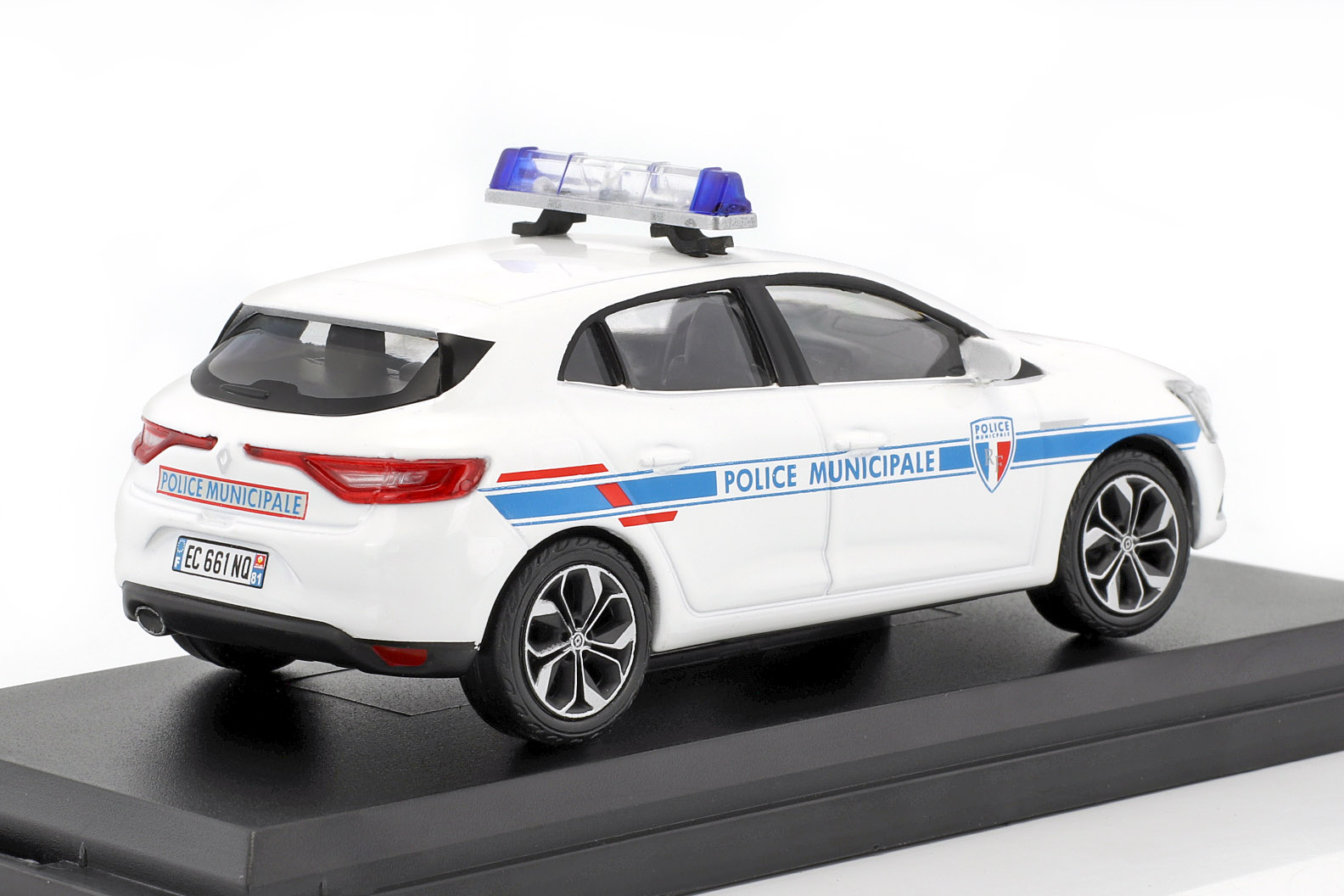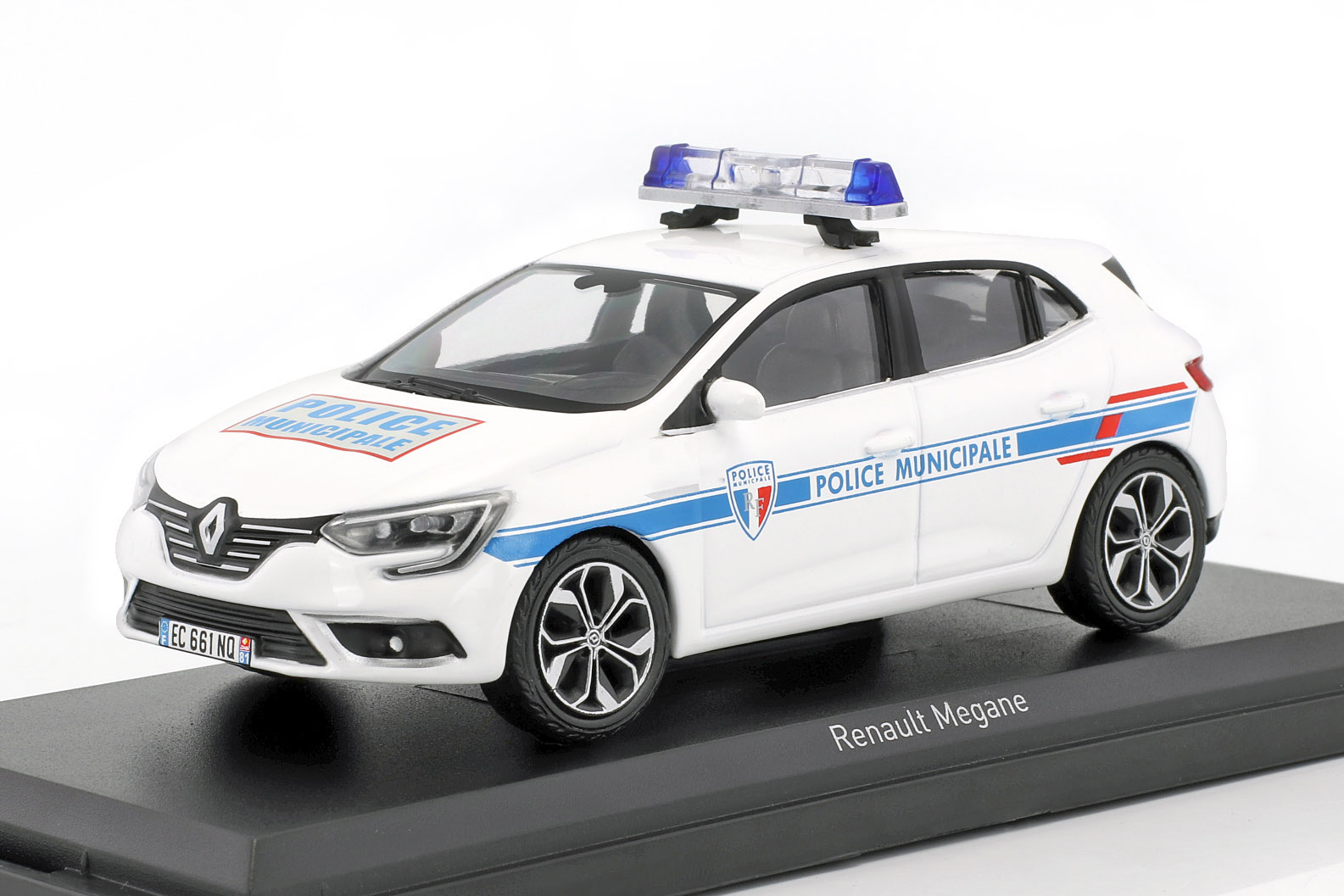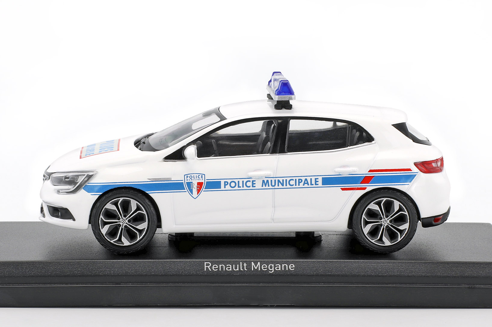 Kolekcjonerski model metalowy z elementami plastikowymi samochodu RENAULT MEGANE z roku 2016 w malowaniu francuskiej policji miejskiej.Model w skali 1:43,model na podstawce posiada akrylową gablotkę ekspozycyjną.