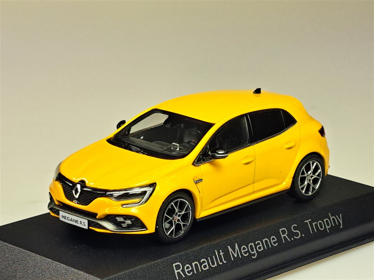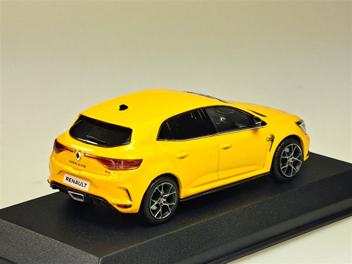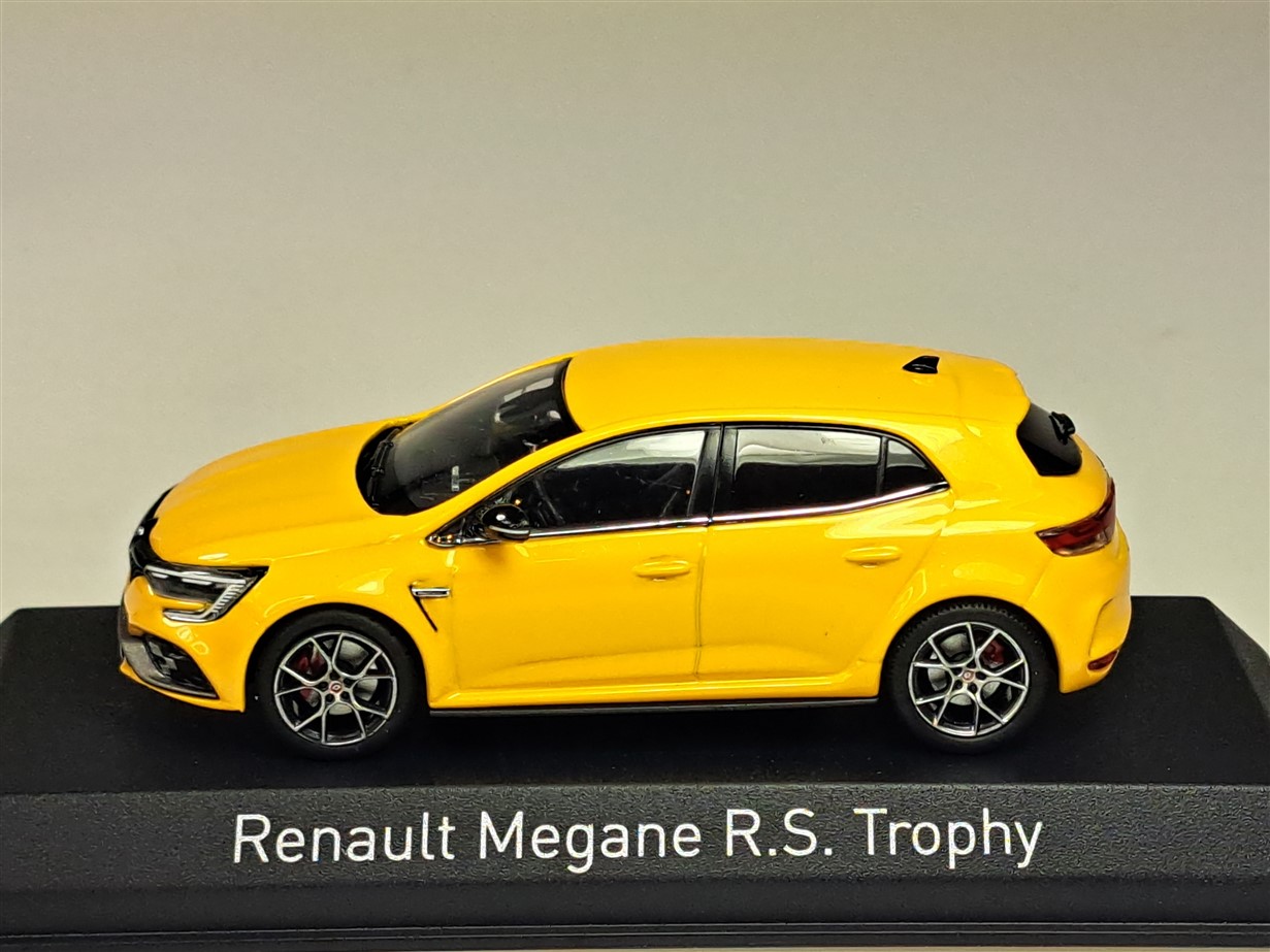 Kolekcjonerski model metalowy z elementami plastikowymi samochodu RENAULT MEGANE R.S. Trophy z roku 2020 w kolorze Sirius Yellow.