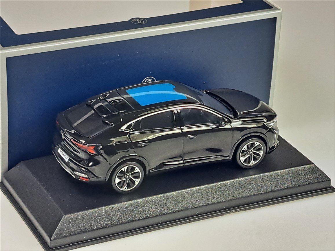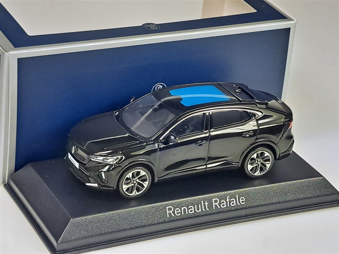 Kolekcjonerski model metalowy z elementami plastikowymi samochodu RENAULT RAFALE ESPRIT Alpine z roku 2024 w kolorze Diamond Black.