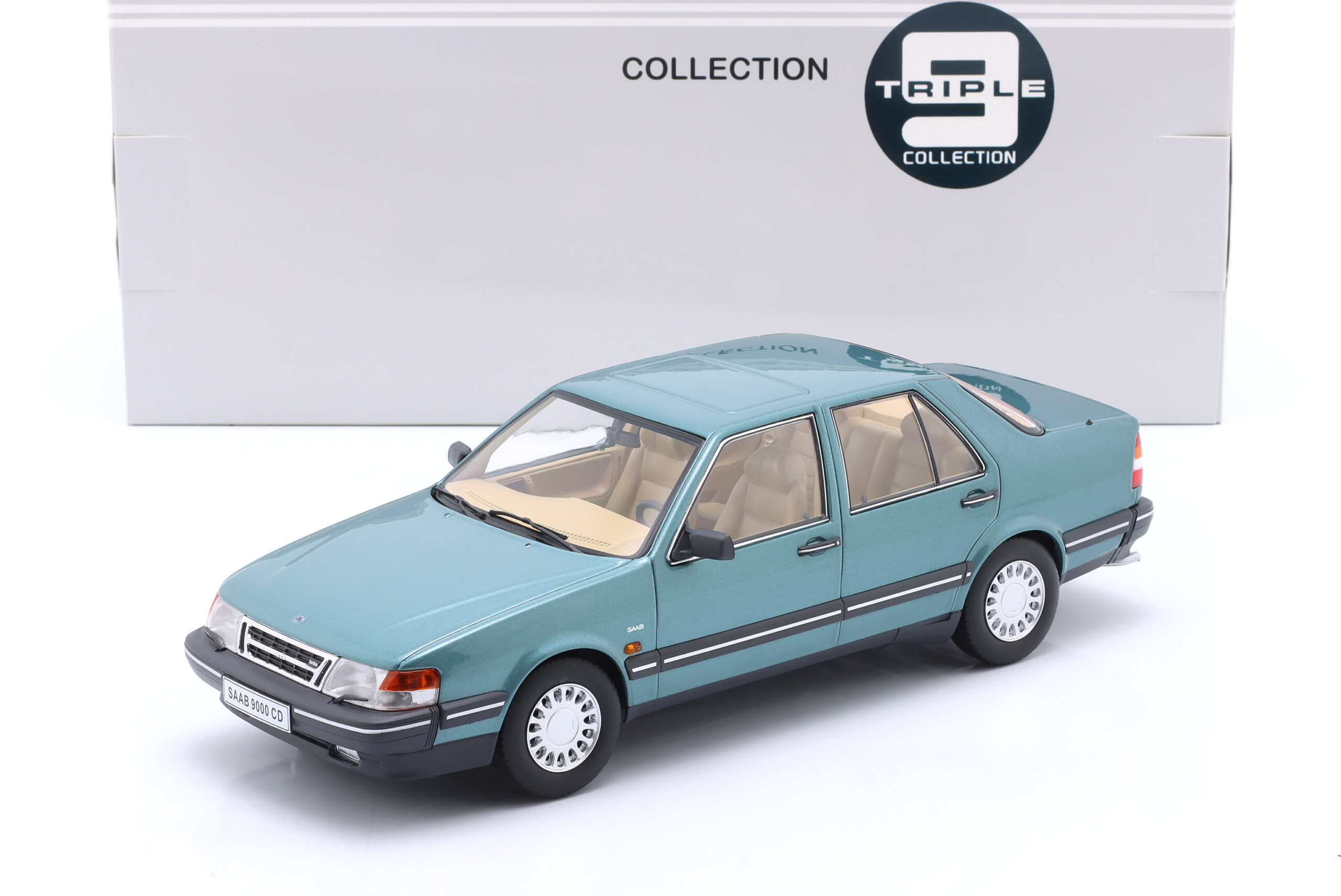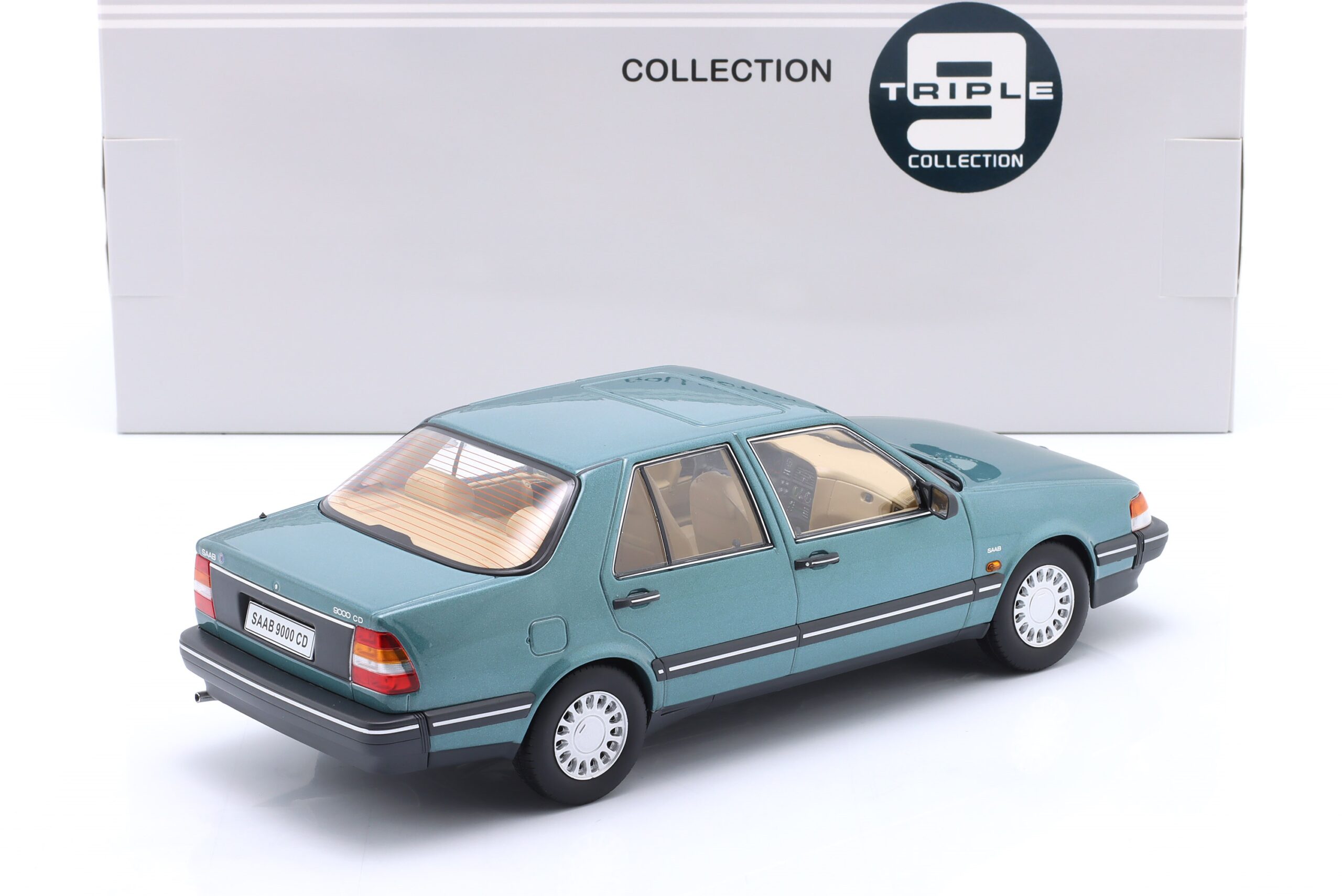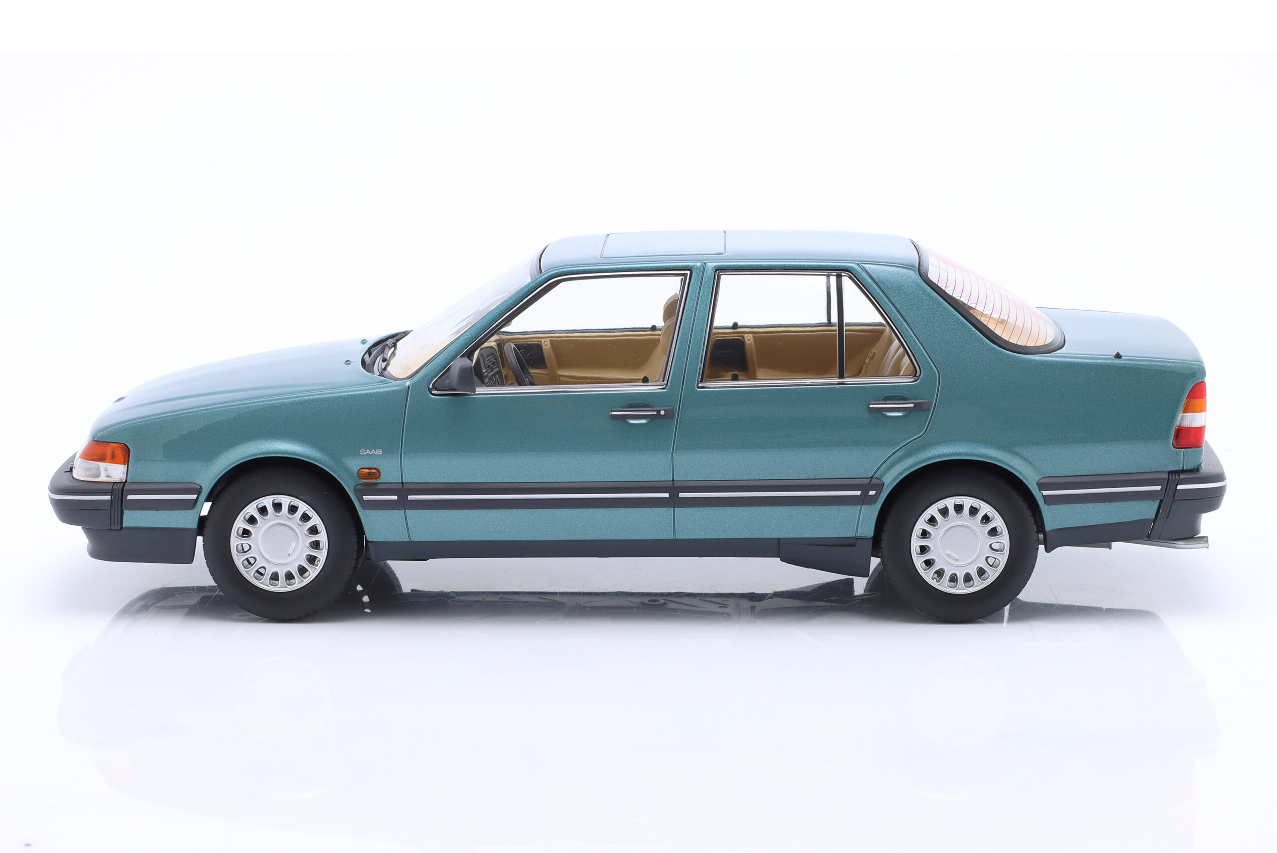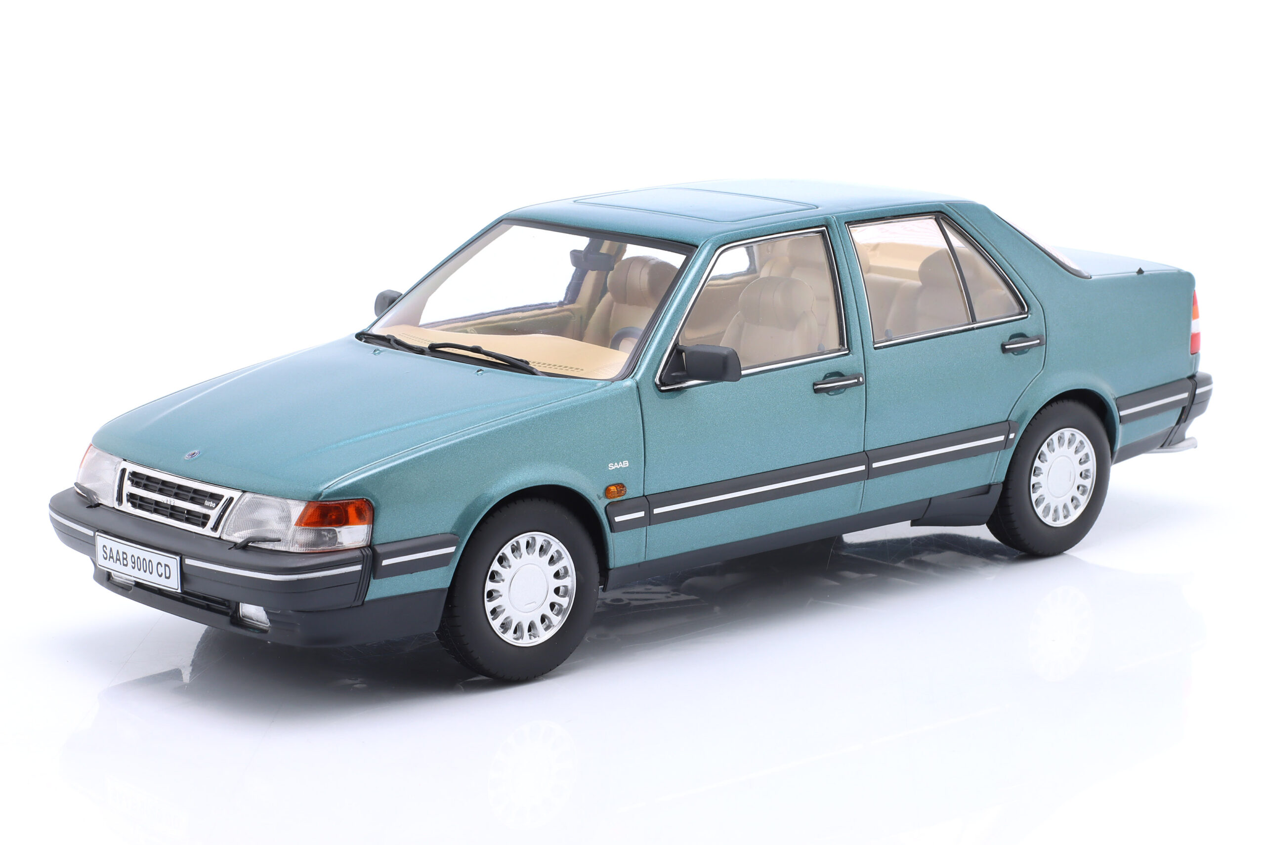 Kolekcjonerski model metalowy z elementami plastikowymi samochodu SAAB 9000 CD TURBO z roku 1990 w kolorze Jasnozielony metallic.Model nie posiada otwieranych elementów.