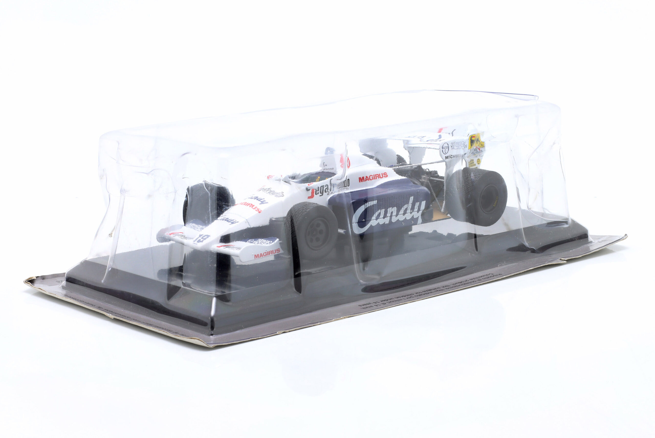 Kolekcjonerski model metalowy z elementami plastikowymi bolidu Formuły 1 TOLEMAN HART TG184 #19,w którym Ayrton Senna startował w Mistrzostwach Świata Formuły 1 w sezonie 1984.Model na podstawce,zapakowany w blister.