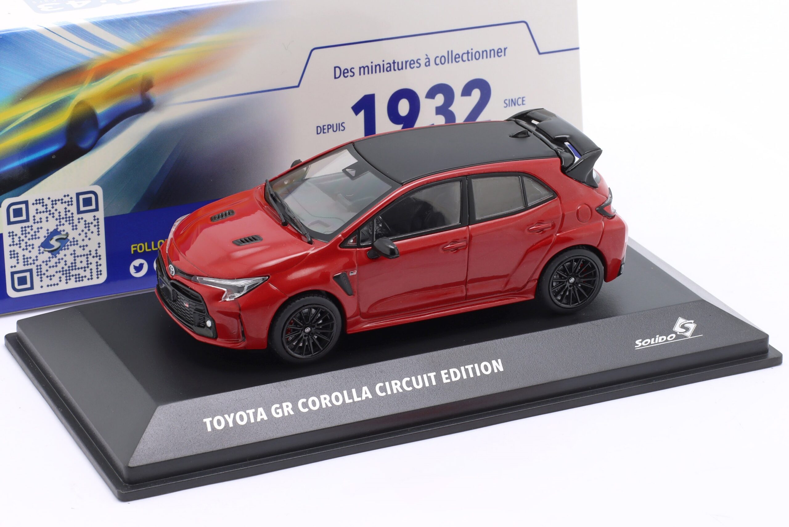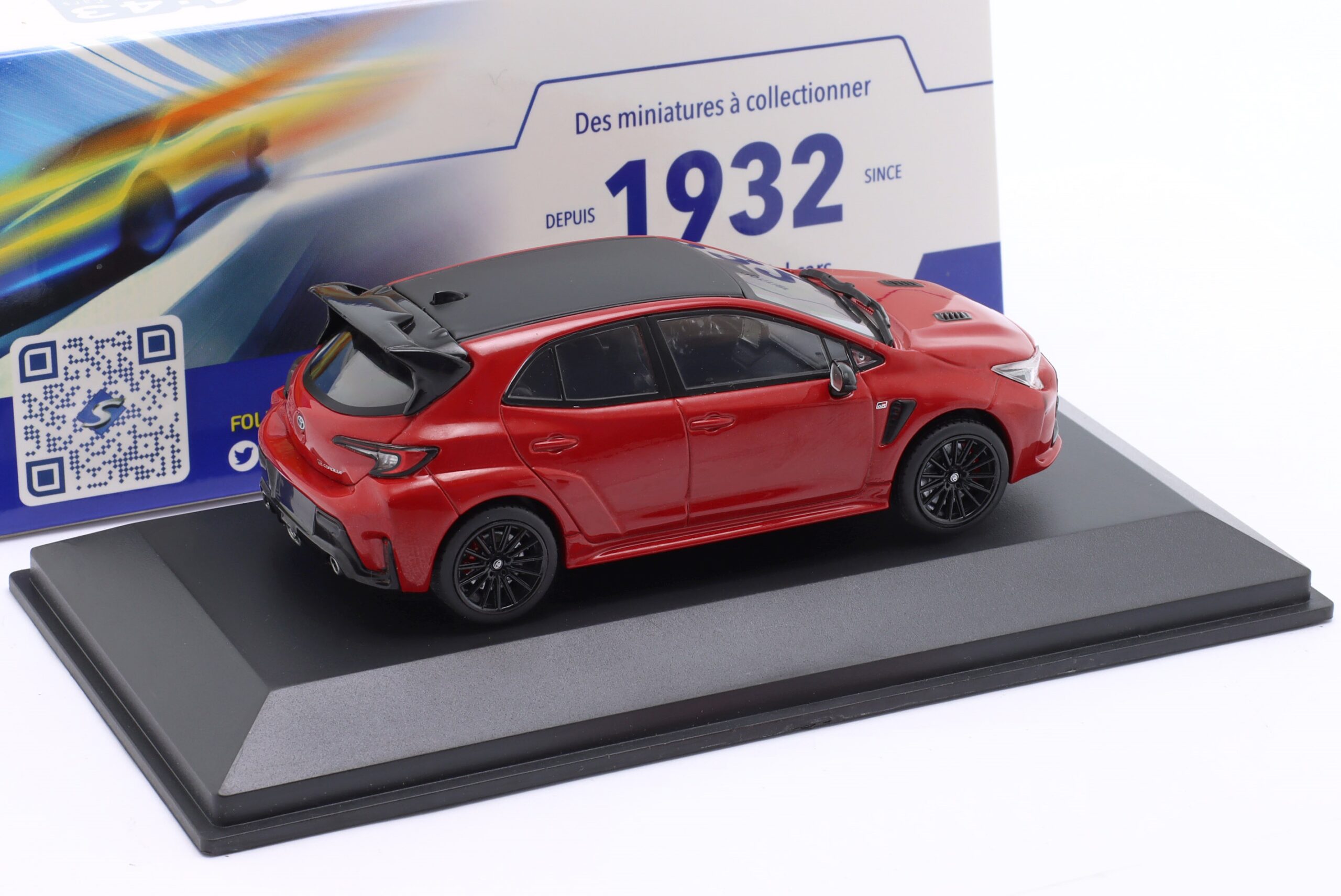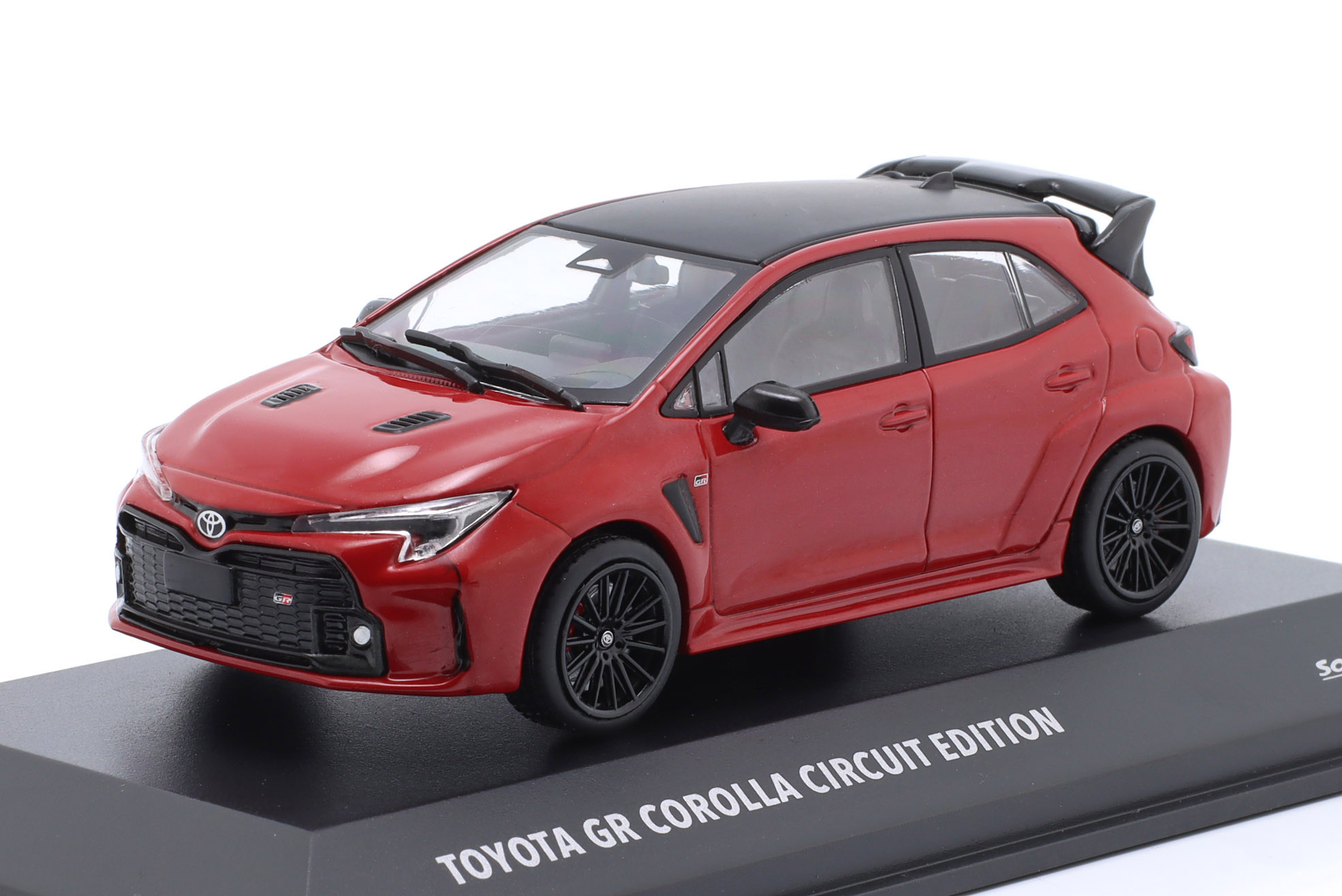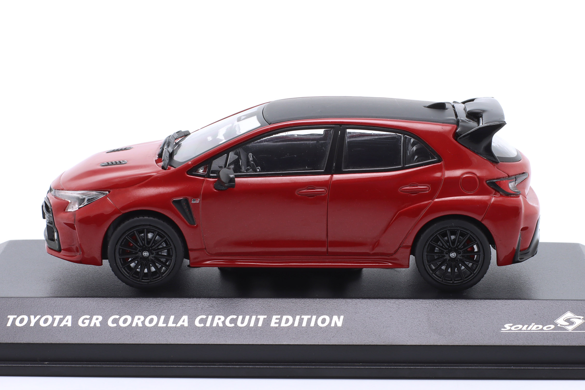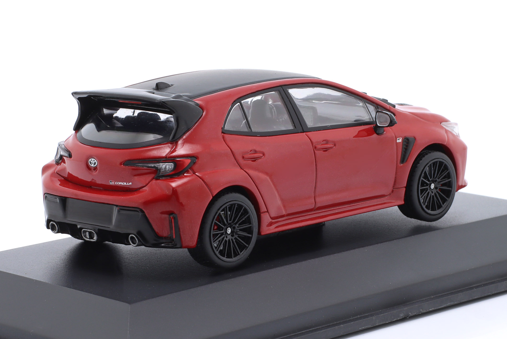 Kolekcjonerski model metalowy z elementami plastikowymi samochodu TOYOTA GR COROLLA Circuit Edition z roku 2023 w kolorze Supersonic Red.Model na podstawce,posiada akrylową gablotkę ekspozycyjną.