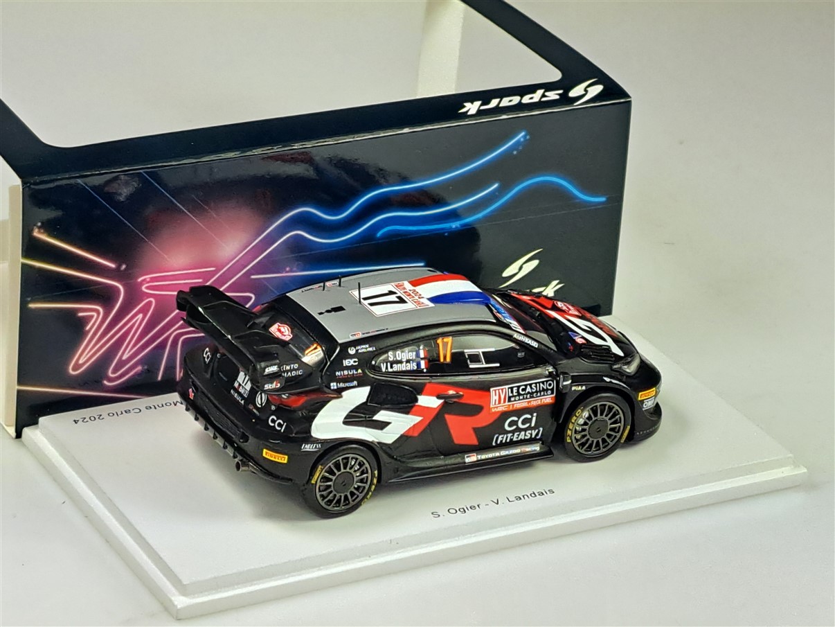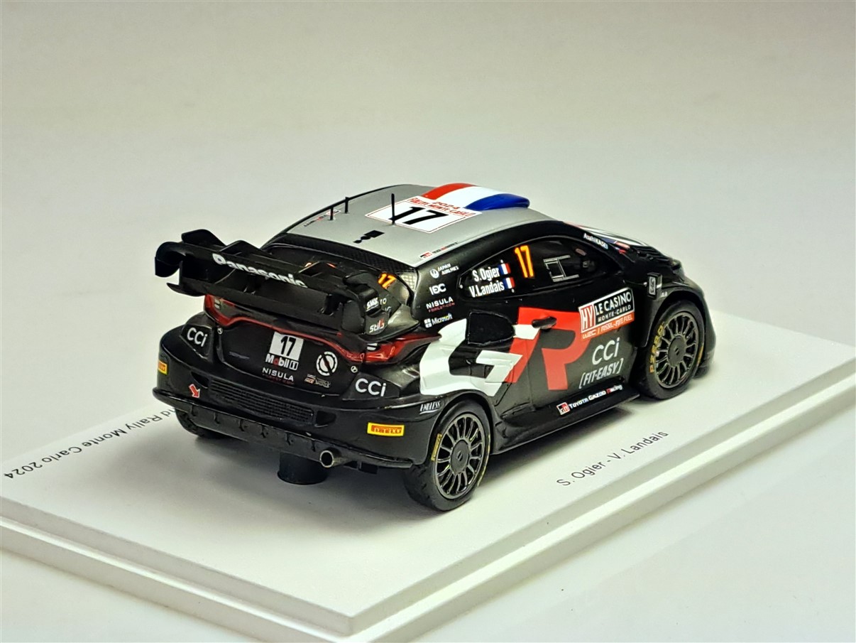 Kolekcjonerski model wykonany z żywicy samochodu rajdowego TOYOTA GR YARIS Rally 1 #17 Gazoo Racing WRT,w którym załoga S.Ogier/V.Landais zajęła 2-gie miejsce w Rajdzie Monte Carlo w roku 2024.