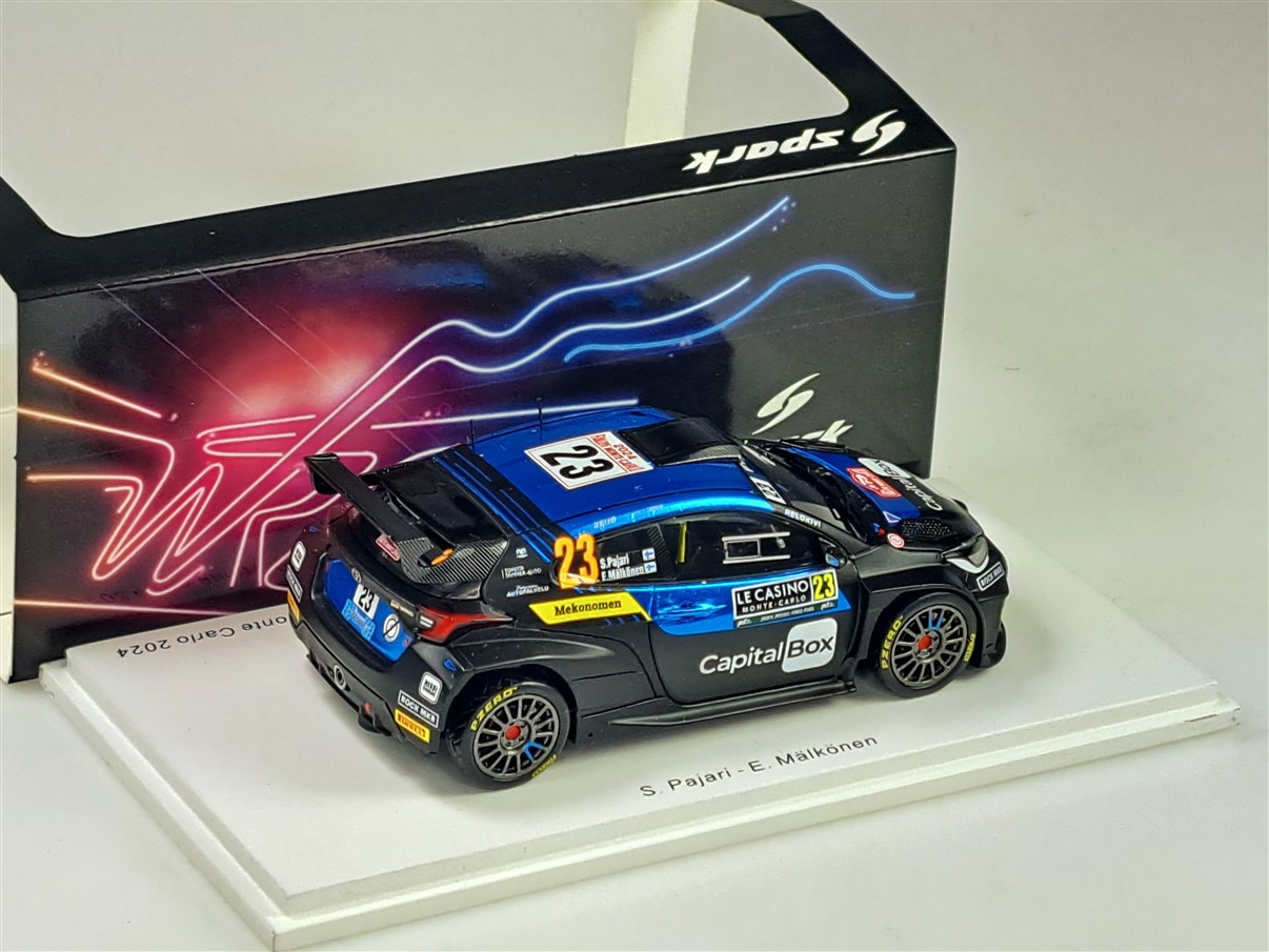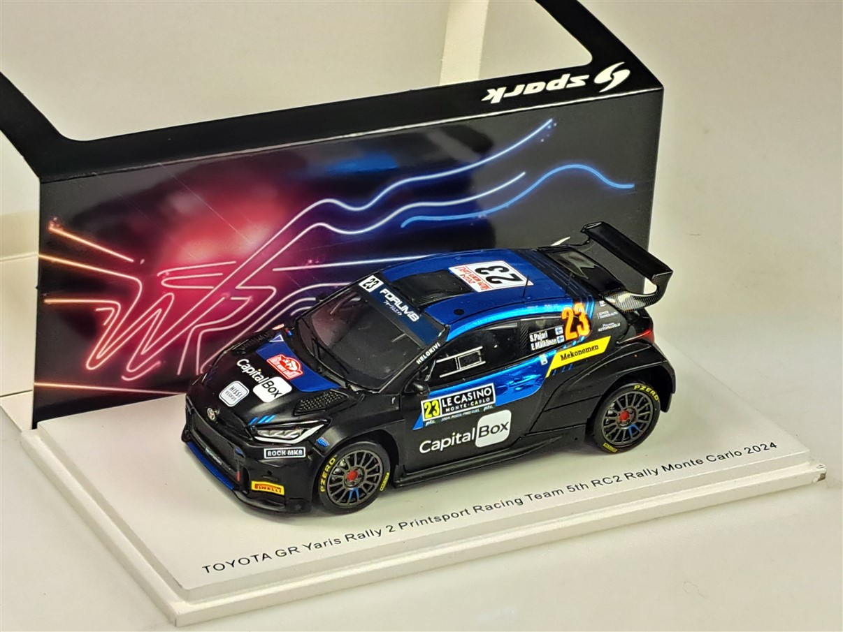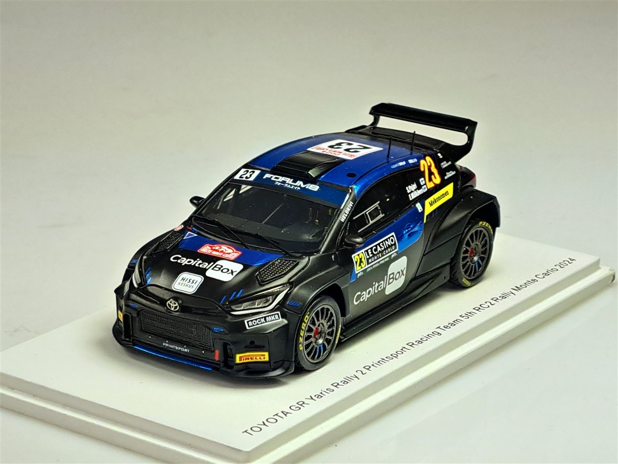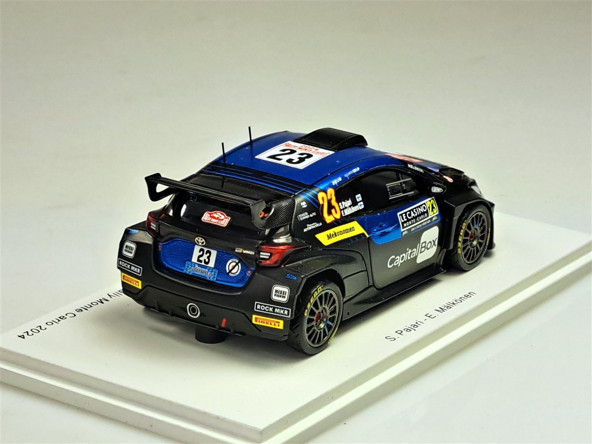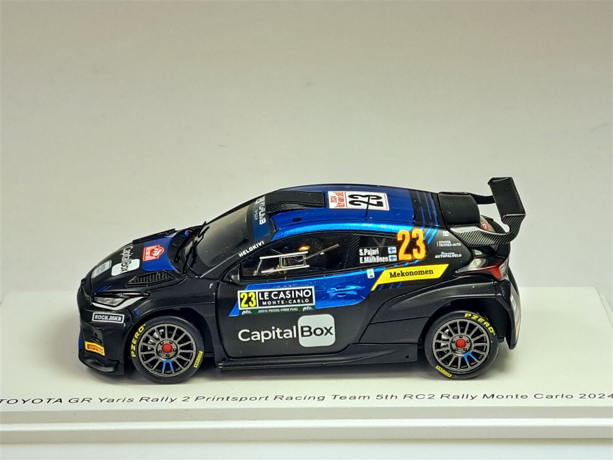 Kolekcjonerski model wykonany z żywicy samochodu rajdowego TOYOTA GR YARIS Rally 2 „Team Printsport Racing” #23,w którym załoga S.Pajari/E.Malkonen zajęła 5-te miejsce w Rajdzie Monte Carlo w roku 2024.