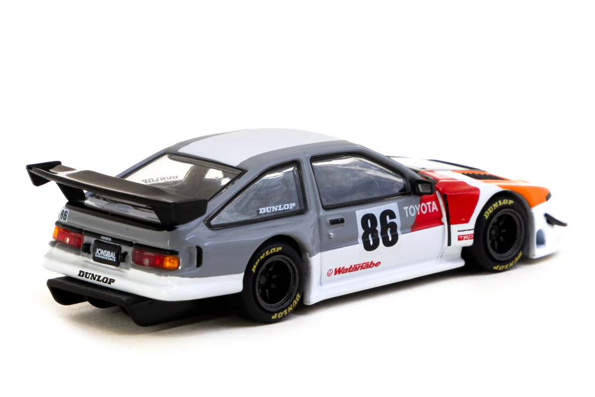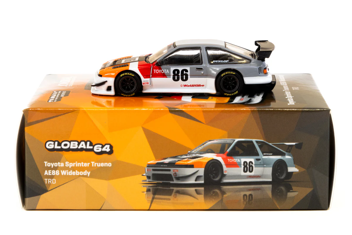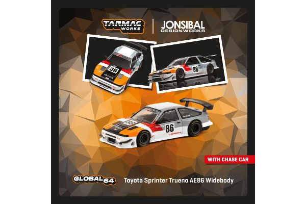 Kolekcjonerski model metalowy z elementami plastikowymi samochodu TOYOTA SPRINTER TRUENO AE86 #86 Widebody Jonsibal.Model zapakowany w kartonowe pudełko.