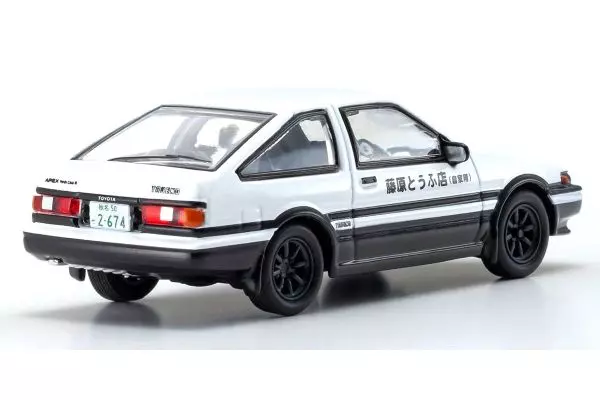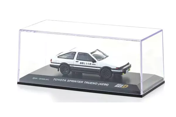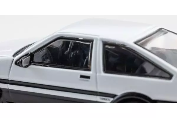 Kolekcjonerski model metalowy z elementami plastikowymi samochodu TOYOTA SPRINTER TRUENO (AE86) w kolorze białym pochodzącego z japońskiej Mangi INITIAL D opowiadającej historię młodego kierowcy Takumiego Fujiwary,który staje się legendą górskich wyścigów ulicznych.Model na podstawce posiada akrylową gablotkę ekspozycyjną dodatkowo zapaowany w blister.