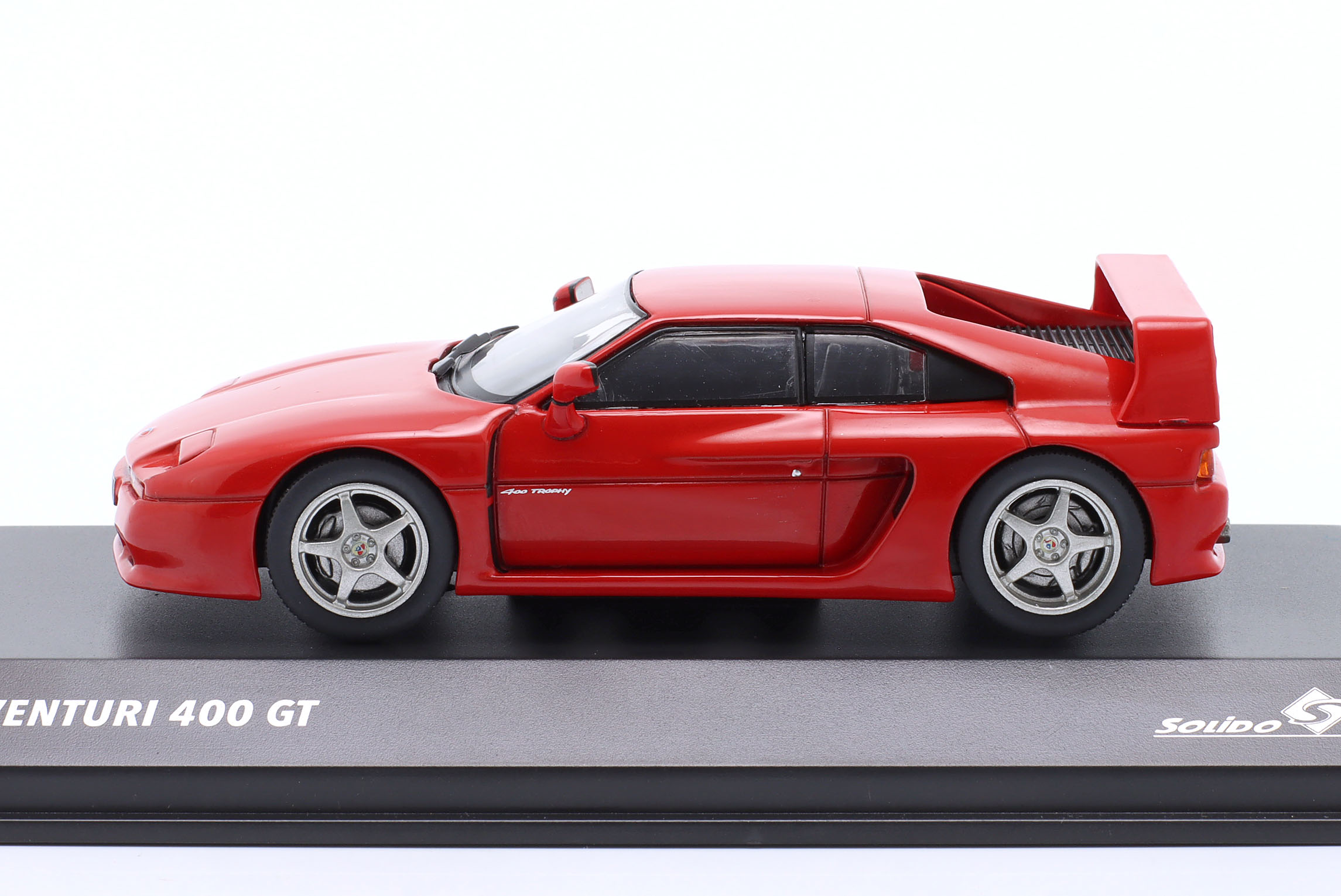 Kolekcjonerski model metalowy z elementami plastikowymi samochodu VENTURI 400 GT produkowanego przez francuską markę Venturi w latach 1994-1997 w kolorze Czerwonym.Model posiada podstawkę oraz gablotkę ekspozycyjną.