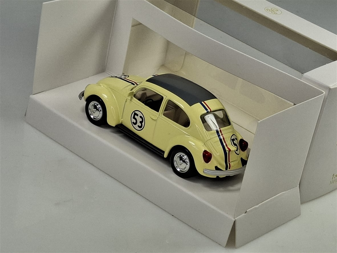 Kolekcjonerski model metalowy z elementami plastikowymi samochodu VOLKSWAGEN BEETLE # 53 Herbie w kolorze Kremowym.Model z serii JET – CAR.