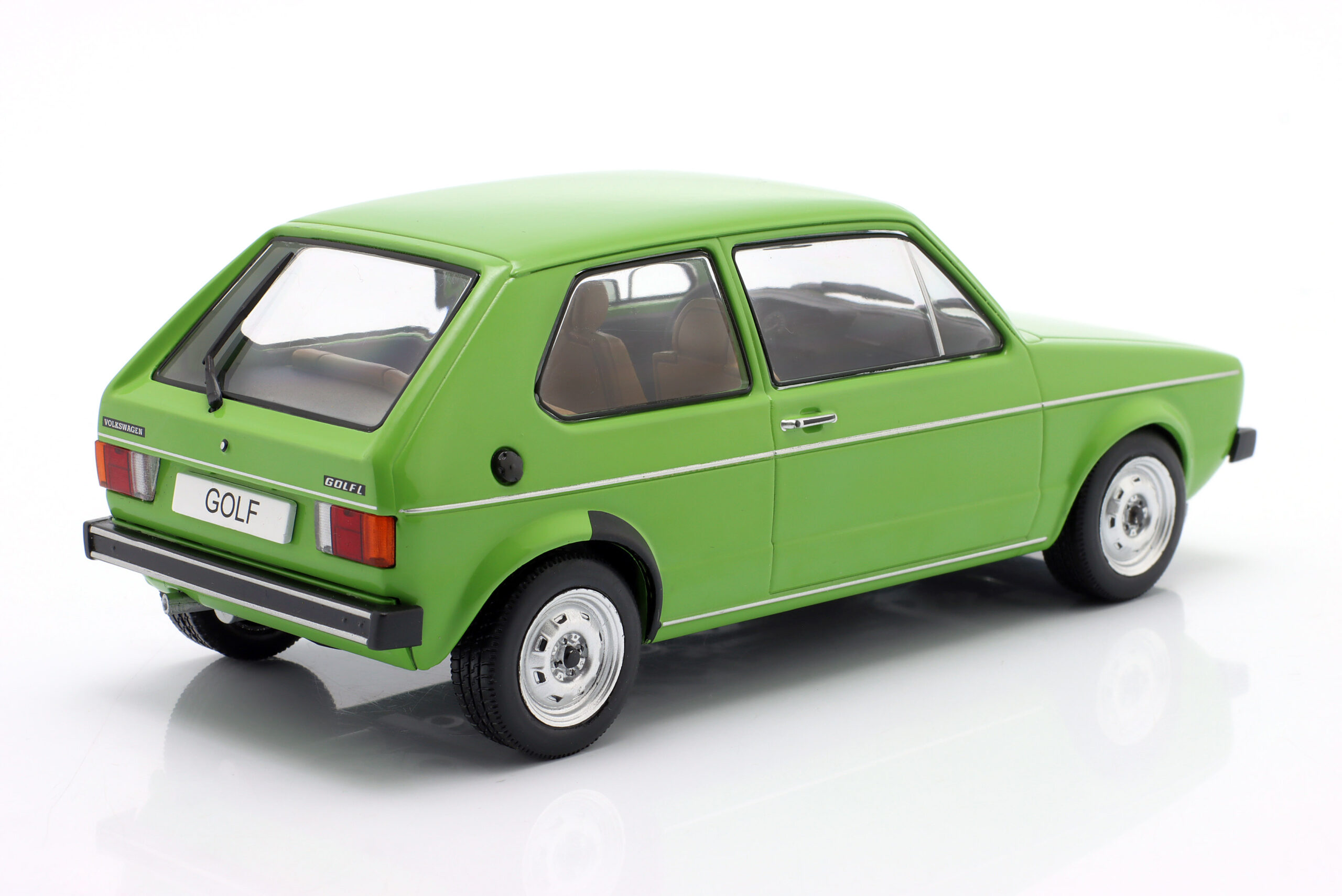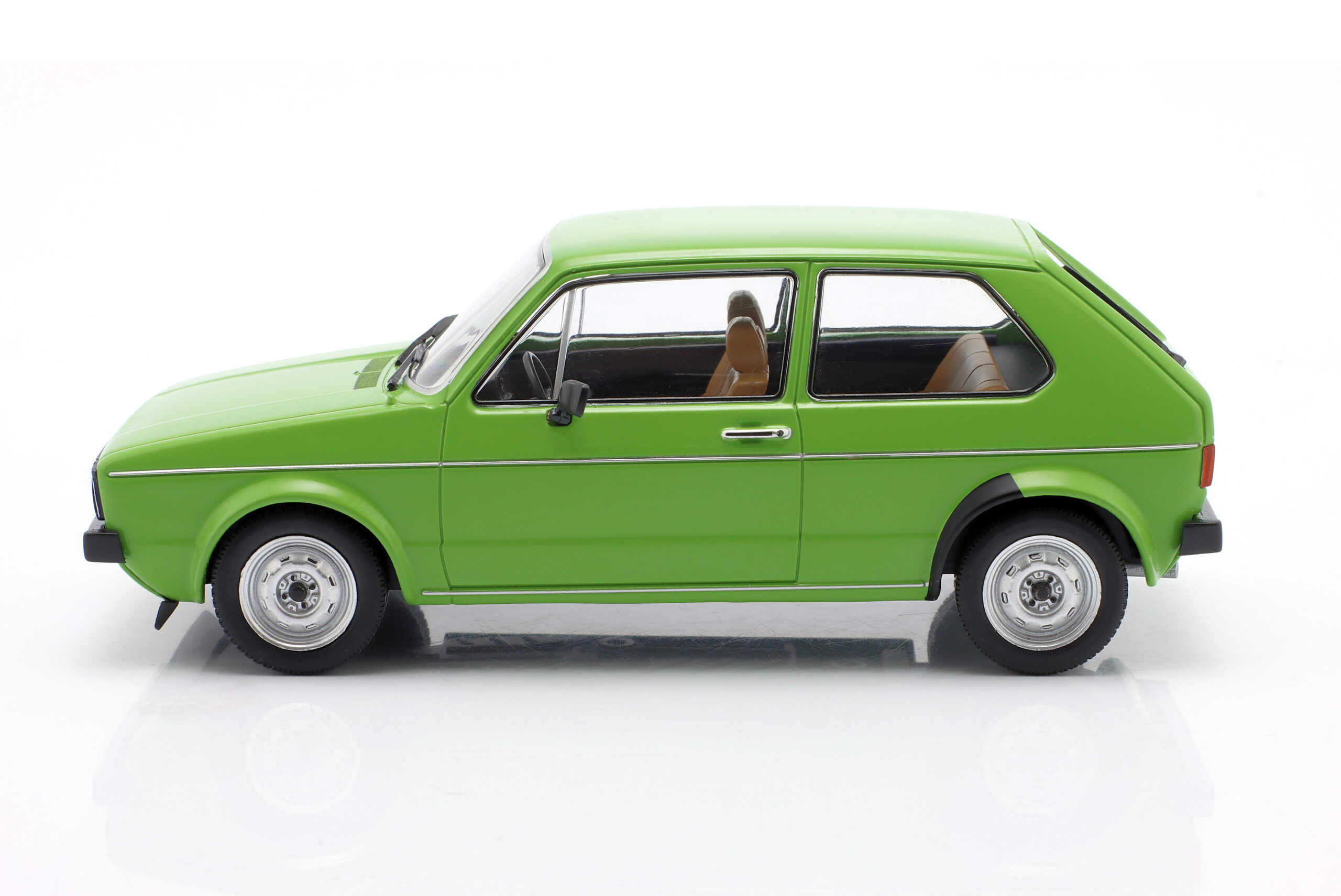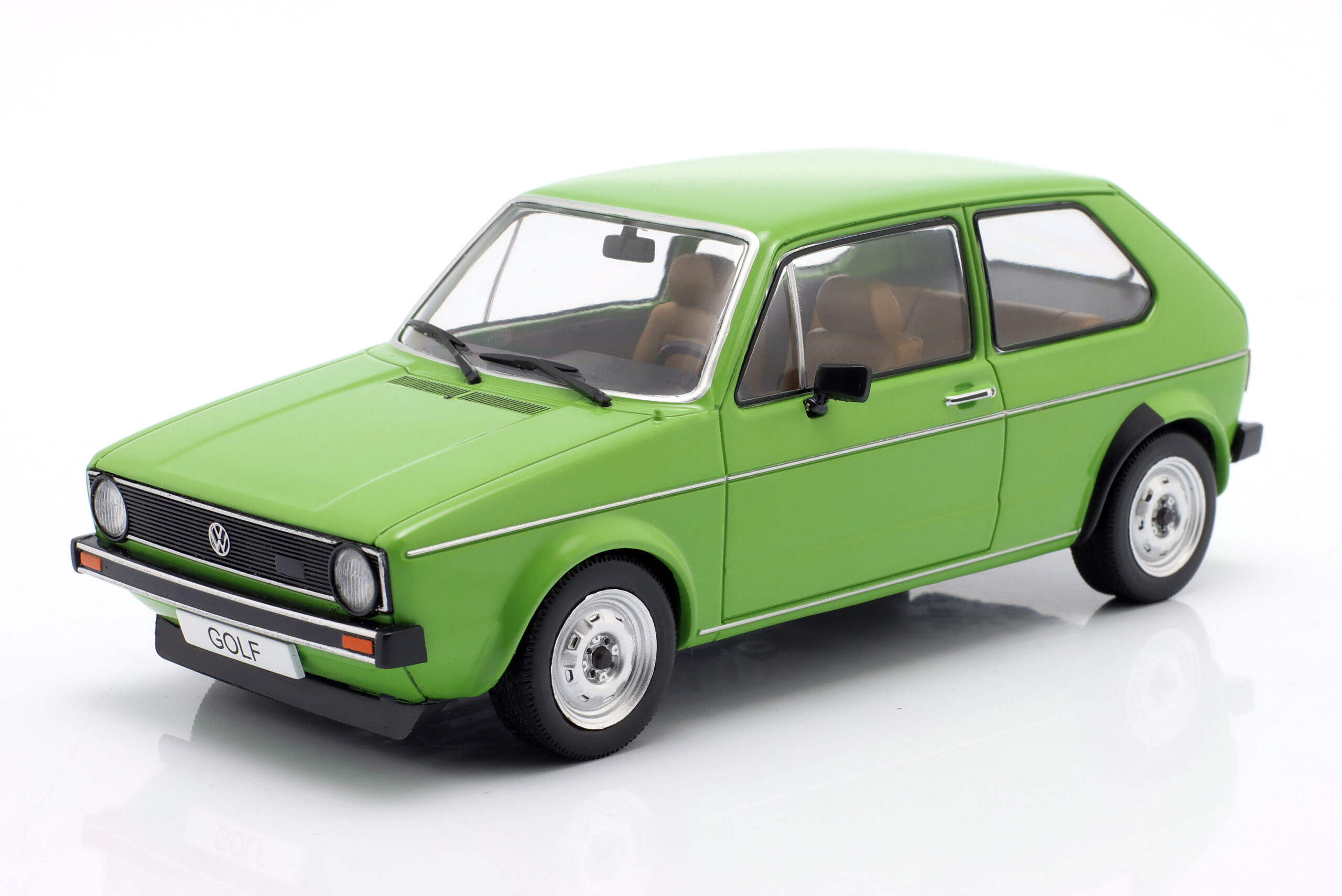 Kolekcjonerski model metalowy z elementami plastikowymi samochodu VOLKSWAGEN GOLF I z roku 1974 w kolorze Zielonym.Model nie posiada otwieranych elementów.Model na plastikowej podstawce,zapakowany w kartonowe pudełko z witrynką.